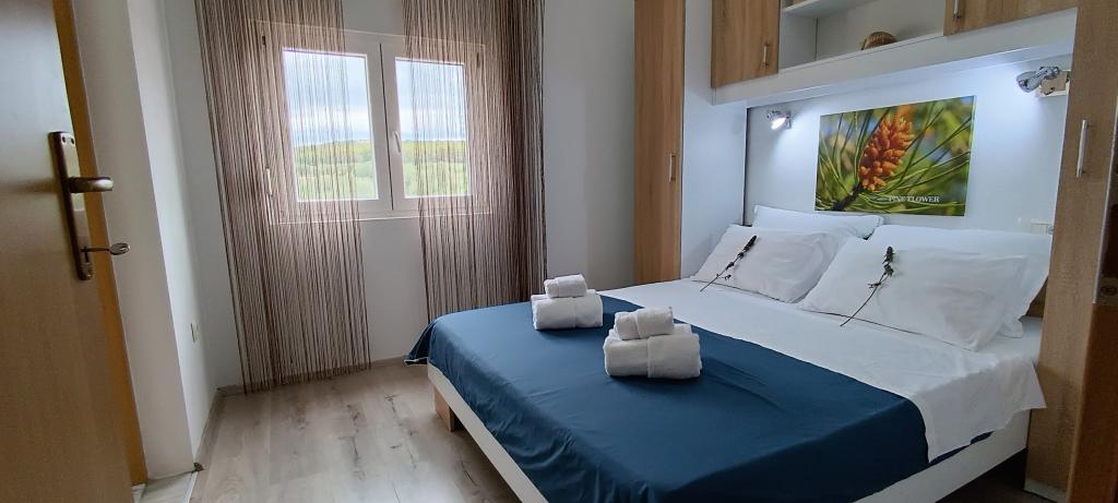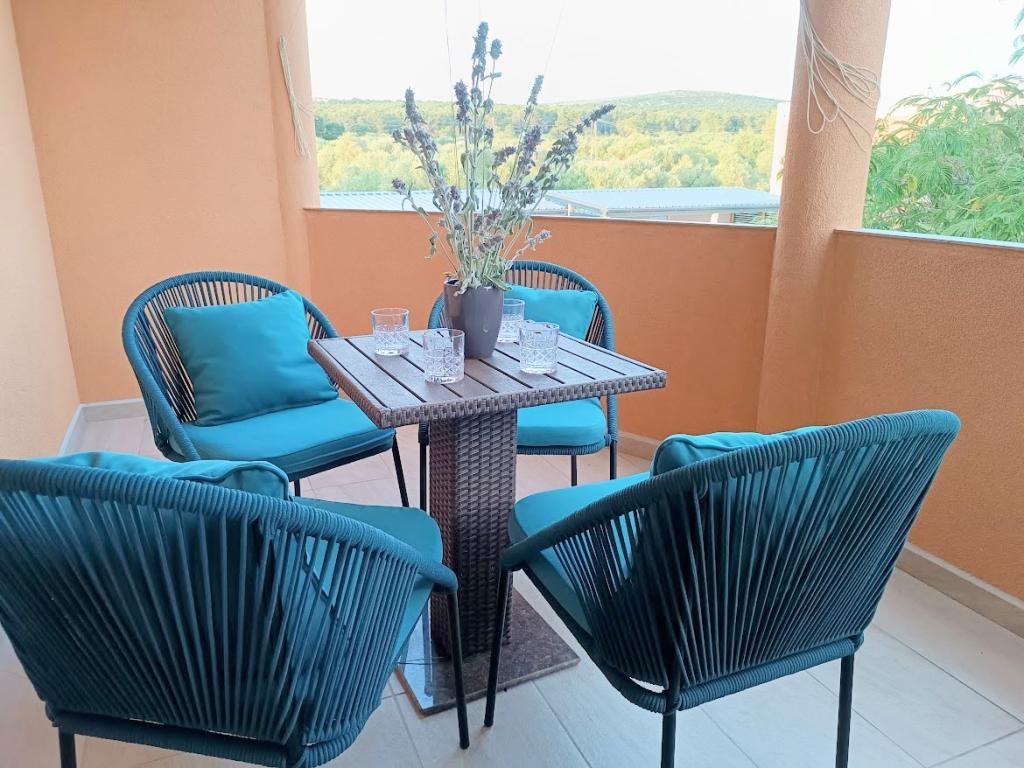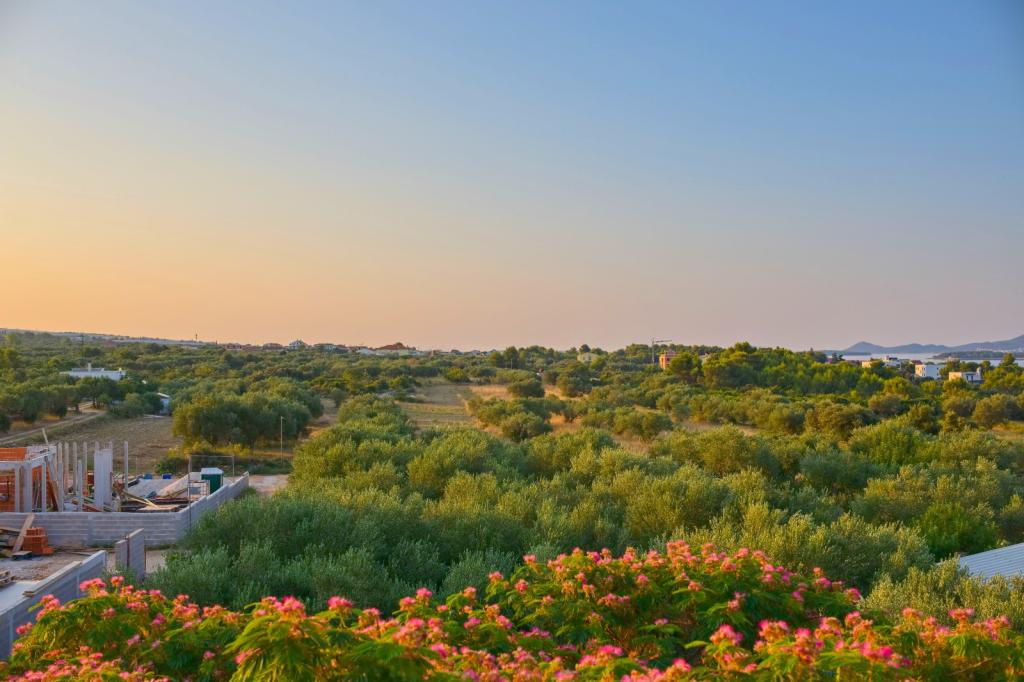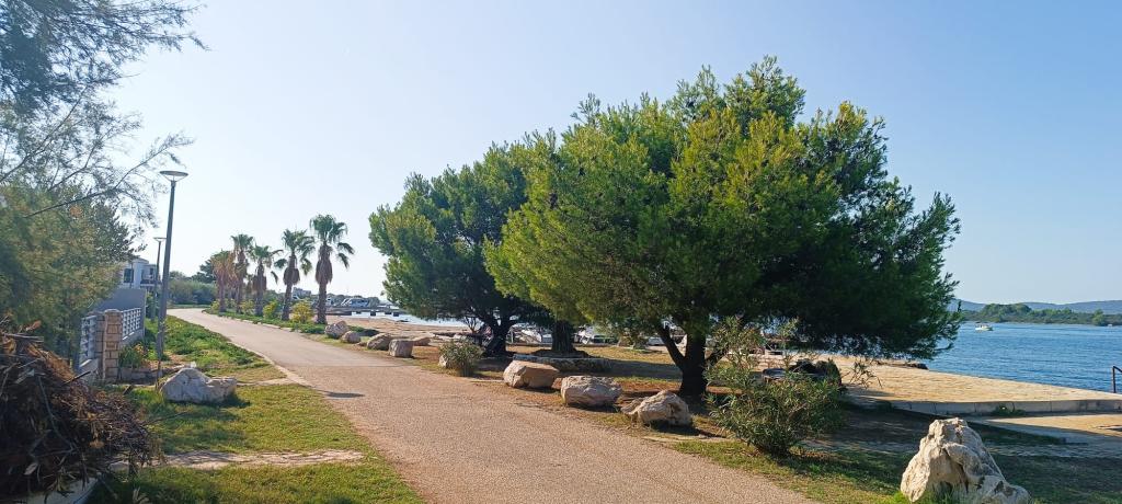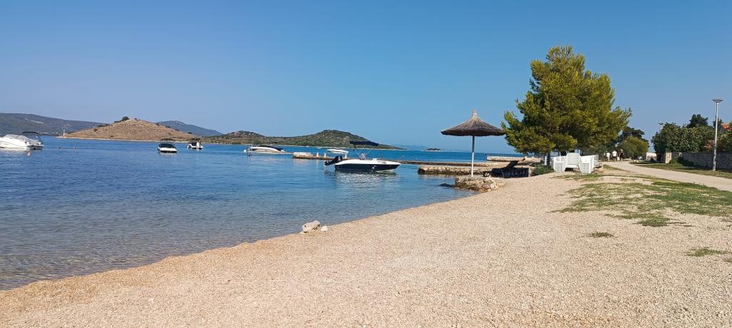Apartamentul Pine Hill este situat într-o așezare nouă și liniștită din Turanj, care până acum câțiva ani era aproape izolată. Așezarea oferă astăzi o atmosferă plăcută și sigură, cu iluminat public care contribuie și mai mult la senzația de confort. Apartamentul este situat la primul etaj al casei, cu intrare privată și o priveliște frumoasă asupra mării și a răsăritului. Este destinat pentru 2+2 persoane, cu un dormitor și un pat suplimentar în living. Bucătăria este complet utilată, iar balconul este perfect pentru cafeaua de dimineață. Plaja este la doar 300 m distanță, într-o zonă liniștită, fără trafic. Există trasee de ciclism și drumeții în apropiere. Sunt disponibile parcare gratuită și internet optic super rapid. Locație: la 6 km de Biograd, la 23 km de Zadar și aproape de celebra Insulă a Iubirii. Profitați de timpul liber în mijlocul verii și petreceți-vă vacanța într-o așezare nouă și însorită, ideală pentru relaxare!