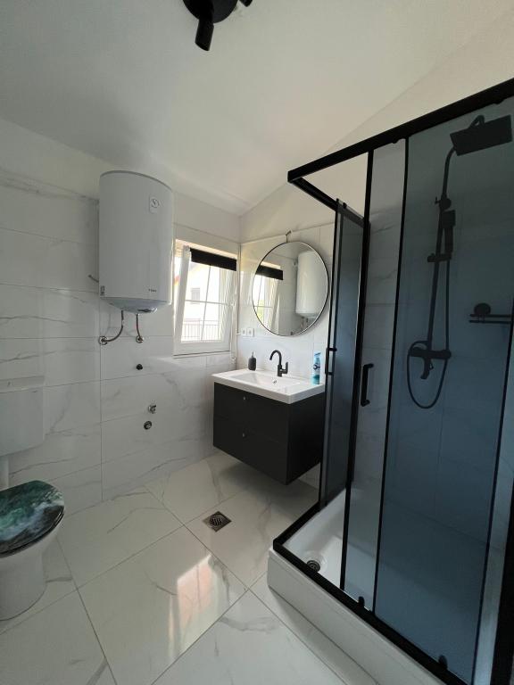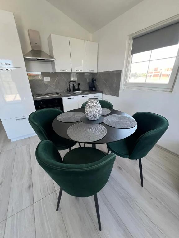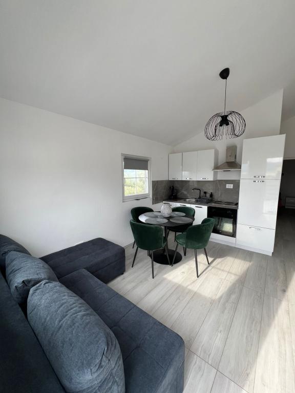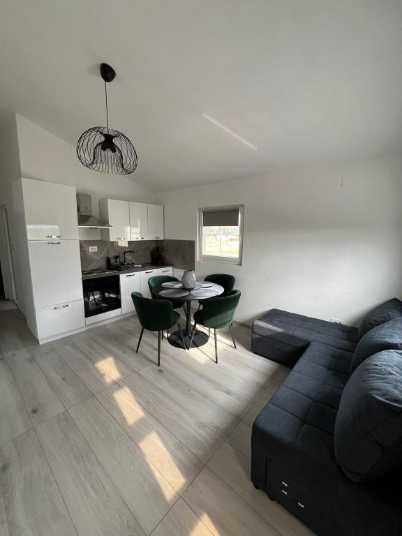 2 apartamente de închiriat într-un orășel liniștit, Turanj, lângă Biograd na moru. Apartamentele sunt 99% identice, singura diferență constă în faptul dacă este apartamentul din stânga sau din dreapta și în producătorul mașinii de spălat. Plaja este la 5,6 minute de mers pe jos, centrul în sine este la 7-10 minute de mers pe jos. Apartamentele sunt modern, mobilate contemporan și constau dintr-un dormitor, baie, bucătărie, living și terasă cu vedere la mare acoperită cu o pergolă. Aer condiționat, wi-fi, smart TV, aparat dolce gusto, bucătărie utilată, baie cu mașină de spălat, duș exterior, grătar, parcare acoperită gratuită. Piscină supraterană, loc de joacă pentru copii în fața apartamentului, disponibil în preț. Apartamentul este clasificat pentru 4 + 1 persoană. Intrarea în apartament se face la ora 14:00, ieșirea la ora 10:00. Noua clasificare este în curs de desfășurare, până acum am avut 2 stele, acum vor fi 4 stele. Fumatul este permis pe terasă, nu în apartament.