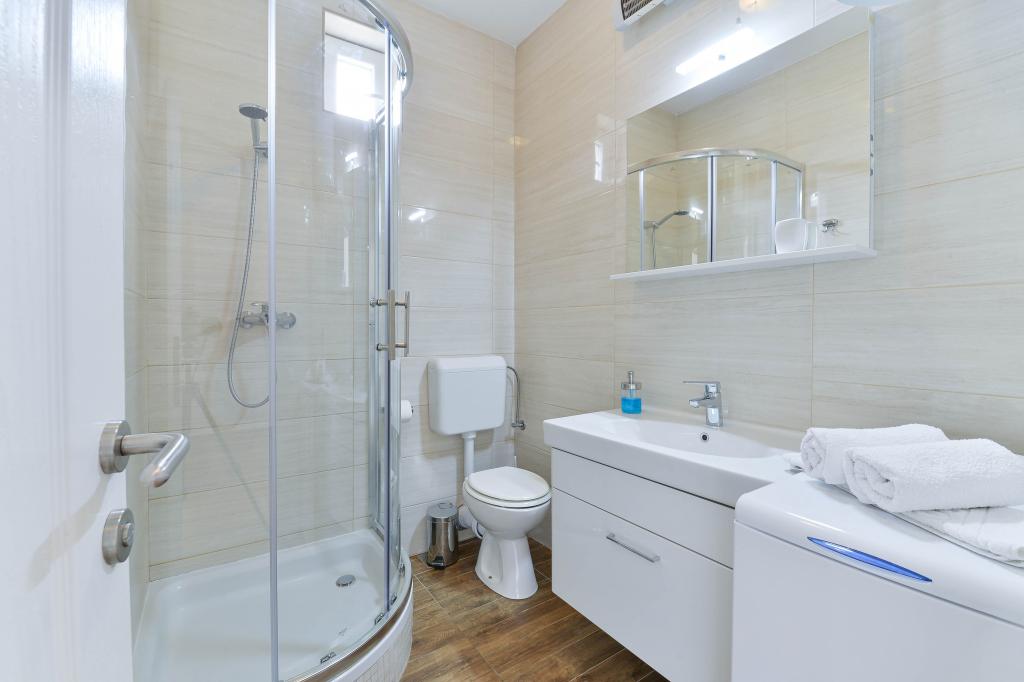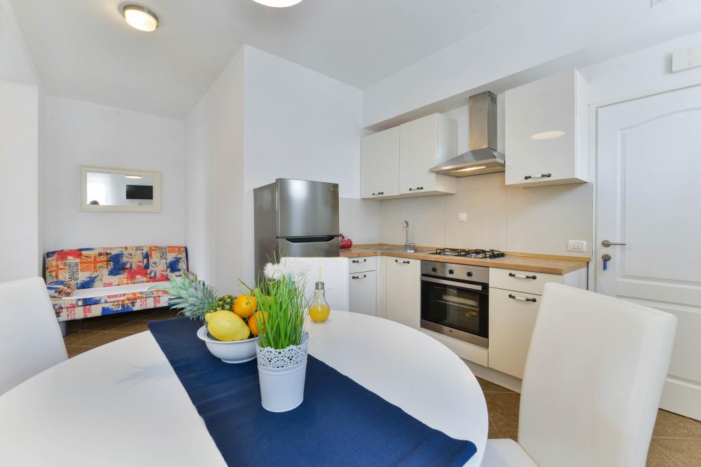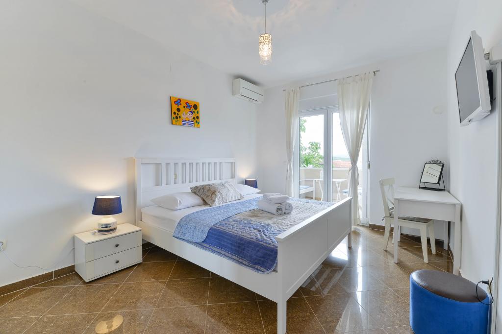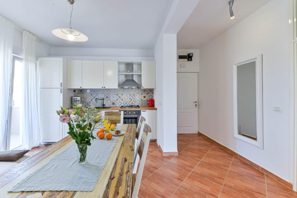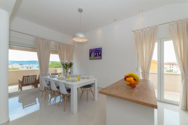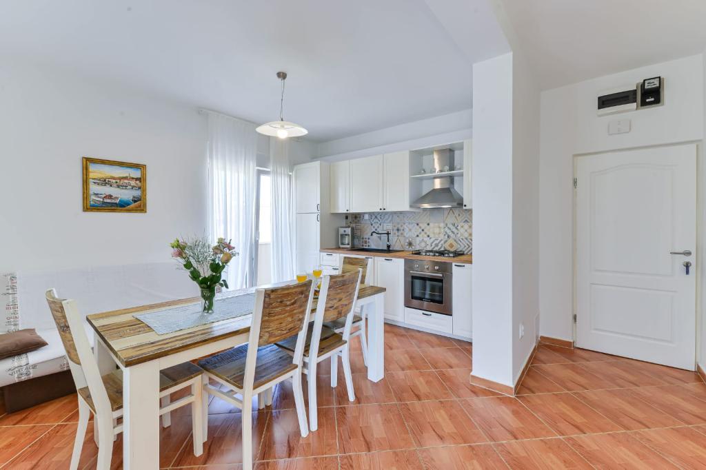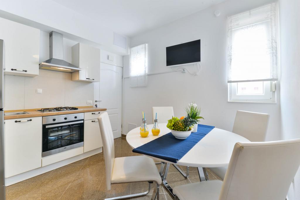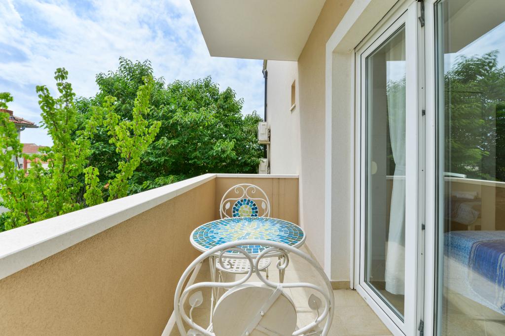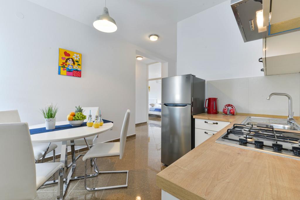 Trei apartamente noi, moderne, mobilate pentru până la 6 persoane. Apartamentele sunt compuse din două sau trei dormitoare, baie cu dus, bucatarie complet utilata, sala de mese și terase din care A1 apartament are vedere la mare. Toate apartamentele sunt dotate cu mașină de spălat, mașină de spălat vase (în două apartamente: A1, A3), TV cu canale prin satelit, Wi-fiem și au locuri de parcare chiar lângă obiectul propriu-zis. Intrade Apartamentele sunt situate la 200 m de centrul orașului.