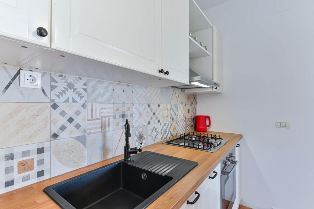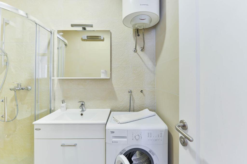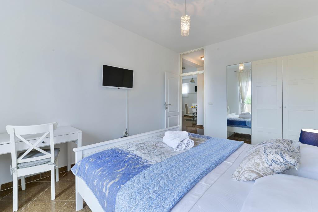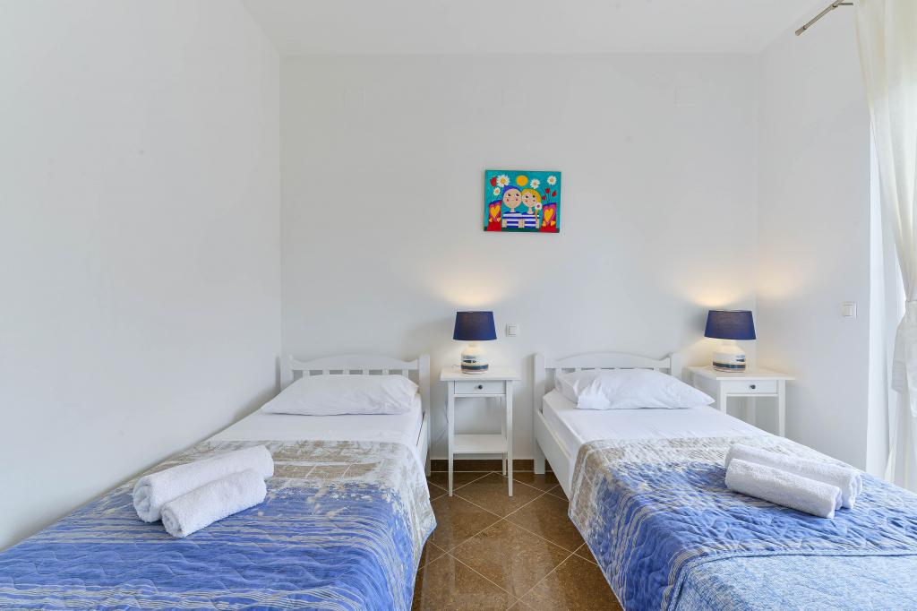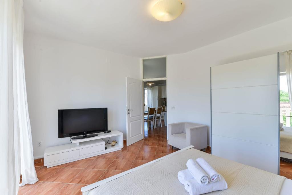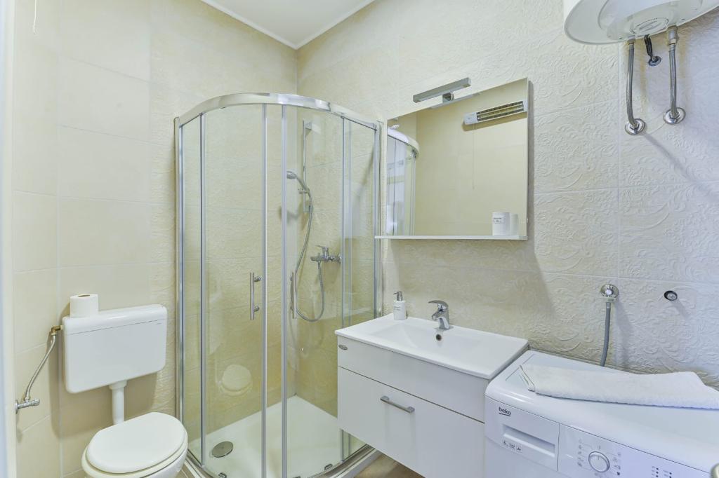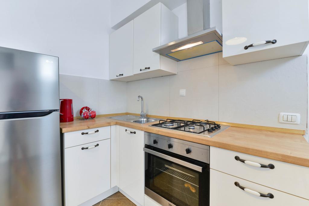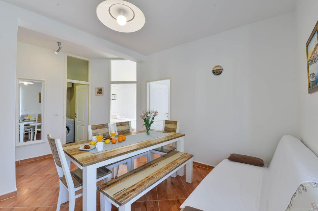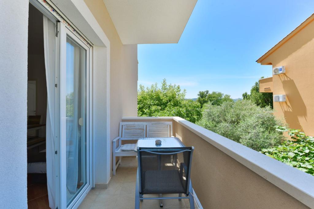 Trei apartamente noi, moderne, mobilate pentru până la 6 persoane. Apartamentele sunt compuse din două sau trei dormitoare, baie cu dus, bucatarie complet utilata, sala de mese și terase din care A1 apartament are vedere la mare. Toate apartamentele sunt dotate cu mașină de spălat, mașină de spălat vase (în două apartamente: A1, A3), TV cu canale prin satelit, Wi-fiem și au locuri de parcare chiar lângă obiectul propriu-zis. Intrade Apartamentele sunt situate la 200 m de centrul orașului.