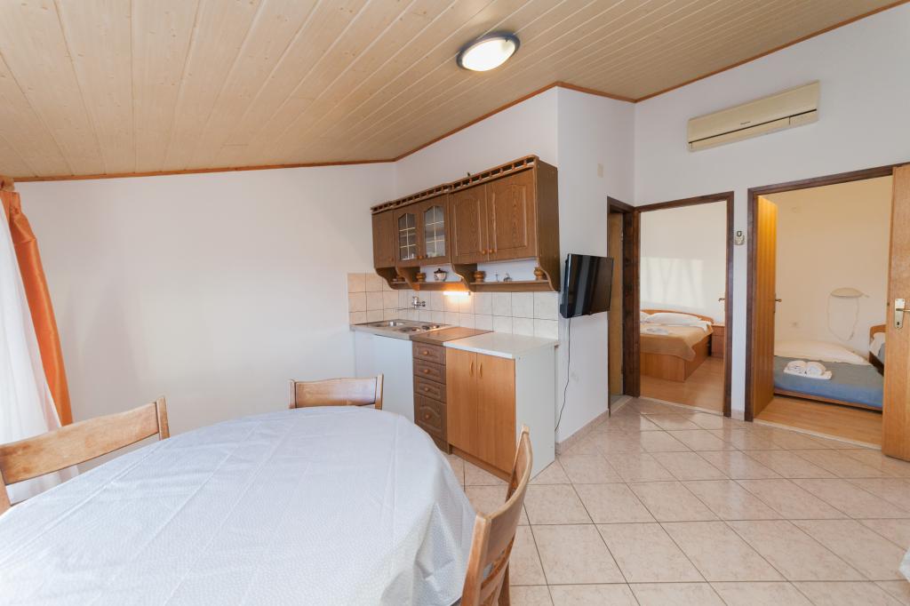 Apartamentul este foarte frumos amenajat, curat, cu aer conditionat. Echipat complet. Este utilizată o terasă mare cu vedere la mare. Locatia este linistita, dar in acelasi timp foarte aproape de mare si de o plaja frumoasa. Pe plajă există un teren de volei și un teren de baschet și fotbal din beton. Desigur, toate acestea sunt completate de proprietarii extrem de prietenoși, care sunt mereu disponibili, ospitalieri și mereu disponibili. Ne întoarcem de câțiva ani și avem o vacanță minunată.
