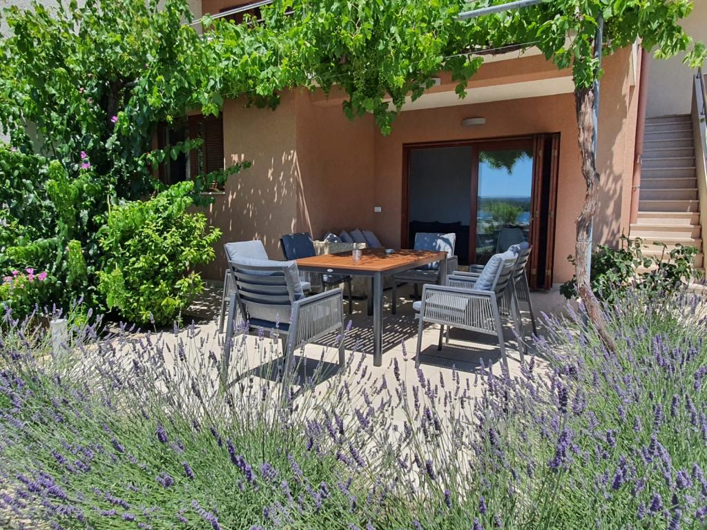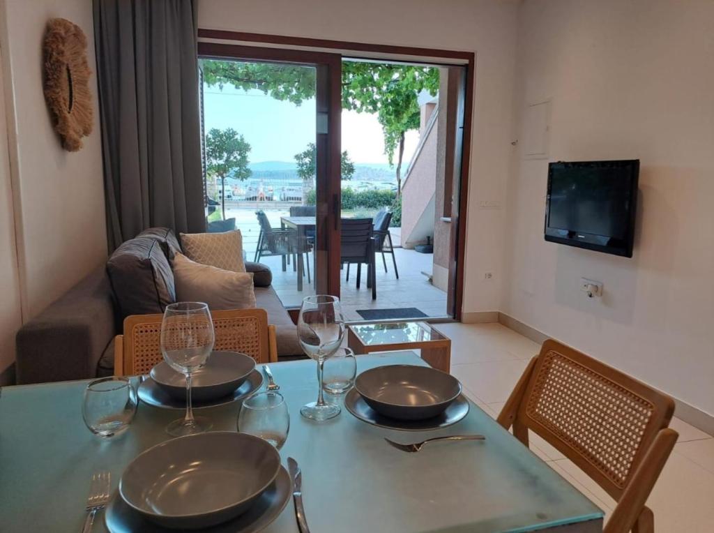 Apartamentele complet utilate și modern echipate sunt situate într-o zonă liniștită a orașului, în primul rând la mare. Apartamentele au balcoane sau terase cu vedere la mare, parcare privată și o zonă în aer liber. Plaja, magazinele, restaurantele, cafenelele, brutăria și alte facilități se află la maximum 10 minute de mers pe jos, așa că tot ce aveți nevoie pentru un sejur plăcut se află la câțiva pași. Un avantaj special al unității este acostarea privată pentru bărci situată în fața apartamentului, potrivită pentru bărci de până la 7 metri lungime. Barca este legată de o geamandură și de un debarcader, ceea ce permite o utilizare sigură și ușoară. Cazarea este potrivită în special pentru familiile care își doresc o vacanță liniștită la mare, având în același timp toate facilitățile în apropiere, fără a fi nevoie să folosească o mașină.