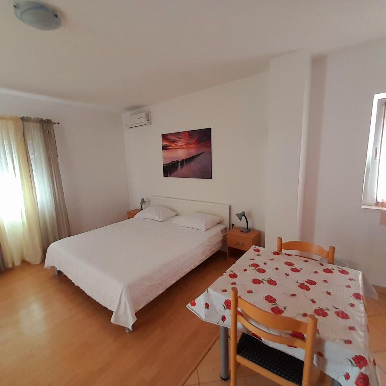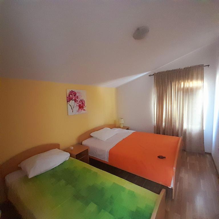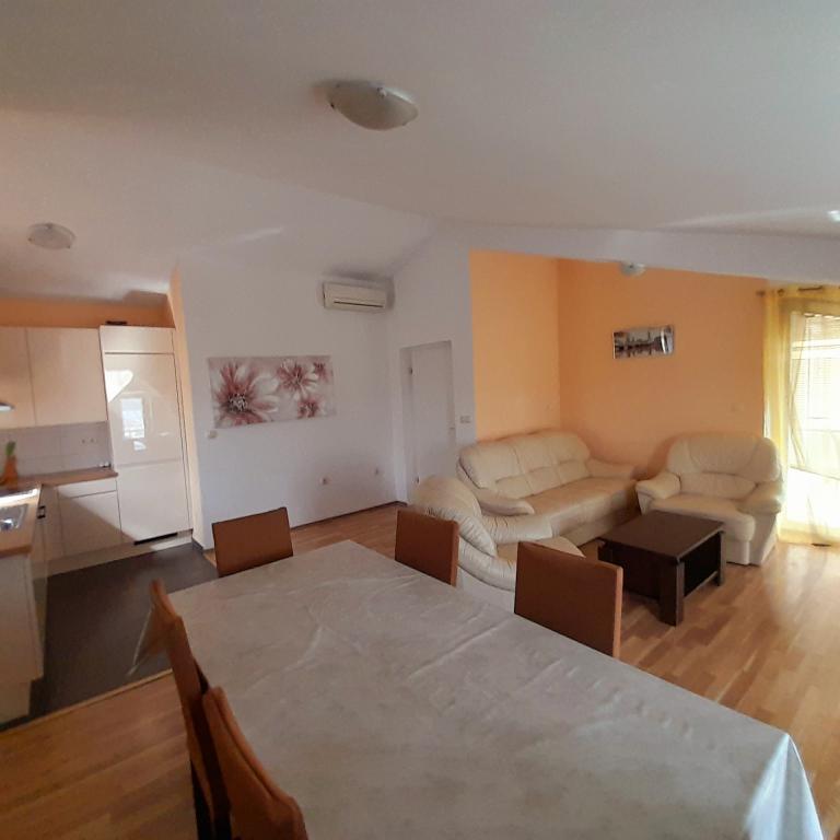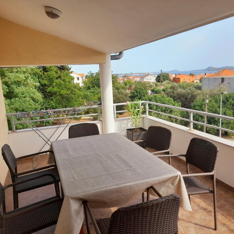 Stimati domni, Apartamentele Zlata sunt situate in Turanj, la cinci kilometri de Biograd na/m. Ne aflăm pe o stradă liniștită, astfel încât să vă puteți odihni și să dormiți bine. Imobilul este format din trei apartamente si o gazda la parter care administreaza facilitatile. Turanj vă oferă tot ce aveți nevoie pentru o vacanță liniștită. Plajele nu sunt supraaglomerate, ceea ce cu siguranță vă face vacanța mai plăcută. Seara este o plimbare frumoasa la Sf. Filip Iacob de care cu siguranta va veti bucura. Vino să te distrezi bine.