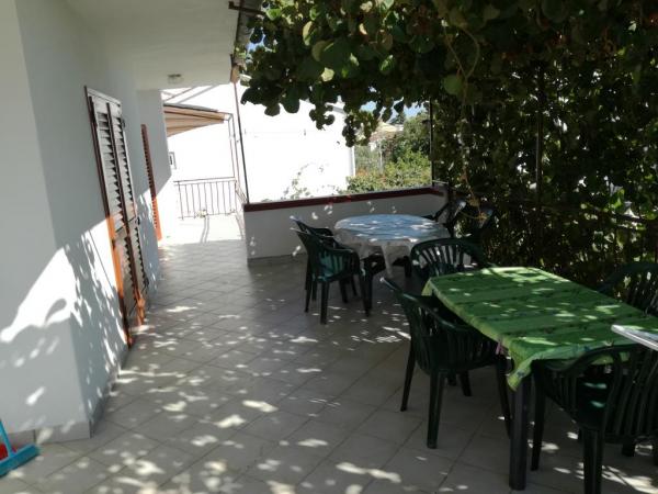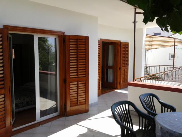 Apartamentele sunt situate în al doilea rând de la mare la capătul străzii, departe de zgomotul și mulțimile. Plaja este cu pietriș și este situat la 70 m de casa. In fata plaja este geamandurile de a acosta o barcă. În curtea din fața clădirii locurilor de parcare. În grădină se află, de asemenea, un gratar, leagăne și un tobogan pentru djecu.Apartmani sunt situate la primul etaj și în fața lor este o terasă mare, care este acoperit cu o nuanta naturala (kiwi). Ambele apartamente constau din: dormitoare (2 1), WC, hol, bucatarie, sala de cazul în care există o canapea pentru 2 persoane vii. Apartamentele au aer condiționat și TV prin satelit.