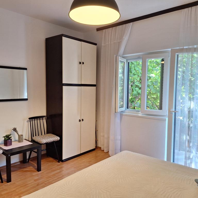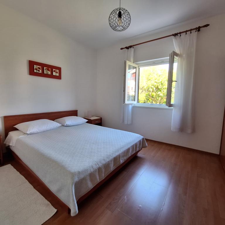 Vă oferim închirierea unei case întregi de 100 m² cu o curte privată de 600 m² - un loc ideal pentru o vacanță relaxantă și liniștită! Avantaje: intimitate completă, la doar 2 minute de mers pe jos de plajă, curte spațioasă plină de umbră și verdeață, vă puteți bucura de terasă sau în curte cu grătar, parcare securizată pentru mașina dumneavoastră. Aici veți găsi colțul perfect pentru relaxare și bucuria naturii, departe de zgomotul orașului. Casa este formată din 2 dormitoare, un living mare, o bucătărie cu zonă de luat masa și o baie. Distanțe: Zadar - 23 km Biograd - 4 km Šibenik - 50 km Aproape de Parcurile Naționale: Krka, Kornati, Paklenica.