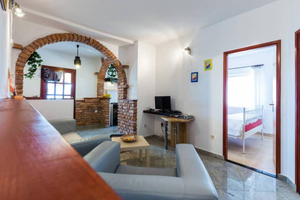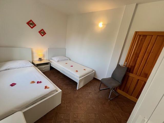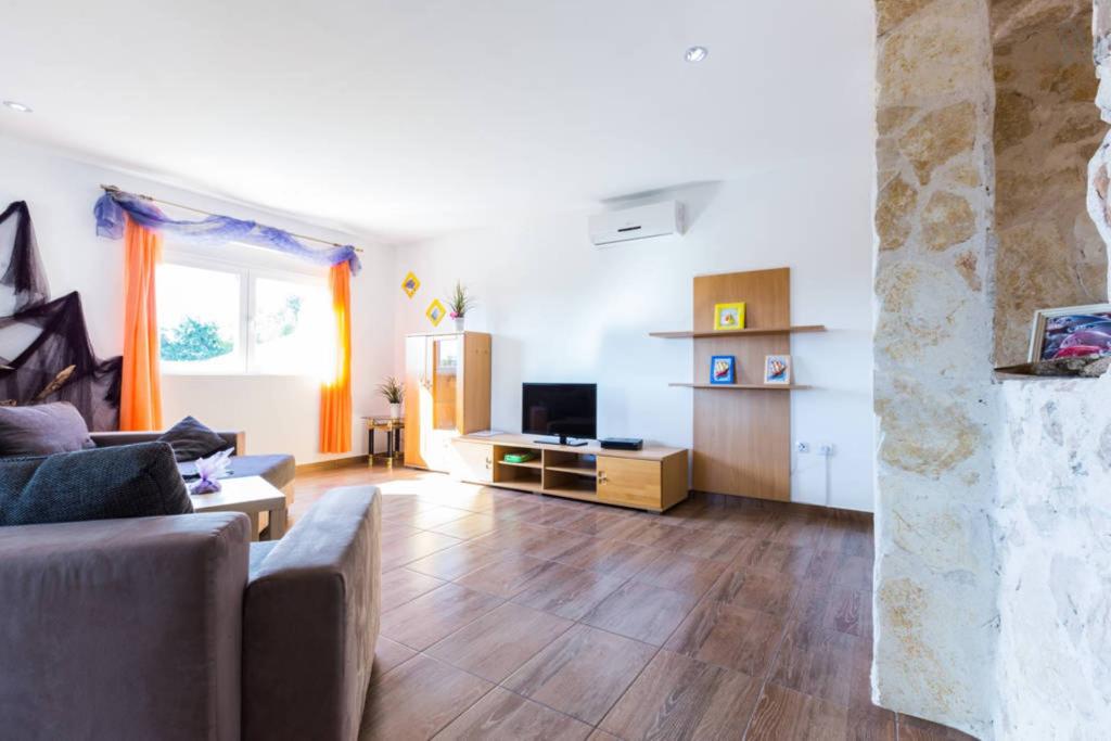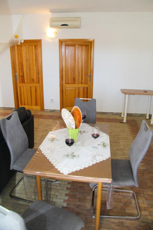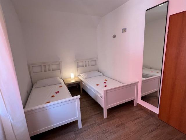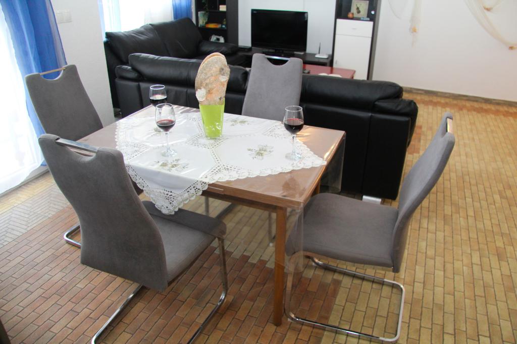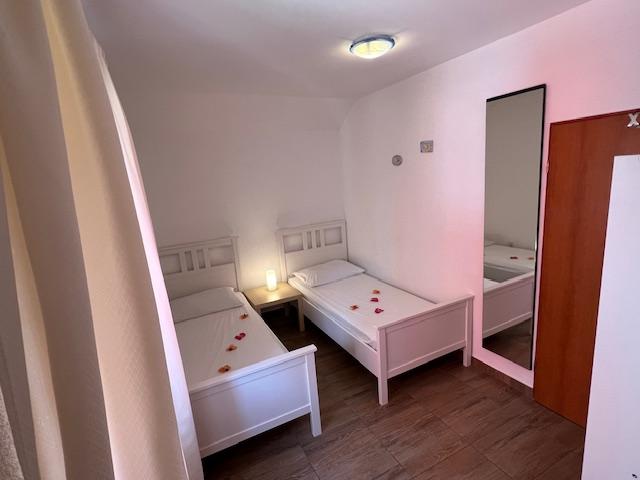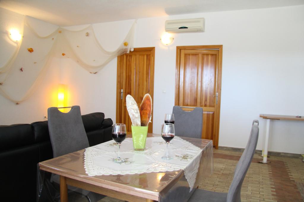 Apartamentele noastre au aer condiționat, TV prin satelit, Wi-Fi, parcare pe proprietatea proprie, mașină de spălat. Aceasta este inclusă în preț. Avem o zonă de grătar pe care oaspeții noștri o pot folosi gratuit, inclusă în preț. Apartamentele noastre sunt dotate cu tot ce ai nevoie pentru vacanta ta. Este situat pe un teren de 3500 m2. Apartament de 150 m², 2 dormitoare, bucatarie, sufragerie, baie cu dus, living si terasa. Distanta pana la mare direct pe mare si 100 m de mare. Inchiriez un apartament. Indira, Bepo, Grgo, casa mobilă Luka și casa de vacanță Indira.
