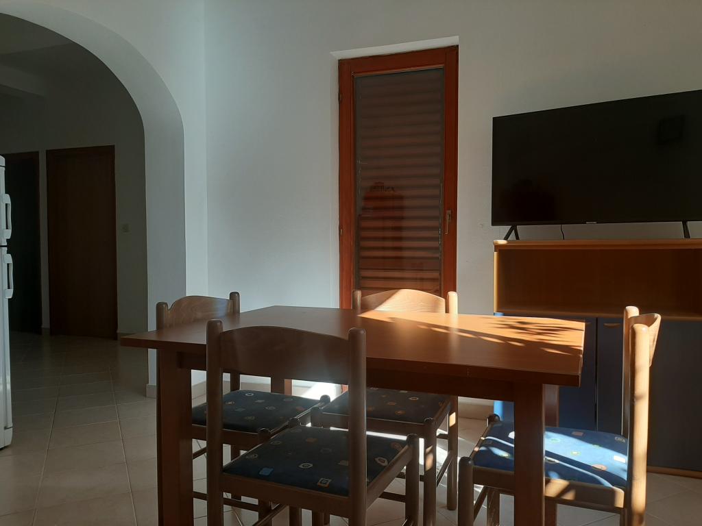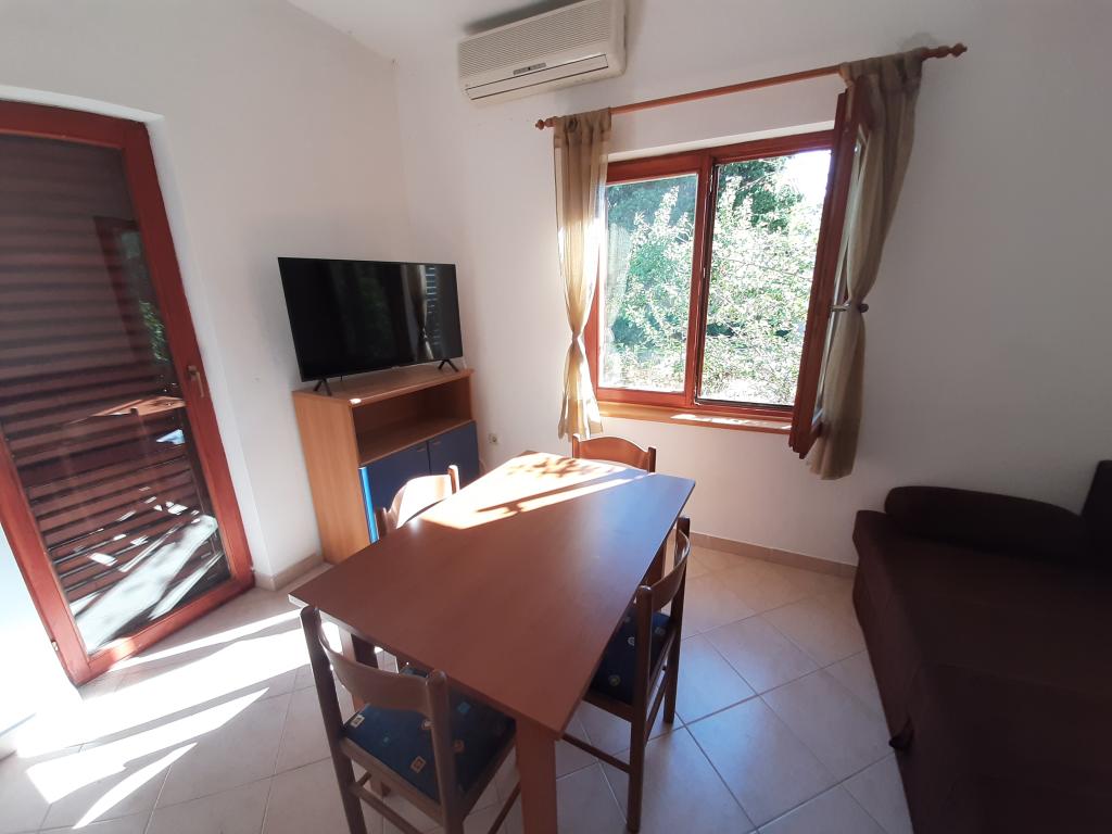 Apartament 4 1 la parterul unei case cu o curte, la 50m de mare. Se compune din 2 dormitoare cu un pat dublu și un living cu o canapea extensibilă. Include aer condiționat, TV, Wi-Fi.