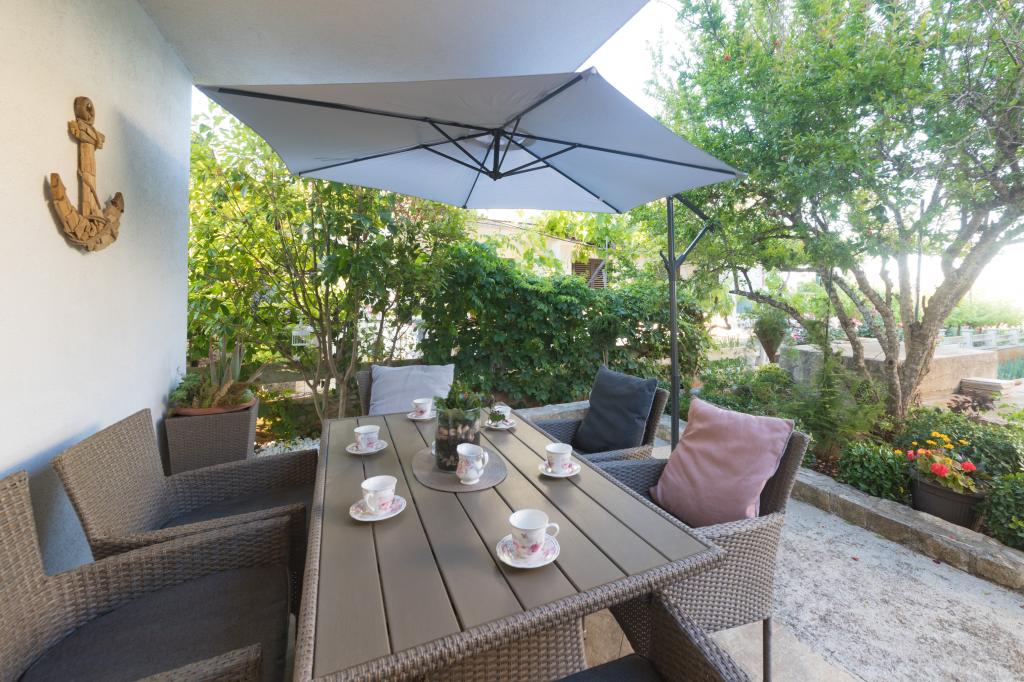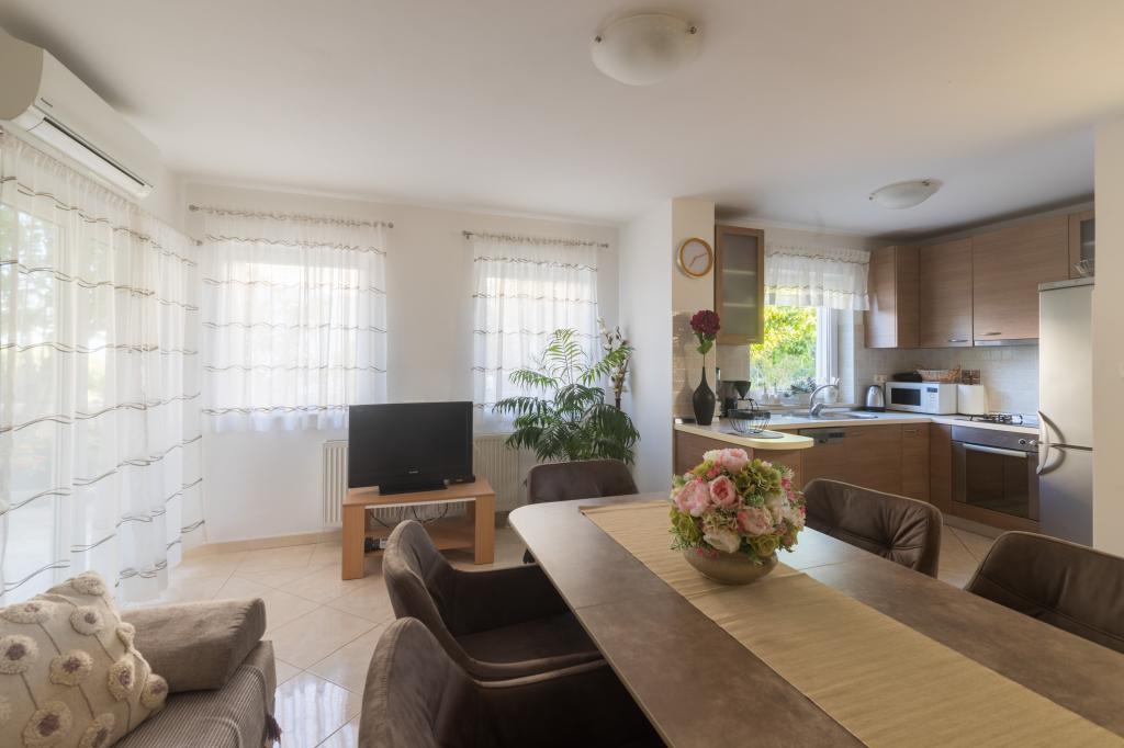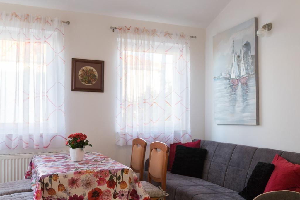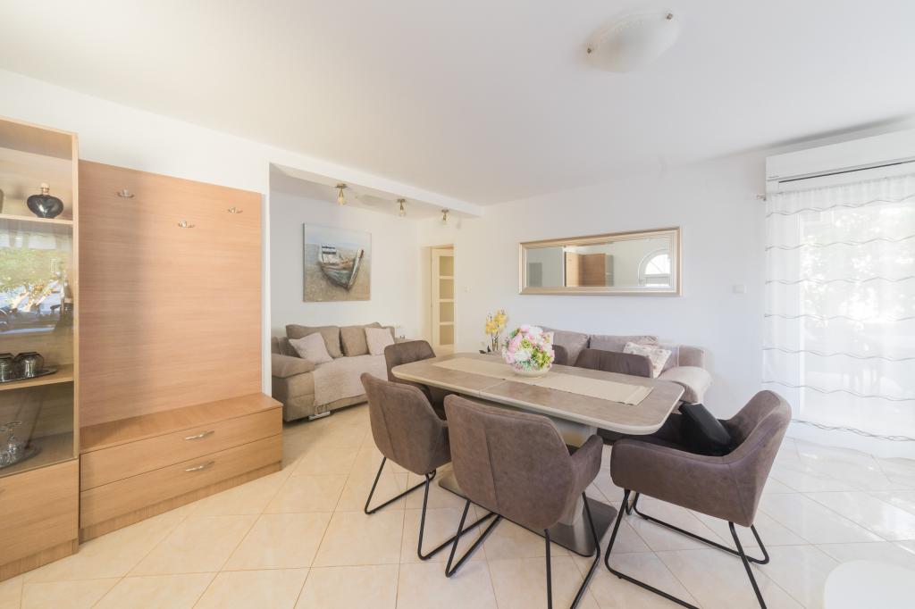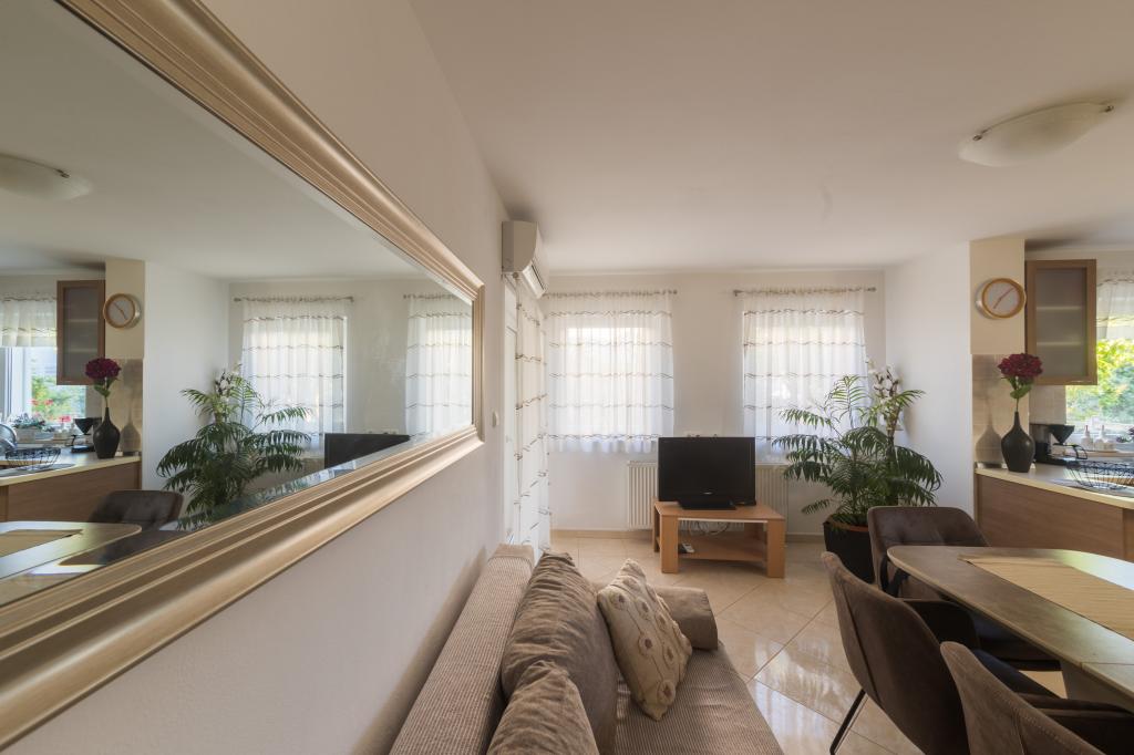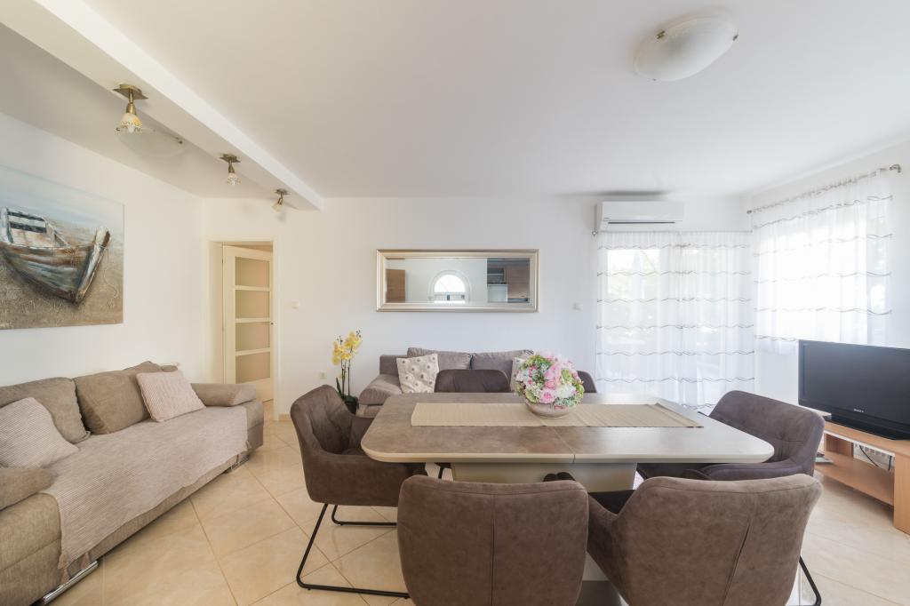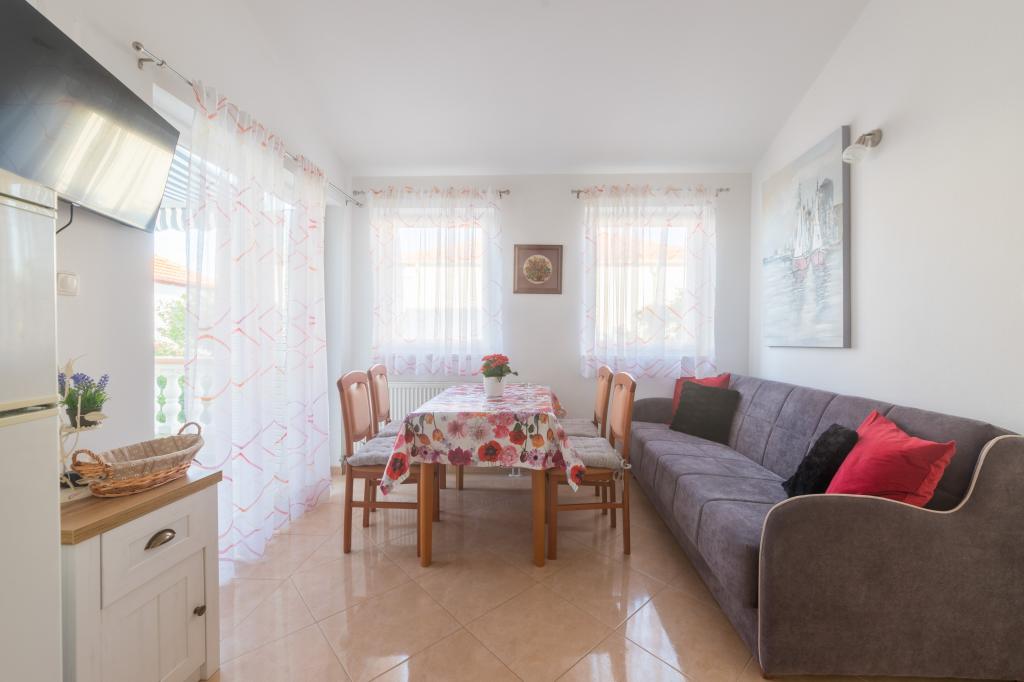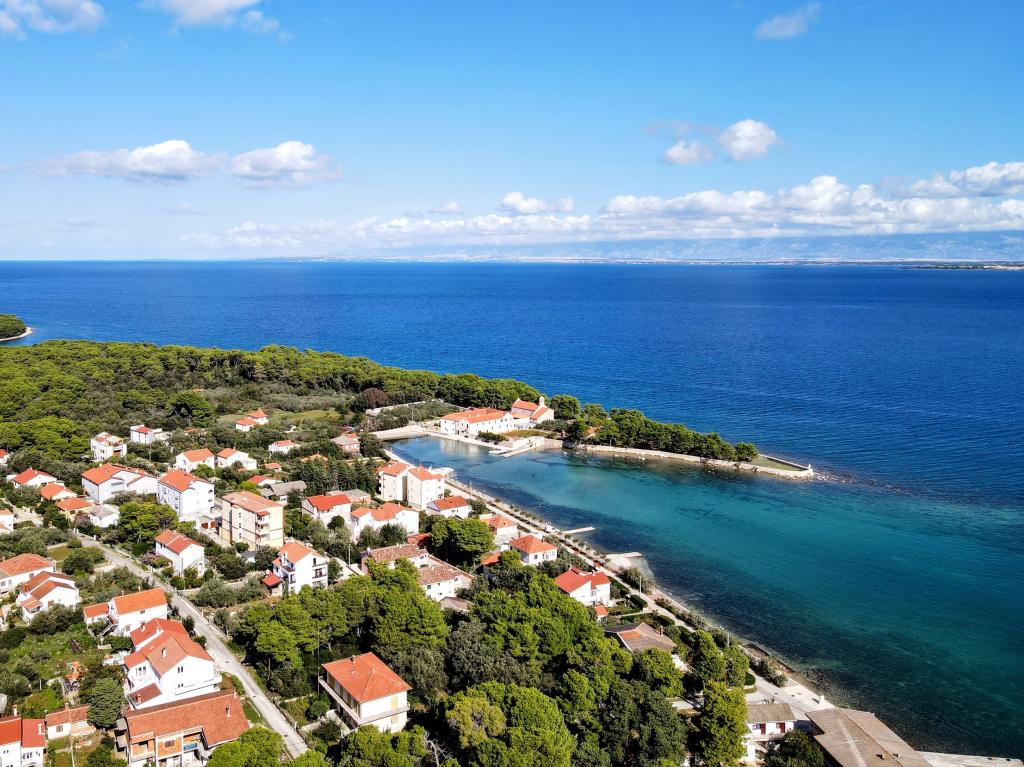 Noua Casa este situata in centrul insulei Ugljan, la malul mării, decorate și mobilate superb. Toate apartamentele au aer condiționat, Wi-Fi gratuit și parcare privată. Apartamentul de la parter are acces scaun cu rotile. Din aproape toate apartamentele au vederi frumoase la mare, orașul Zadar și muntele Velebit. Plajă cu nisip Mostir este doar o sută de metri și este ideal pentru copii și înotători incepatori, și există stancoasa si plajele din beton sunt dotate cu dușuri și vestiare. Imediat în apropiere sunt restaurante, baruri, magazine, piata, oficiu postal, medic, etc Scufundări, biciclete chirie sau scutere sunt de 2 minute de mers pe jos. Vapor Pier în Prek este de 15 min. cu mașina. Ferries executați pe tot parcursul zilei, în fiecare oră, 20 min.do Zadar, centrul istoric și cultural. Locul pentru o vacanță liniștită sau activă, în conformitate cu preferințele clienților, cu gazde prietenoase garantează o vacanță bine-meritata