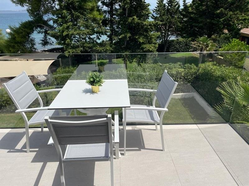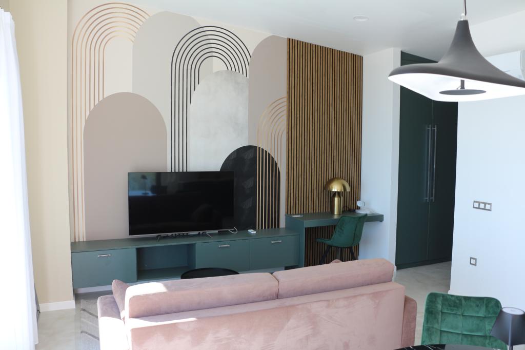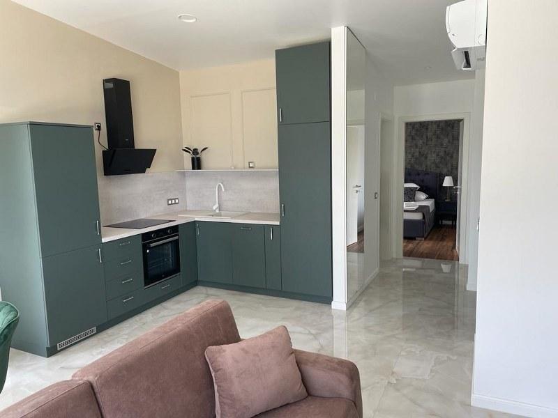 Apartament complet nou și modern, primul rând la mare, 50m2, cu un balcon spațios pentru plajă și luat masa. Loc de parcare securizat in curtea blocului cu gard mobil electric. Apartamentele sunt proiectate cu internet TV 55" in living si 43" in dormitor, servicii de streaming (cum ar fi Netflix). Bucătăriile dotate cu frigider, congelator, plită cu inducție și cuptor și mașină de spălat vase. Inclus, uscător de păr, prosoape, lenjerie de pat, vase, vase, hârtie igienică. Aproape de centru, cu 3 magazine alimentare și 4 restaurante în centrul orașului. În apropiere sunt și două pizzerii. În apropiere sunt două baruri pe plajă, „Ritam” și „Bichikleta”. În sezon, barul „Ritam” are un program interesant de divertisment cu interpreți muzicali.