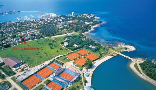 Umag, apartamente atractive de 2-6 persoane 200 m de plaja de la Punta locaţie de top. Situat la numai 220 m centru de tenis ATP Stella Maris Croata deschis, parcare gratuită privată (cum este casa de lângă plajă, este o zonă de parcare). Două parc privat, cu pini şi verdeaţă de aproximativ 1000 m2, cu utilizarea de un gratar. În apropiere există restaurante excelente, centru de wellness, cazinou, şi multe alte servicii turistice.