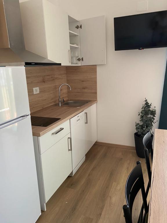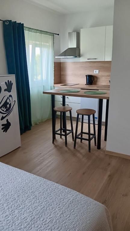 Apartamentele noastre studio oferă confort complet pentru 2 persoane și constau dintr-o zonă de noapte, o zonă de gătit și un WC. Sunt dotate cu TV prin satelit, aer condiționat, ustensile de bucătărie și lenjerie de pat. Nu avem opțiunea de a adăuga un club pentru copii. Parcarea este asigurata in curte.