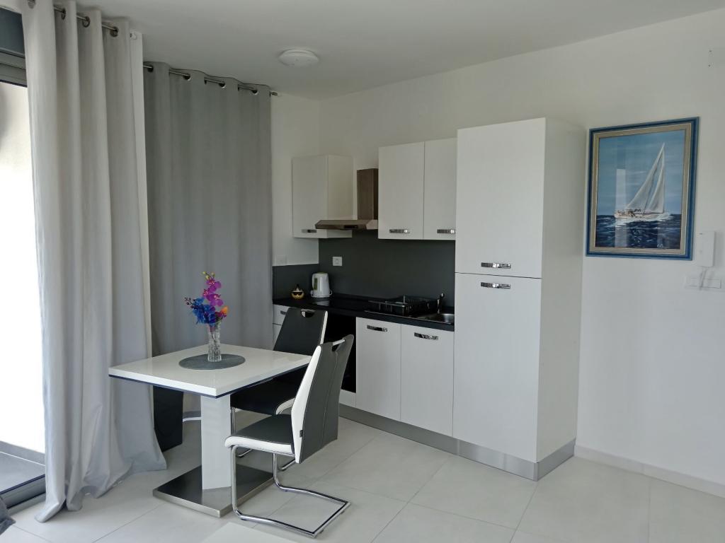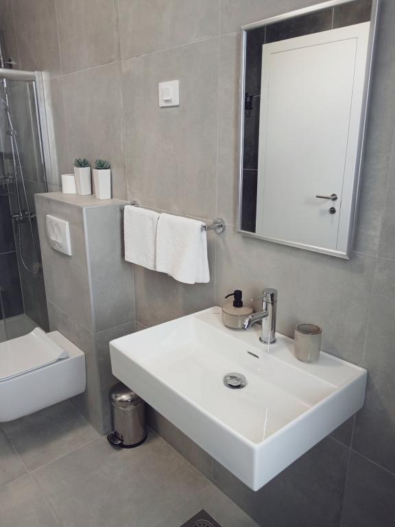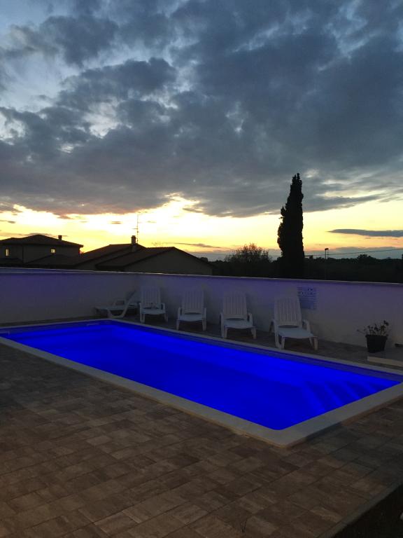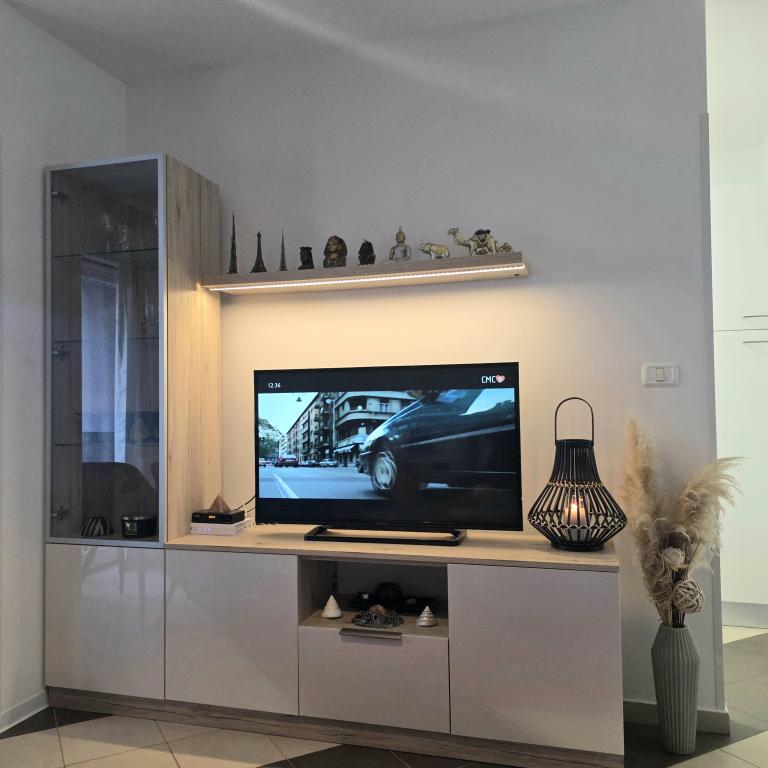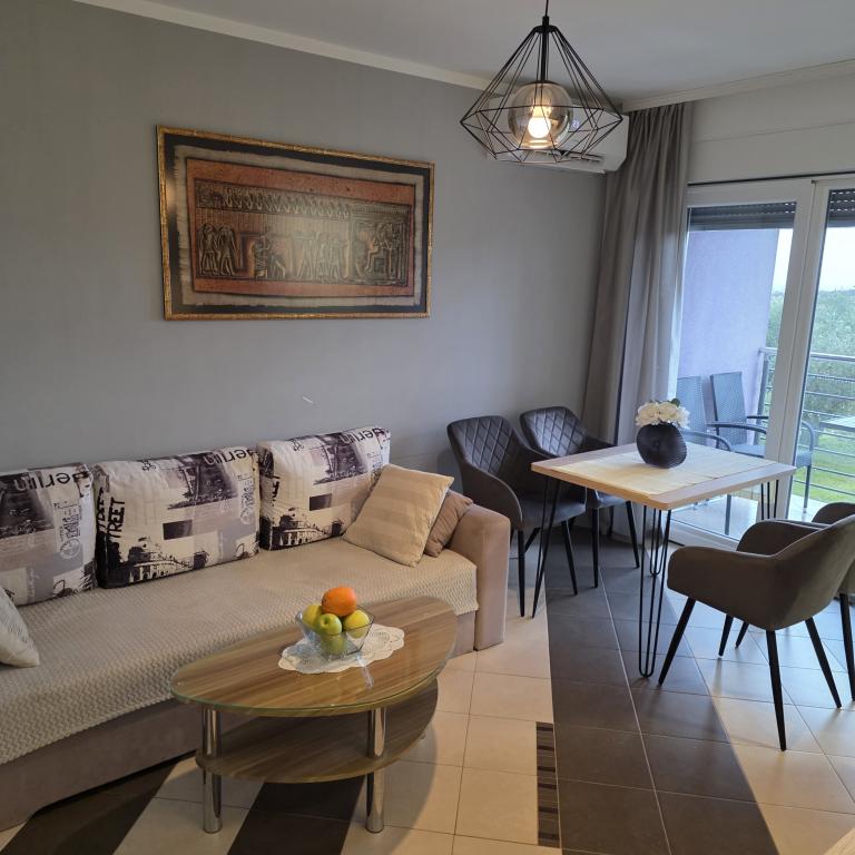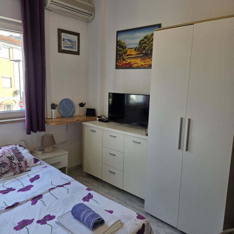 Apartamentele Mirella 4 sunt situate în rezidența recent construită Lavandă cu vedere la mare și o priveliște frumoasă a apusului. Spre mare și frumoasa plajă cu nisip este de doar 150m. Magazine, brutărie și restaurante la 200m. Spre centrul Umagului 3km. De-a lungul mării există o promenadă până la centrul orașului Umag, iar posibilitatea de a fi transportată cu trenul turistic. Apartamentele sunt dotate cu aer condiționat și complet echipate. Baie cu duș de masaj, mașină de spălat, uscător de păr, fier de călcat. Bucătărie cu mașină de spălat vase, cuptor cu microunde, filtru de cafea, ceainic frigider mare cu congelator și orice altceva pentru a face oaspeții să se simtă ca acasă. Sunt disponibile internet gratuit și parcare securizată. Prețul include utilizarea piscinei, șezlonguri, duș, două locuri, masă și scaune în partea acoperită a terasei de lângă piscină. Vă mulțumim că ați ales Apartamente Mirella, sper că, în schimb, vă vom satisface dorințele în timpul șederii dvs. în apartamentele noastre. Scopul nostru este satisfacția și recomandarea dvs. Stimați oaspeți, bun venit la Apartamente Mirella!