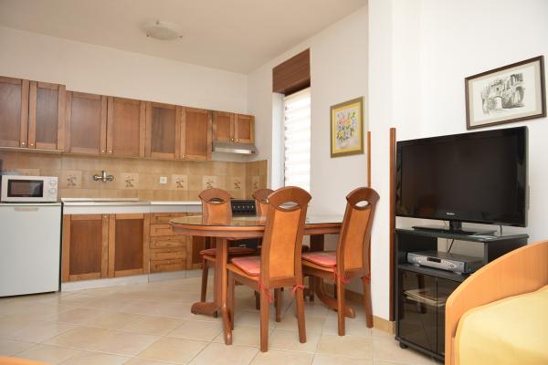 Apartamentele sunt situate la parter și la primul etaj al unei case familiale în Umag, Punta, o zonă liniștită a orașului în apropiere de stațiunea turistică STELA MARIS unde celebrul turneu de tenis Umag Croația Open, plaje frumoase și terenuri de sport, restaurante de calitate. . Apartamentele sunt confortabile si utilate modern. Apartamentele au 1 dormitor cu pat matrimonial, lenjerie de pat (schimbata saptamanala), baie cu dus, toaleta, masina de spalat rufe, uscator de par, prosoape de baie 2 de persoana (schimbate saptamanal). Living cu bucatarie utilata cu plita electrica, cuptor, cuptor cu microunde, filtru de cafea, ceainic electric, masa cu 4 scaune. Livingul are încă 2 paturi, TV prin satelit, Wi-Fi gratuit, aer condiționat. Oaspeții sunt rugați să folosească echipamentul cu atenție. Fumatul este interzis în apartament, dar permis pe terasă. Dragi oaspeți, vă rugăm să scrieți impresiile dvs. pozitive în cartea de oaspeți de pe anunțul nostru. Mulțumesc.