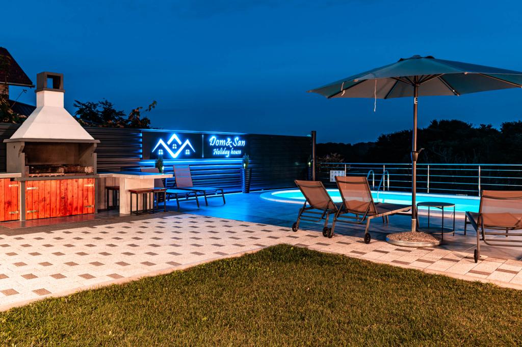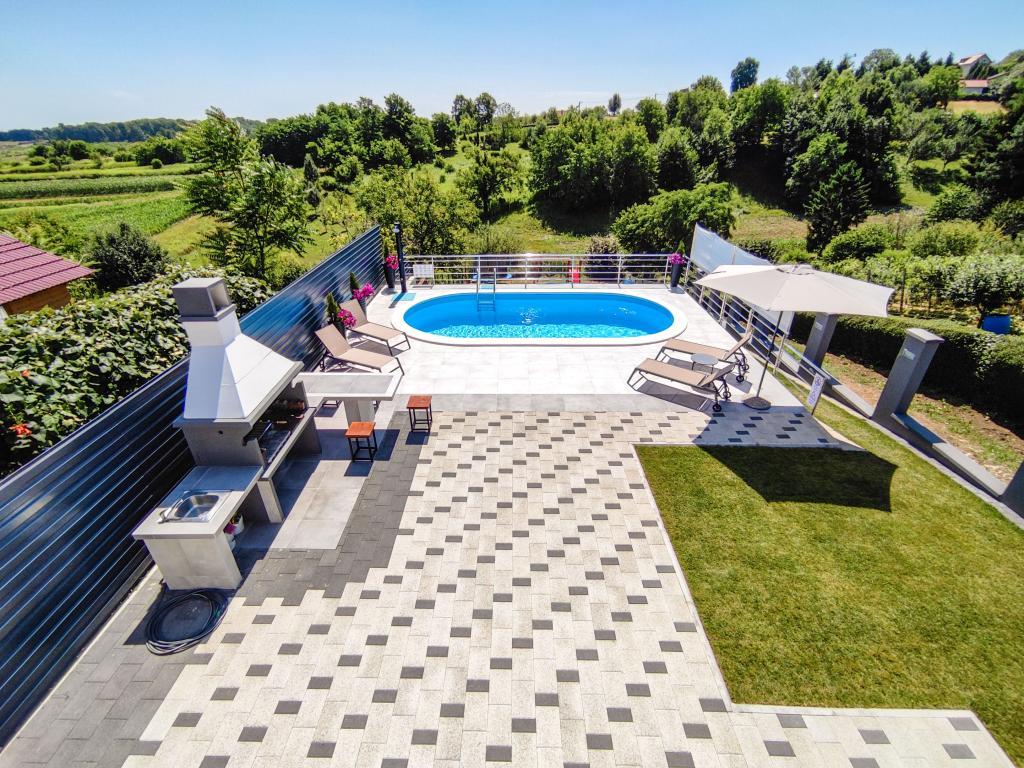 Casa de vacanță Dom&San cu o piscină și o locație foarte aproape de orașul baroc Varaždin și numeroase activități este ideală pentru o evadare din realitate. Relaxați-vă în sauna interioară sau în jacuzzi și bucurați-vă de vacanță. Datorită piscinei, aici vă puteți răcori confortabil chiar și în cele mai fierbinți zile ale anului. Piscina oferă răcoritoare de bun venit, iar terasa acoperită vă invită să vă relaxați la umbră cu mirosul de grătar și o băutură răcoritoare. Copiii dumneavoastră vor fi încântați de trambulină, tobogan, cadru de cățărat și curtea spațioasă, așa că cu siguranță se vor bucura să se joace în natură, la aer curat. Casa este formata din doua dormitoare, o baie, living spatios cu aer conditionat cu bucatarie si sufragerie si o camera de relaxare cu jacuzzi si sauna. Camerele luminoase si moderne sunt extrem de bine dotate, conform celor mai noi standarde din lumea interioarelor. Interiorul creează o atmosferă relaxată și plăcută pentru a vă face vacanța cât mai bună.