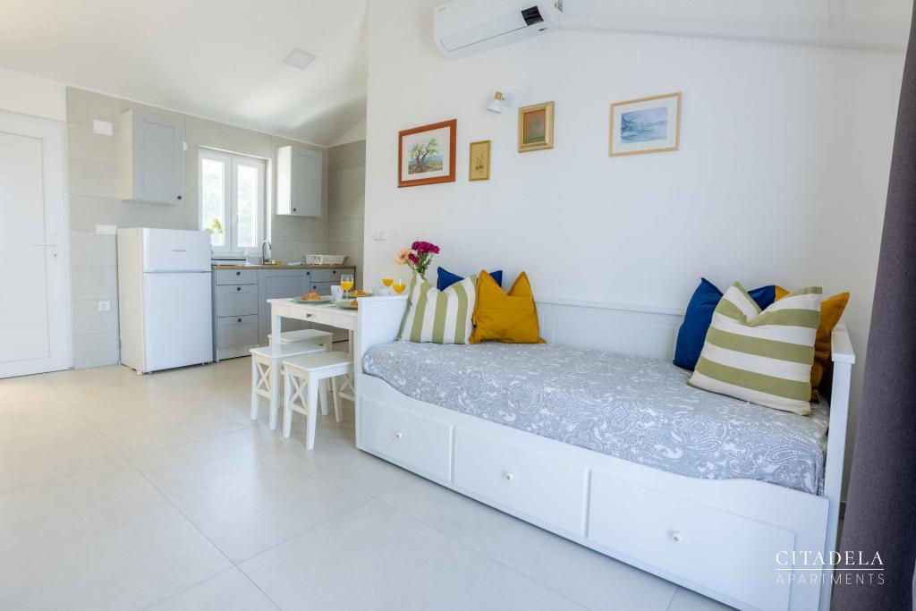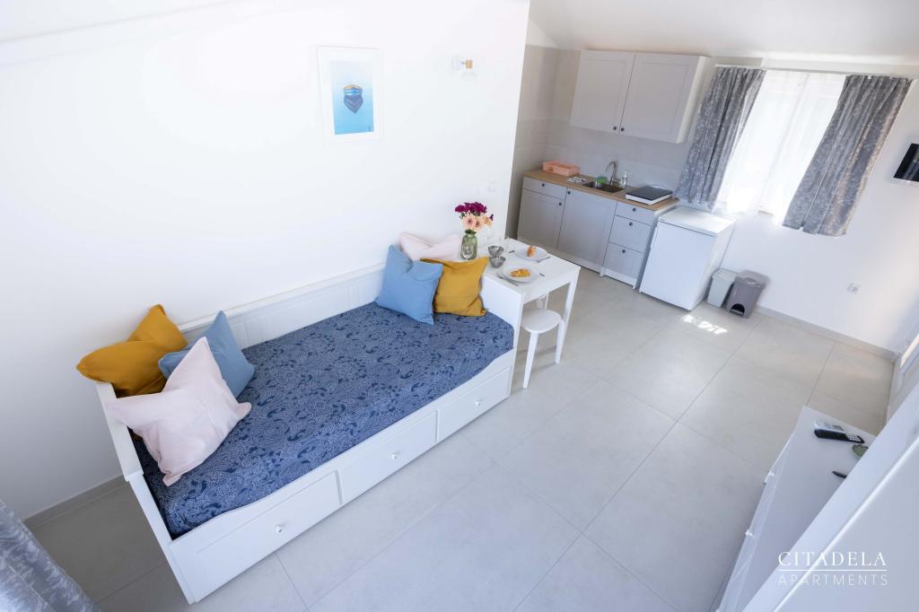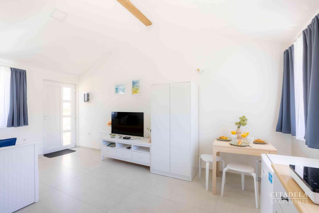 Citadela Veli Lošinj este formată din două garsoniere (2+0) și șase apartamente (2+1). Fiecare apartament are intrare proprie, terasă proprie, parcare gratuită, Wi-Fi, TV prin satelit și o chicinetă utilată. La sosire este obligatorie o primire călduroasă, cu o băutură răcoritoare. În calitate de gazde, vă vom ghida către toate facilitățile și atracțiile de pe insula Lošinj și vă vom asigura că aveți o vacanță de calitate și fără griji pe insula Lošinj. !!!!!!!!!!!!!!!!!!!!!!!!! DIN SEZONUL 2025, NE-A EXTINS OFERTA PENTRU A INCLUDE SERVICIUL DE PREGĂTIRE A MICULULUI !!!!!!!!!!!!!!!!!!!!!!!!!!!!!!!!!!!!!!!!!!!!!!!! Micul dejun este a la carte, fiecare oaspete alegându-și micul dejun pentru ziua următoare. Micul dejun se plătește la proprietate. Oaspete alege tipul și prețul micului dejun.