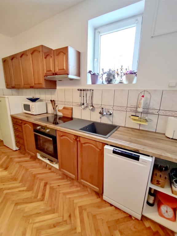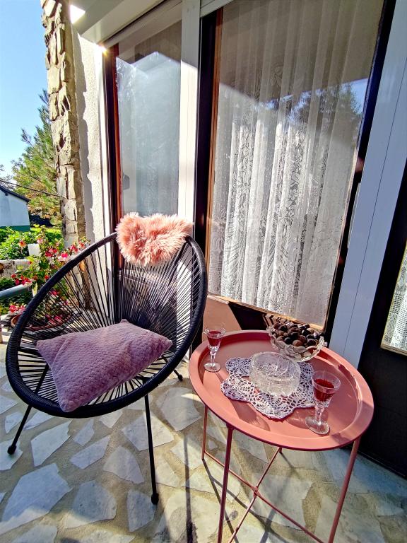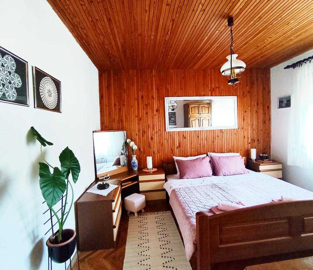 Apartament mobilat în stil slavon, modernizat, funcțional, înconjurat de copaci și pâraie în satul Velika podno Papuka. Bucataria este dotata cu electrocasnice si vase pentru prepararea si servirea mancarurilor. În dormitor există un pat dublu mare, realizat manual, din stejar, precum și un dulap dublu, o noptieră și o masă de machiaj cu oglindă. In livingul spatios se afla un din piele cu trei si doua locuri si un smart TV cu acces la terasa cu mobilier de gradina. Baia are încălzire prin pardoseală, duș și mașină de spălat. La dispoziția dumneavoastră este o curte cu baldachin și o masă mare cu bănci, un grătar, un loc de joacă pentru copii și o trambulină. În spatele clădirii este un pârâu în care poți pescui sau te împrospăta în zilele caniculare. Apartamentul este situat in apropiere de parcul natural, parc de adrenalina, parc acvatic, padure si podgorie. Se afla la 300 m de restaurant, la 1000 m de magazin si benzinarie.