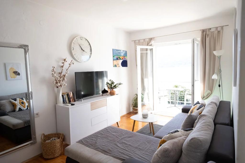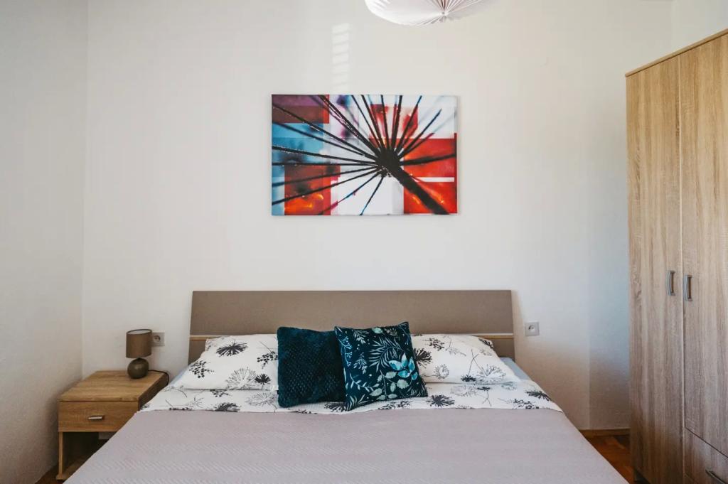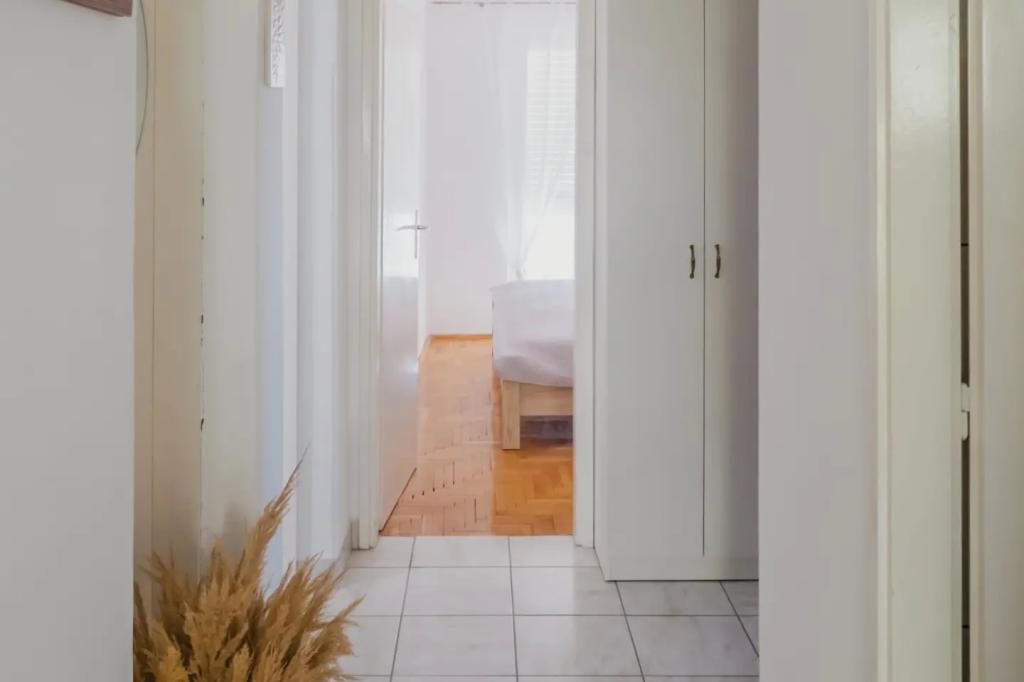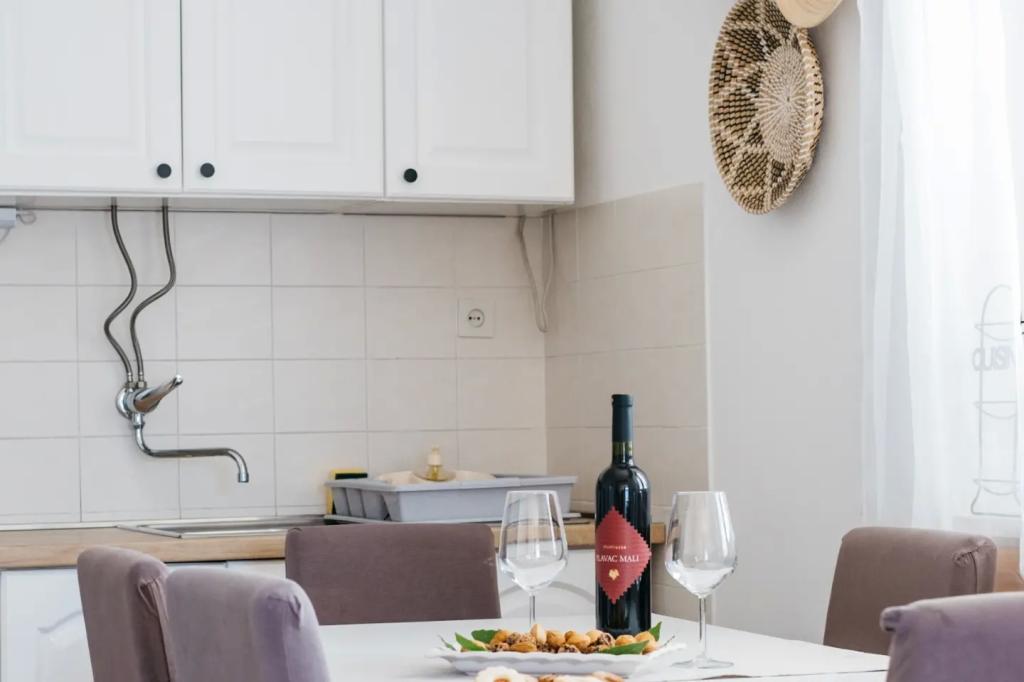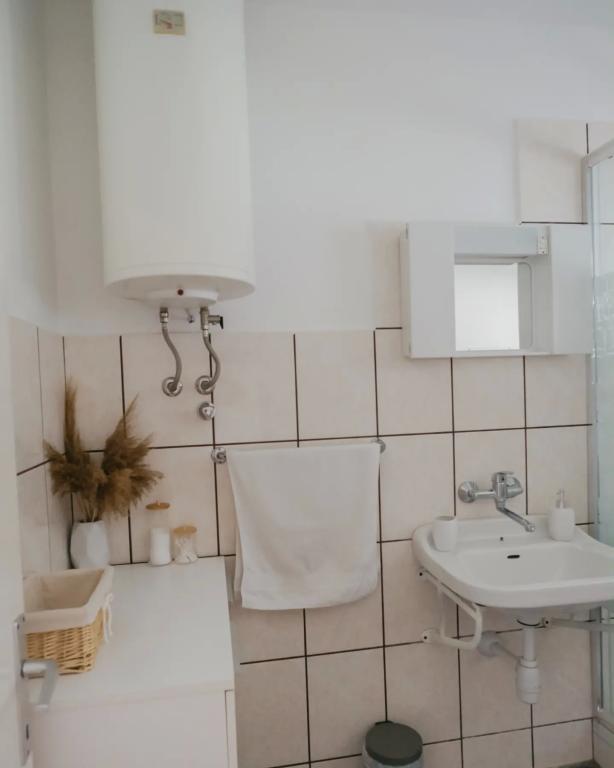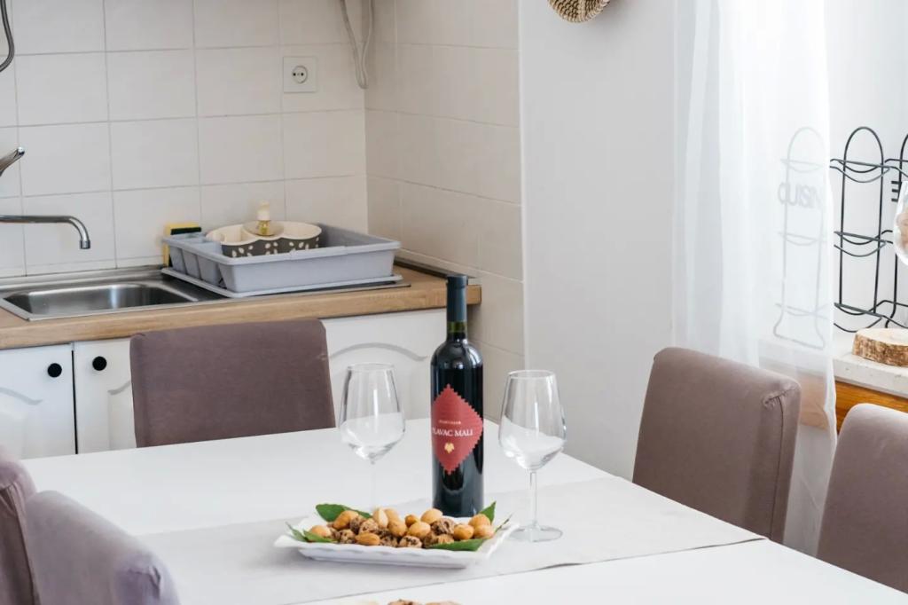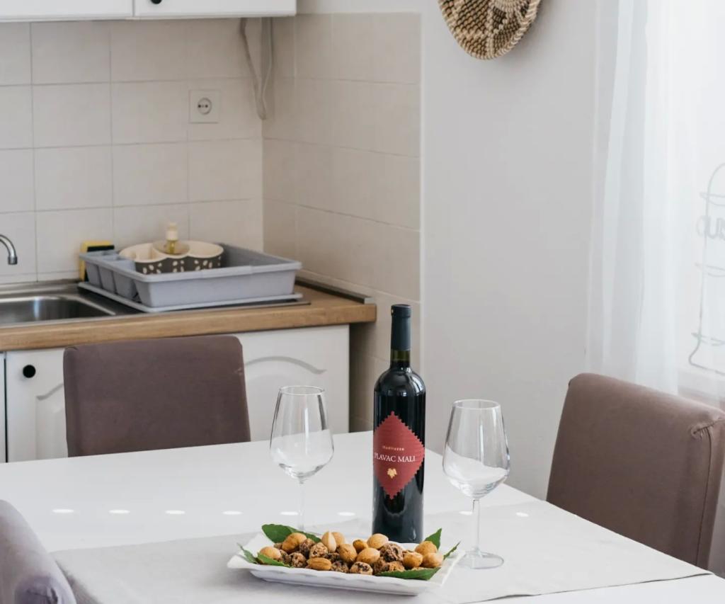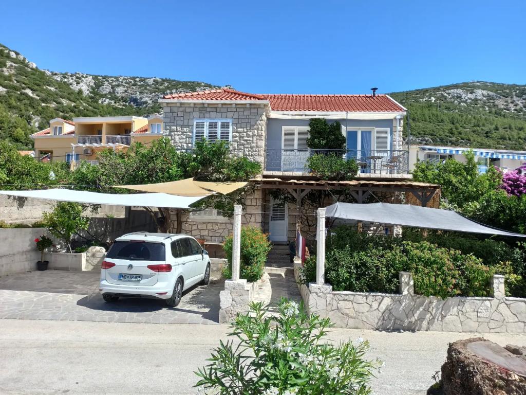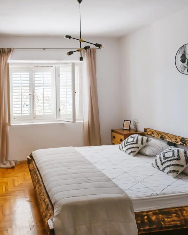 Apartamentul este situat la etajul casei, care este situat în apropiere de mare. Distanța de la centrul orașului la doar câteva minute de mers pe jos în cazul în care există un magazin și ATM-uri. Apartamentul are o bucatarie, patru dormitoare si doua bai. Ideal pentru familie mare sau un grup de prieteni. In fata casei este o terasa cu o mare din lemn de masă, grătar și leagăn. Există, de asemenea, un balcon cu vedere la mare la plecarea de două camere. Imediat în fața casei există două (cu pietriș) plajă și o dană pentru barca. Pretul include taxe, utilizarea internet și parcare. Sperăm să fie gazdele dumneavoastră!