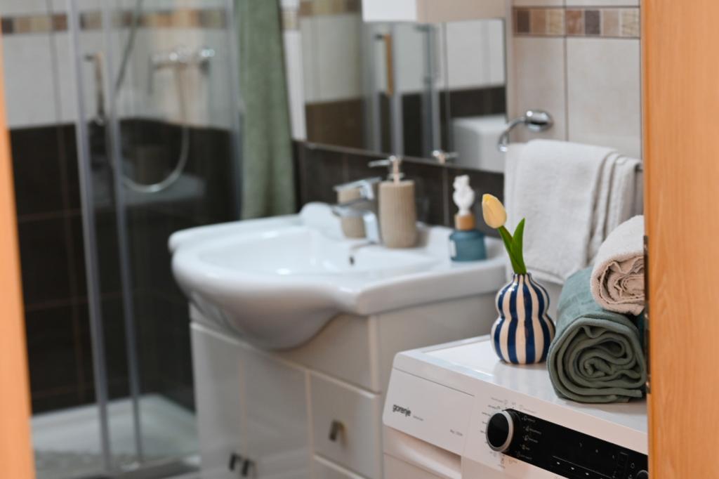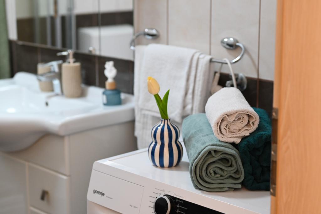 Pretul include o bautura de bun venit, precum si posibilitatea de a inchiria un SUP. În Vinišće, este posibil să închiriați o barcă și să descoperiți plaje de nisip ascunse. Trogir, oraș aflat sub protecția UNESCO, se află în apropierea orașului, la aproximativ 20 de kilometri distanță. La cererea dumneavoastră, vă putem recomanda orașe și orașe din apropiere care sunt minunate pentru vizitarea obiectivelor turistice (Primošten, Rogoznica, Parcul Național Krka). Vinišće oferă, de asemenea, mai multe piste de biciclete, trasee montane și zone pentru explorare. Este posibil să pescuiți și să faceți scufundări împreună cu gazdele. Apartamentul este foarte bine si utilat modern, in special bucataria, care are toate accesoriile. În sufragerie, există un smart TV mare și are capacitatea de a viziona Netflix.