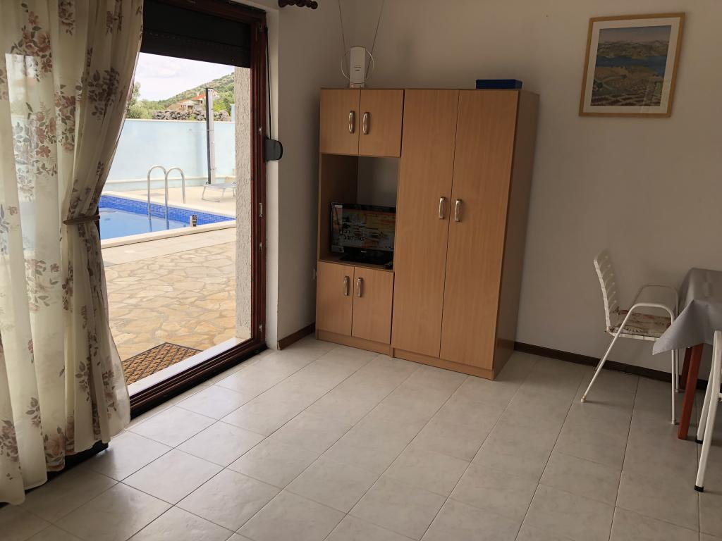Apartament frumos, foarte bine întreținut de gazde și dotat cu tot ce aveți nevoie.În această casă există o piscină care este curățată sistematic de către gazde.La locul perfect pentru a vă relaxa și reîncărca bateriile.Pe terasa puteți sta și vă bucurați de priveliștea frumoasă a mării. perfect pentru relaxare si uitare pentru viata de zi cu zi Sunt foarte mult aici si ma voi intoarce aici pentru un an si va recomand tuturor celor care cauta un apartament curat cu o piscina si odihna intr-o zona linistita.Existand, de asemenea, un gratar unde puteti gratar.Gospodariile acestui apartament sunt foarte primitoare , cu o inimă bună, amabil și grijuliu pentru curățenia acestei facilități, care lasă timp pentru oaspeții care iau bărci private pentru călătorii, îi voi recomanda acest apartament cu o conștiință onestă și știu că toată lumea va fi mulțumită de același cârlig după trecerea vacanței.