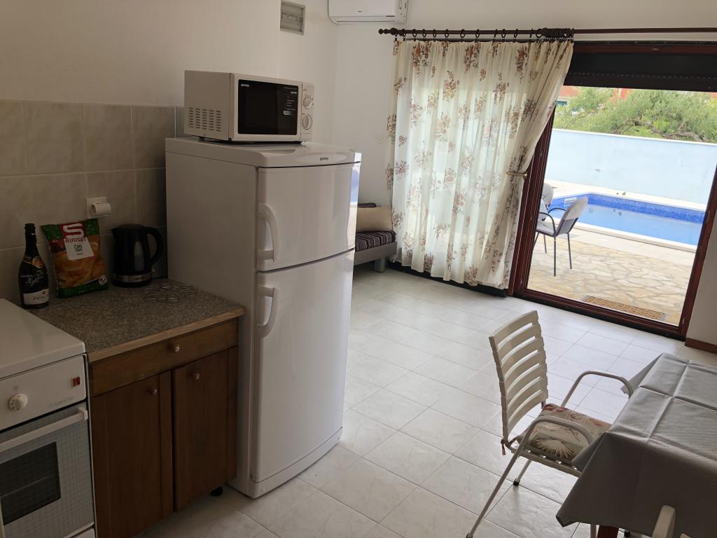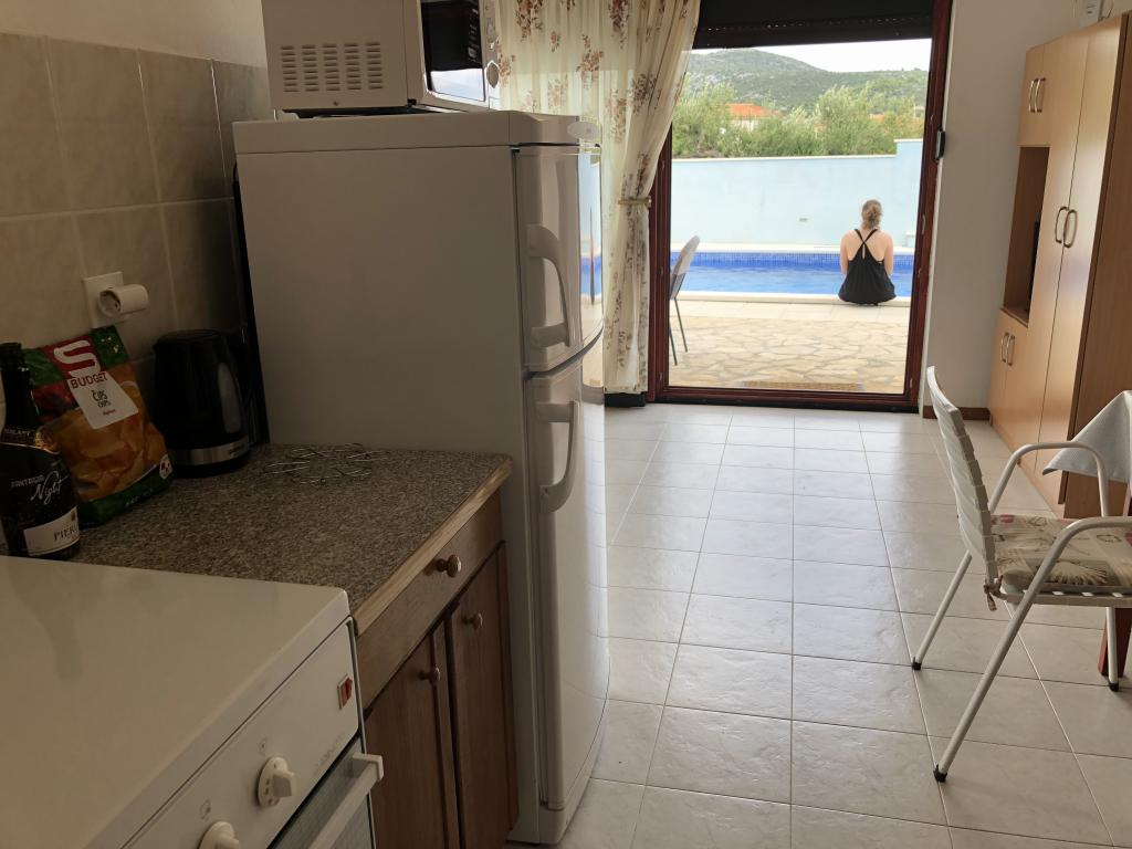 Apartament bine echipat cu tot ce ai nevoie pentru sejurul tau. Piscina este grozava, curatata in fiecare zi si bine intretinuta. Proprietari drăguți și de ajutor. Orașul Vinisce este un loc liniștit departe de mulțimile de oameni. În apropiere se află câteva plaje frumoase, inclusiv în Marina, plaja Stari Trogir