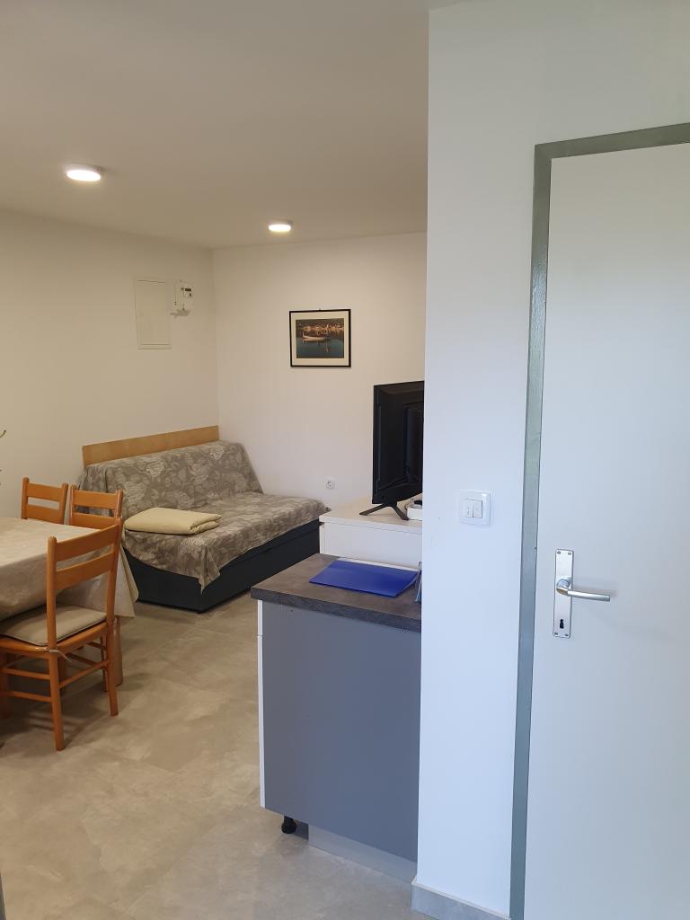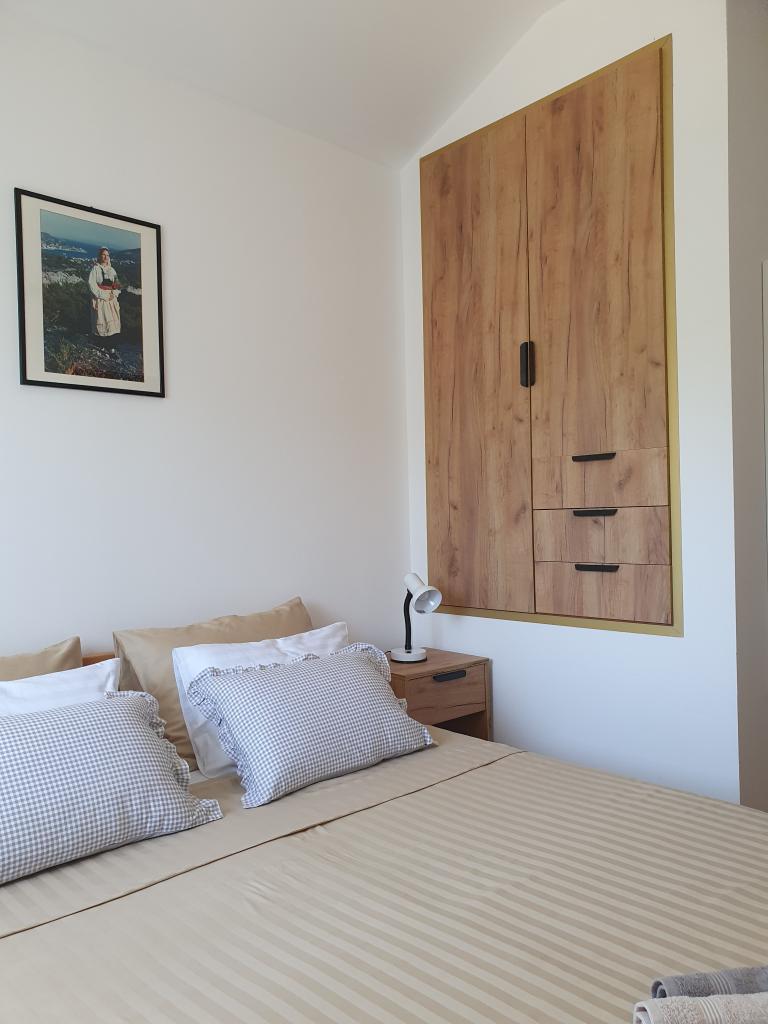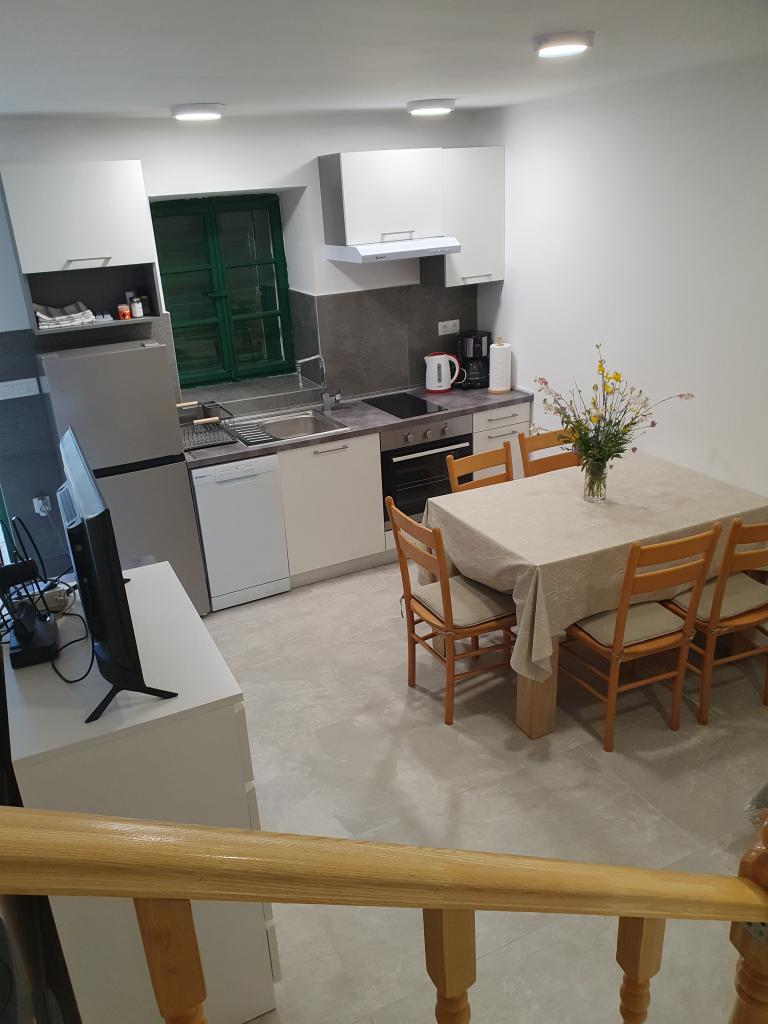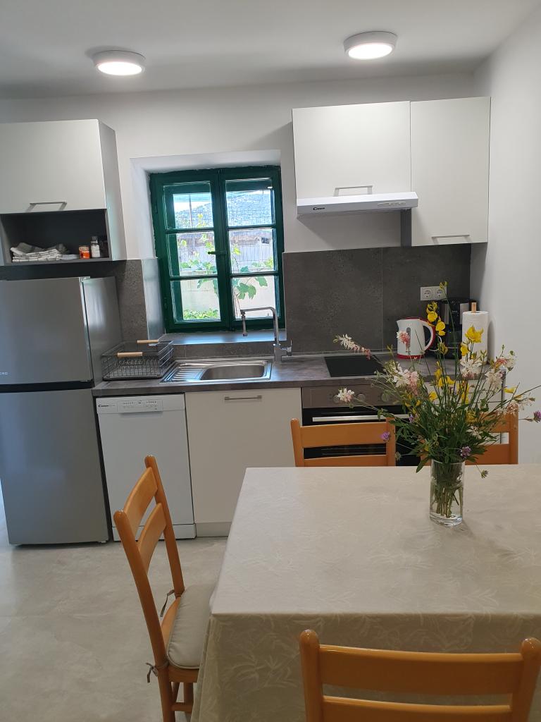 Casa de vacanță „Kaja” este situată în partea veche și liniștită a unui mic oraș dalmat. Este dotată cu toate facilitățile necesare pentru o ședere plăcută. Chiar lângă casă se află un loc de parcare și o terasă umbrită. Casa este împărțită pe două etaje, conectate printr-o scară interioară. La parter se află o bucătărie complet utilată, cu o sufragerie, un living și o toaletă mică. La primul etaj se află două dormitoare duble și o baie cu toaletă. Una dintre camere are ieșire la un balcon de unde se oferă o vedere panoramică asupra întregului oraș. Plaja se află la aproximativ 10 minute de mers pe jos de casă, iar alte facilități, cum ar fi restaurante și magazine, sunt situate la o distanță similară.