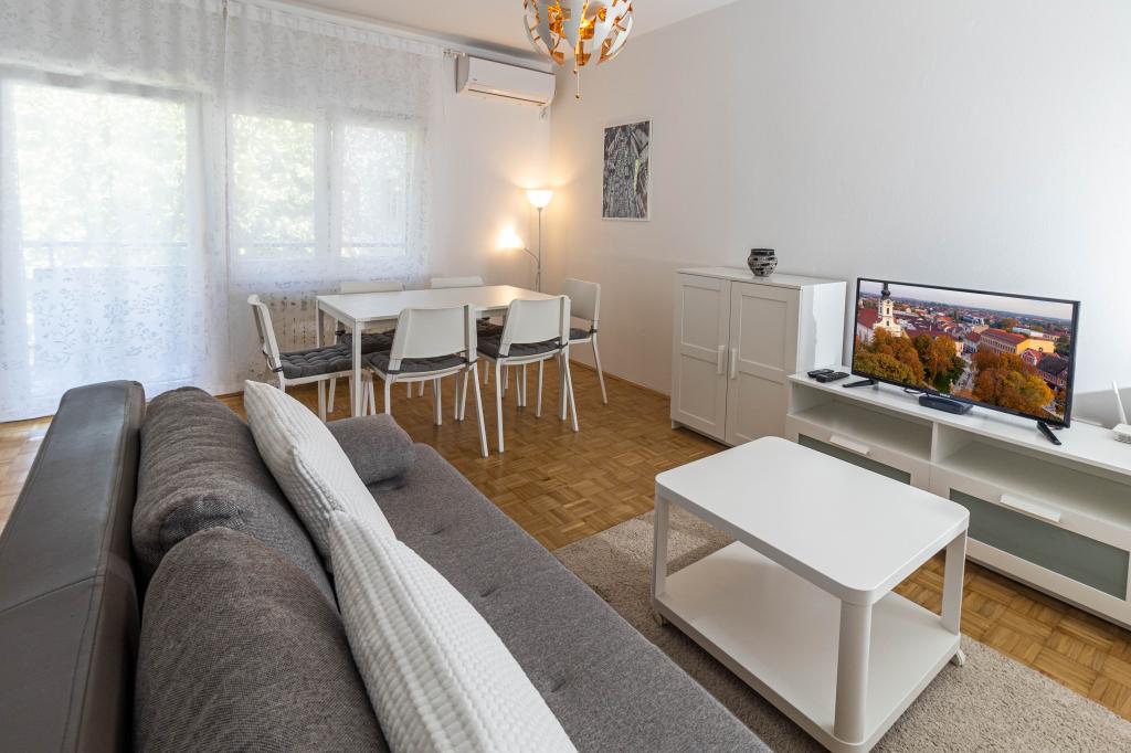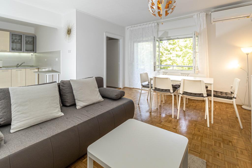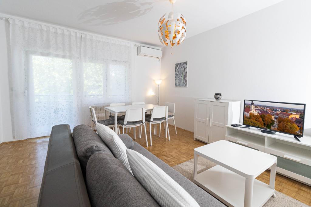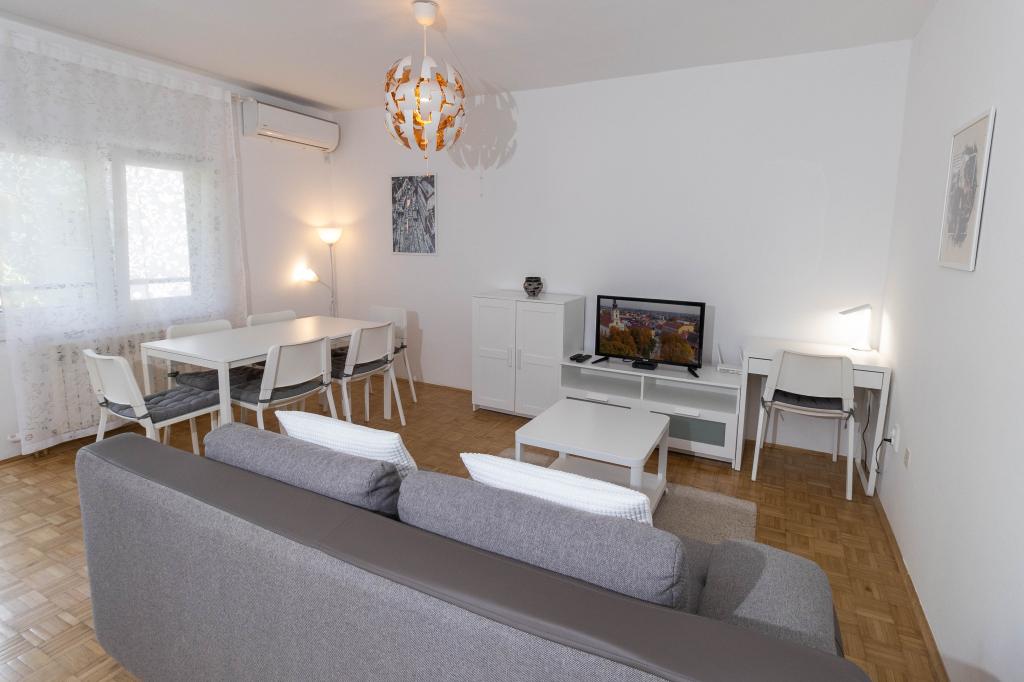 Locație excelentă în centrul orașului! Apartament complet recent renovat (58m2) pentru cazare confortabilă pentru patru până la șase persoane. Living mare (canapea ce poate fi extinsă într-un pat suplimentar pentru două persoane), balcon, două dormitoare (fiecare cu un pat pentru două persoane), bucătărie, baie cu cabină de duș și hol. Bucătărie complet utilată, mașină de spălat/uscător, spațiu cu aer condiționat, wi-fi (conexiune optică la internet), 120 de programe TV, balcon frumos...