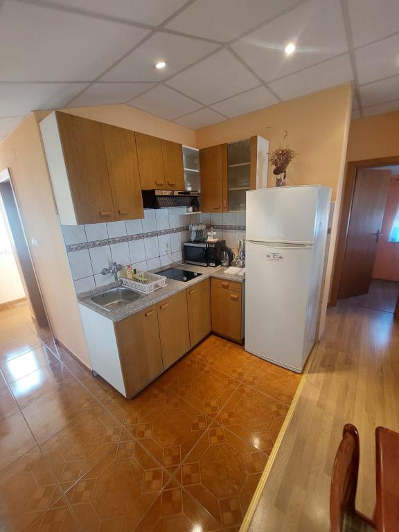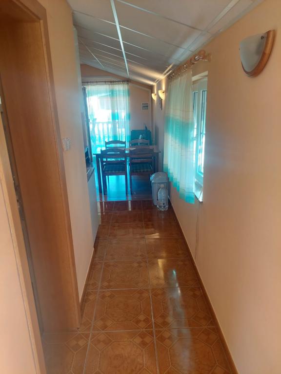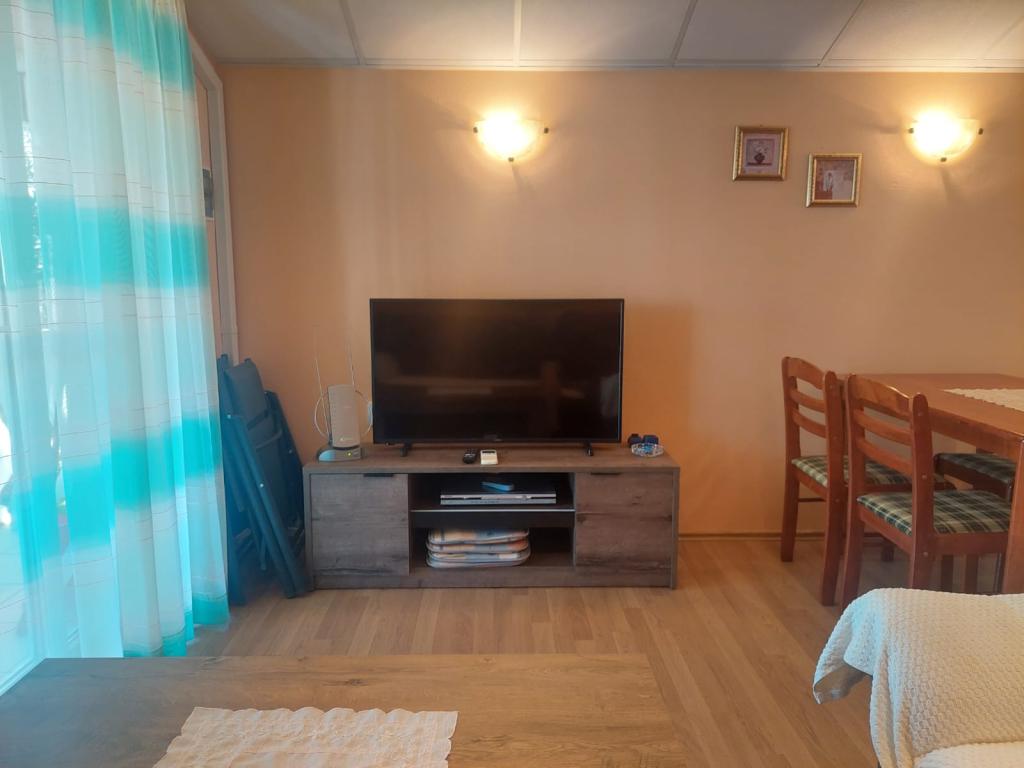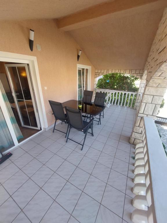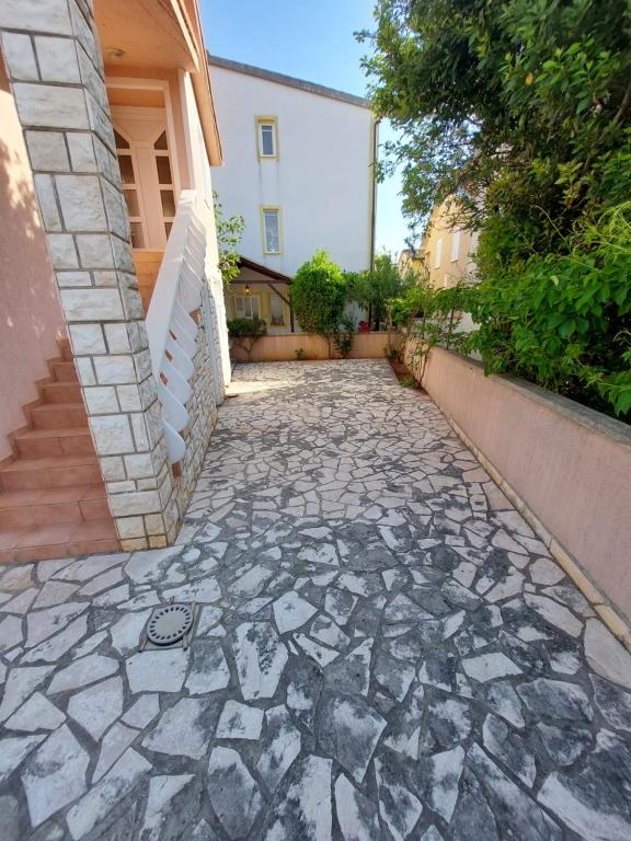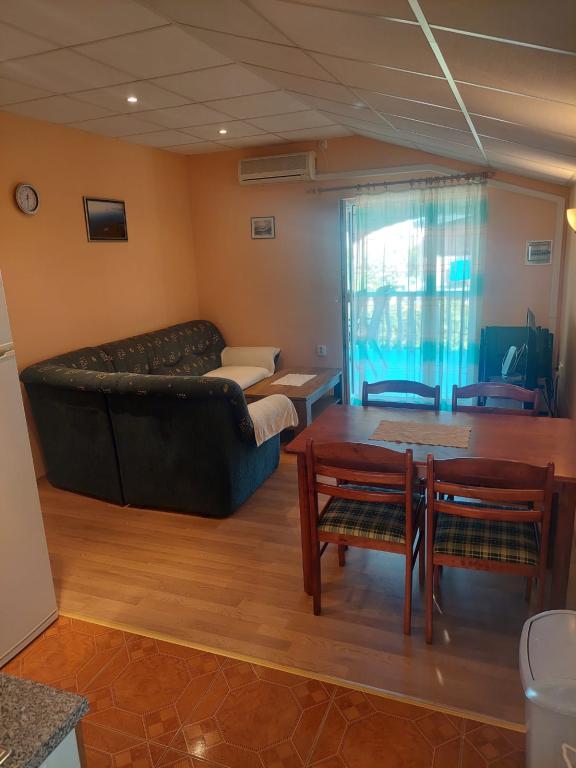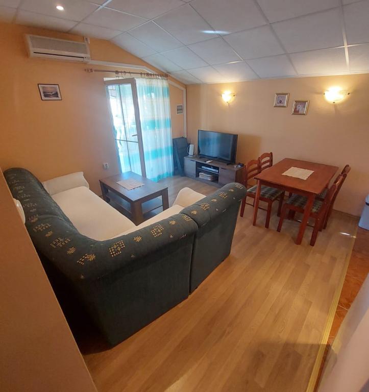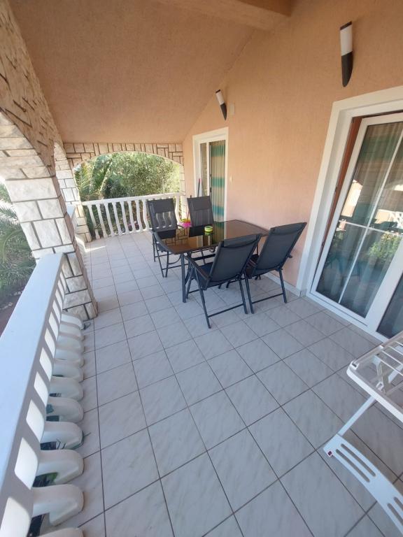 Apartamentul mobilat placut este situat pe insula Vir, care ofera numeroase activitati pentru distractie si relaxare in acelasi timp. Curtea este plină de verdeață și oferă parcare gratuită pentru mașina dumneavoastră. De asemenea, este posibil să folosiți echipamentul pentru un grătar ideal. Imobilul contine living, bucatarie, baie, doua dormitoare si o terasa spatioasa. Apartamentul este dotat cu aparate precum aer conditionat, internet, smart TV, DVD, radio, cuptor cu microunde, ceainic, frigider cu congelator, uscator de par, etc. Plaja este cu pietris, iar in mare sunt pietricele mici si nisip. O parte din plajă este perfect adaptată pentru copii. Plaja este la doar câteva minute, iar centrul este la 10 minute de mers pe jos. Un supermarket mare este la 400 m, iar cel mai apropiat restaurant este la doar 300 m.