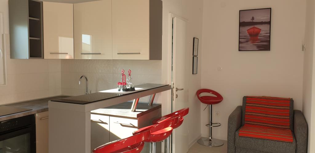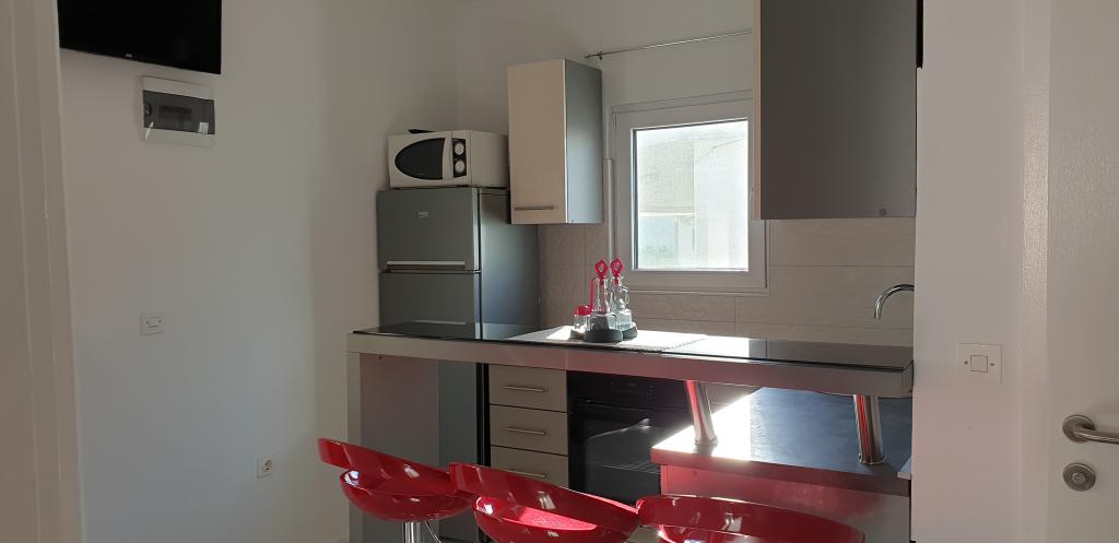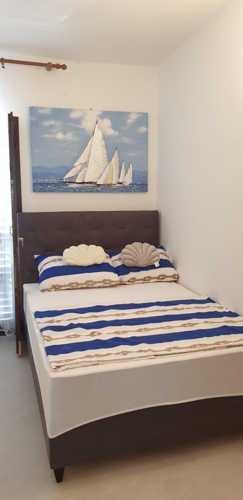 Apartament complet utilat, televizor, aer conditionat, wi-fi, plita cu inductie, cuptor, cuptor cu microunde, ceainic, masina de spalat vase. Apartamentul este la etaj, este compus dintr-o bucatarie, baie si doua dormitoare, unul cu pat matrimonial si celalalt cu doua paturi de o persoana care duce la o terasa cu vedere la mare. Centrul este la aproximativ 2 km de-a lungul promenadei de lângă mare, un magazin este la 300 de metri, iar un restaurant la 30 de metri. Așteptăm cu nerăbdare vizita dumneavoastră și suntem întotdeauna disponibili pentru întrebări și rezervări.