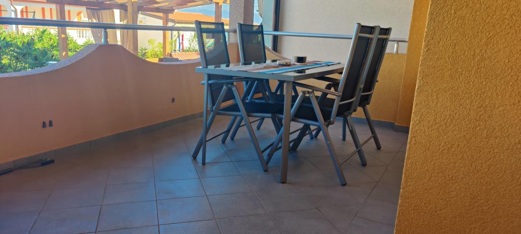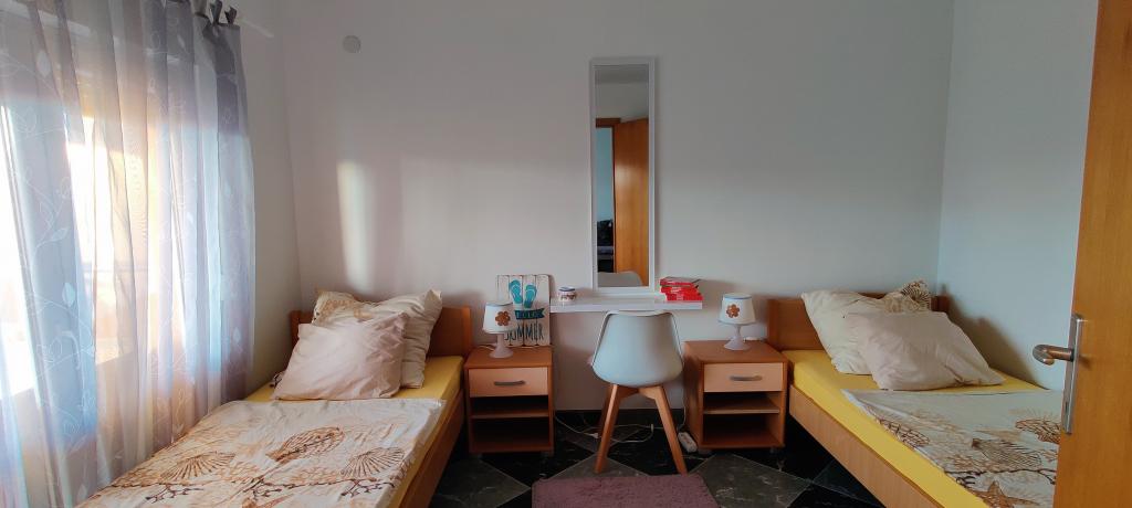 Apartament complet decorat modern, situat în partea de nord a insulei Vir. Insula este conectată printr-un pod. Este situat la primul etaj al unei case familiale, la 90 de metri de plaja Zitna. Apartamentul are o curte imprejmuita cu un loc de parcare si un gratar din caramida pe care oaspetii il pot folosi. Apartamentul este dotat cu aer condiționat, WiFi gratuit, aparat de cafea Dolce Gusto, ceainic și dozator de apă.