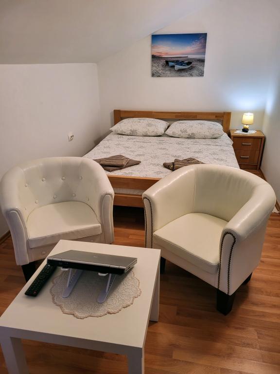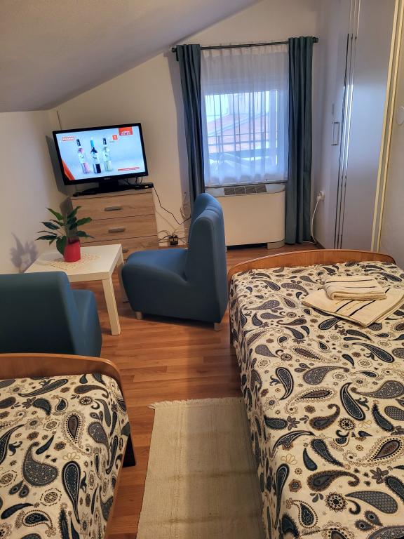 Satisfacție absolută. Proprietarii unității de cazare domnul Josip și doamna Milica sunt foarte primitori, iar tortul de bun venit și cina au fost absolut minunate și neașteptate. Camerele sunt curate si dotate cu tot ce ai nevoie. Terasa este spatioasa si este umbrita de perdele cusute de doamna Milica. Ferestrele au plase de tantari si functioneaza aerul conditionat. Este disponibilă apă răcită, deși apa de la robinet este, desigur, potabilă. În timpul șederii noastre de 14 zile, am primit de mai multe ori prosoape și cearșafuri curate. Una dintre cele mai bune locuri de cazare pe care le-am experimentat vreodată. Acest lucru este dovedit de alte recenzii pozitive. Le dorim multă sănătate lui Josif și Milice și să continue să opereze astfel de facilități pentru mulți ani de acum înainte. Ivona și Jan K.
