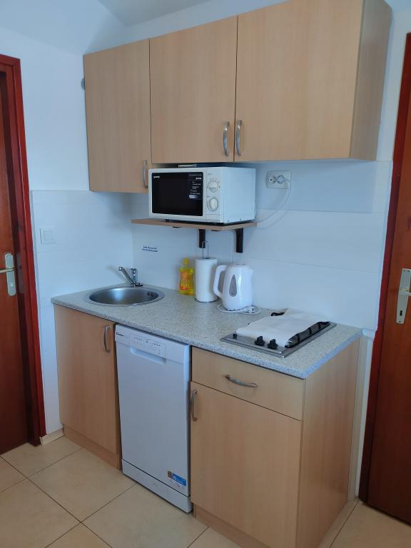 Complet mobilat apartament studio cu doua dormitoare, bucatarie, baie si o terasa mare, care are o vedere directă la mare. Fondurile au 3 locuri de parcare și grătar pentru oaspeți. plajă cu pietriș potrivite pentru familiile cu copii mici este de numai 100 de metri de apartament, pe plaja exista o cafenea mică.