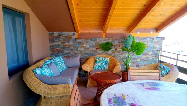 Apartamentul este la mansarda unei case mici. Este cel mai mic și mai strâns din care am fost vreodată. În plus, este insuportabil de cald în el din cauza tavanului fierbinte din beton, care este atât de jos în dormitoare încât tot te lovești la cap. Nu puteți crea un curent de aer pentru că există doar o singură fereastră mică în cameră și din această cauză sunteți în mod constant sufocat și lipsiți de oxigen. Aerul conditionat este slab si proprietarul il porneste si o opreste cand ii convine deoarece aerul conditionat este pornit la parterul casei in care stau tot timpul proprietarii. Este puțină apă caldă și apa nu este potabilă. Camerele sunt mici și înghesuite, trebuie să te târești peste pat pentru a ajunge la dulap, iar paturile sunt incomode. Nu puteam să dormim deloc, iar când ne-am trezit, toți ne dorea. Nu există îngrijire de zi. Ușile se lovesc între ele la deschidere. Bucătăria este mică, înghesuită, are o masă pliabilă unde doar doi pot mânca. Aragazul este pe gaz, nu există cuptor. Balconul este foarte cald ziua, așa că poate fi folosit doar seara, dar apoi sunt mulți țânțari. Peste balcon este casa vecinului, deci nu ai nicio intimitate nici fata de proprietar. Locația este foarte proastă, nu există un singur restaurant, magazin, înghețată sau brutărie în apropiere, trebuie să mergi în centru cu mașina pentru a ajunge acolo pentru că este mai mult de jumătate de oră de mers pe jos pe o stradă fără trotuare și iluminat , ceea ce nu este recomandat. Gratarul proprietarului este in magazie, pe care nu il poti folosi fara el.Wi-Fi-ul este prost si lent, la fel ca semnalul de pe telefoanele mobile. Una peste alta, nu satisface.
