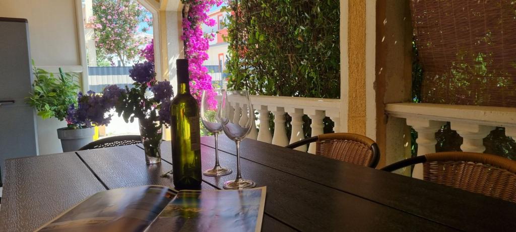 Dragi oaspeti, vin la apartamentul nostru complet și modern mobilat pe această frumoasă insulă lângă Zadar. Cazarea este situată într-un loc liniștit, departe de 250m plajă. Apartamentul este potrivit pentru 4-5 persoane. Oaspeții au acces la o terasă, TV prin satelit, Wi-Fi, aer, foc, apa, gratar, cabină de duș în aer liber, biciclete, lenjerie de pat, prosoape, parcare. Biciclete pot merge în jurul insulei și să se cunoască frumusețea ei. Plaja are o cutie de nisip în cazul în care vă puteți juca copiii în timp ce vă bucurați de umbră.