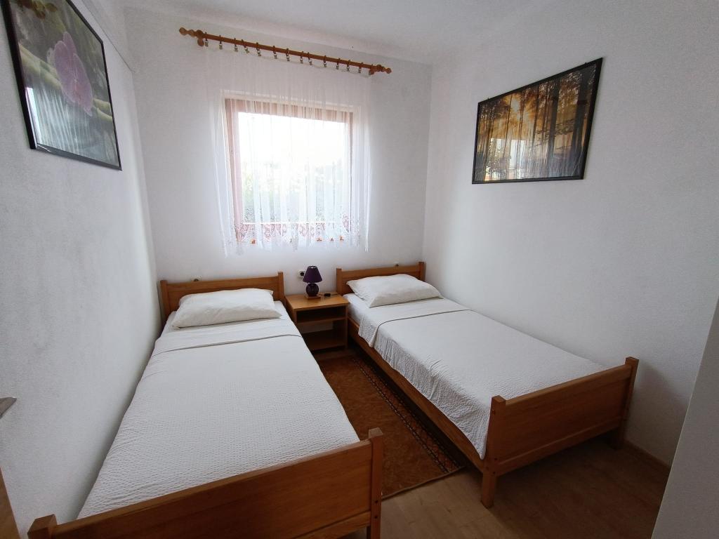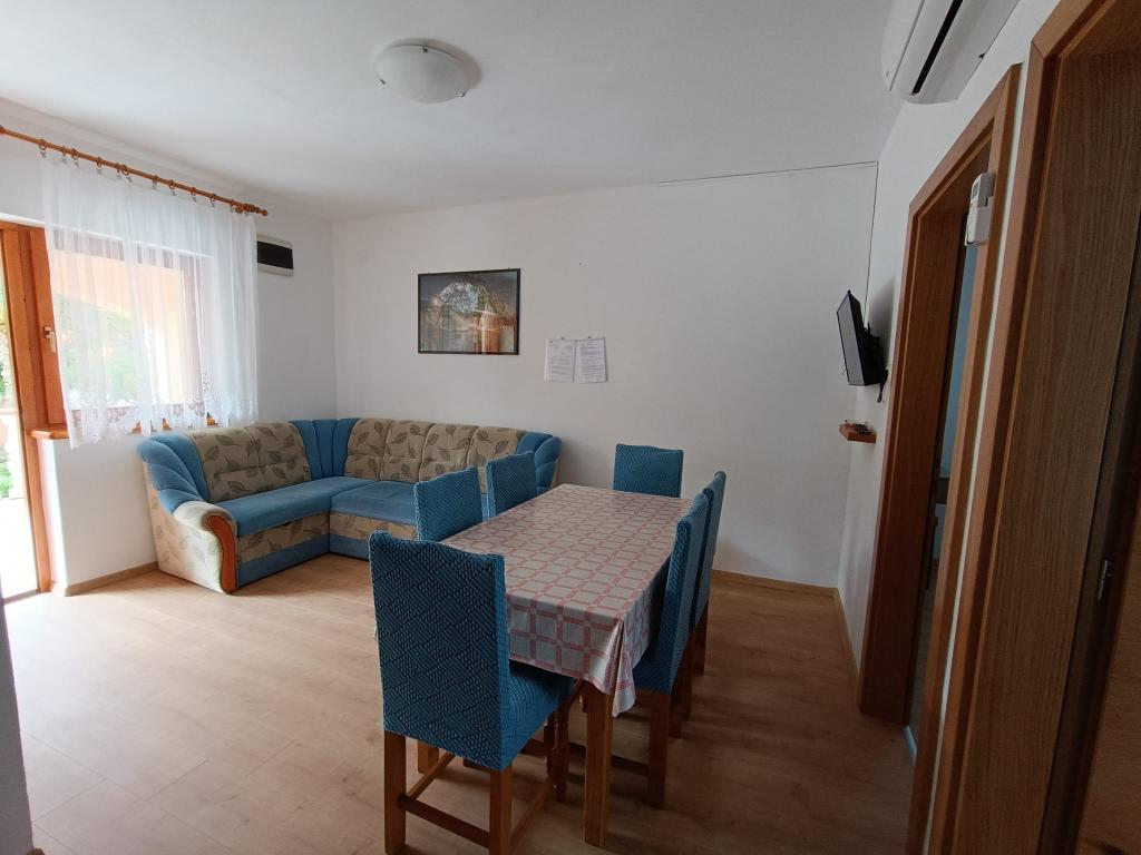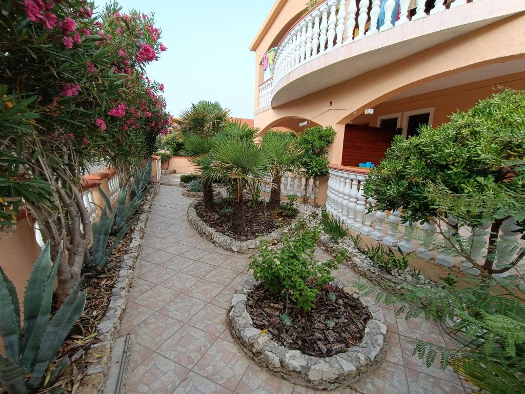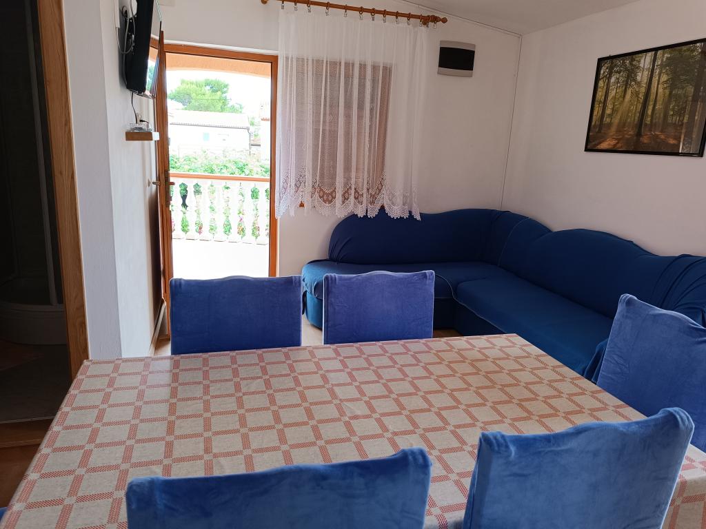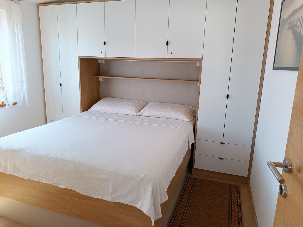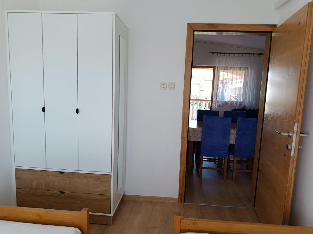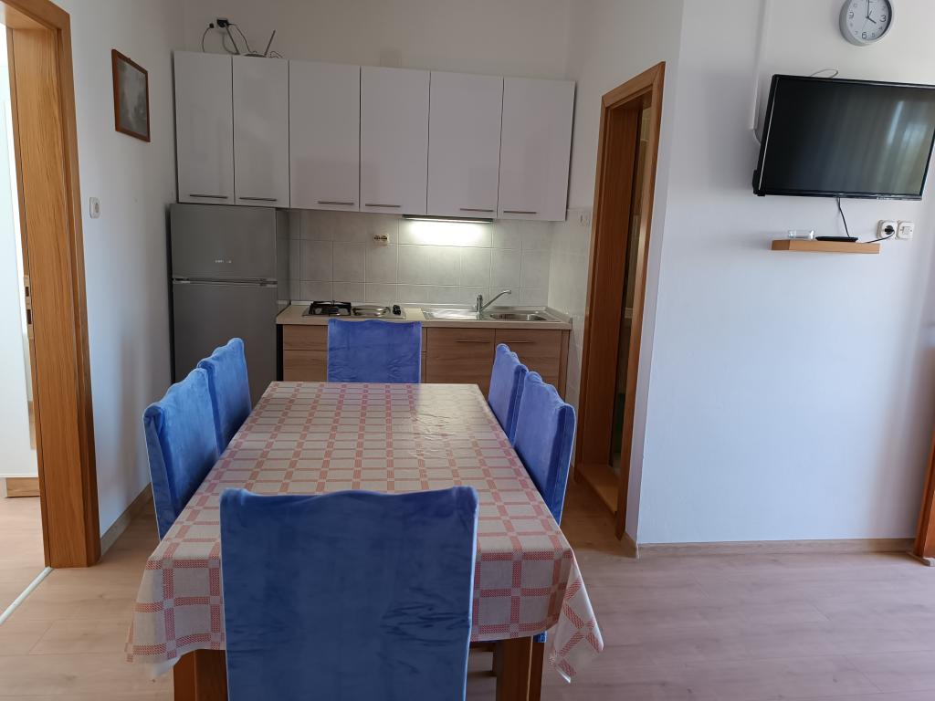 Închiriem trei apartamente identice, mai mari, cu aer condiționat pentru 4 persoane și un apartament mai mic pentru două persoane. Una mai mare este la parter în stânga și două la primul etaj. Cel mai mic este la parter în dreapta. Apartamentele mai mari au două dormitoare și o cameră de zi, în timp ce apartamentele mai mici au un dormitor și o cameră de zi. Fiecare apartament are o intrare separata si o terasa de 12 mp. În apartamente primești toată lenjeria de pat și vesela pentru gătit și servirea alimentelor și băuturii. Oaspeții sunt rugați să-și aducă propriile mijloace pentru spălarea și ștergerea vaselor, precum și prosoape pentru baie și totul pentru igiena personală. Cea mai apropiată plajă (Žitna uvala) este la 100 m. Afară pe plajă este pietriș, iar în apă este nisip. Este potrivit pentru copii. Există o promenadă lungă și o pistă de biciclete de-a lungul plajei. Pe plajă există mai multe restaurante și o înghețată. Pe o rază de 150-250 de metri se află o fructărie, o brutărie, mai multe magazine alimentare și magazine cu echipamente de plajă. Strada noastră nu este aglomerată. Este folosit doar de chiriașii și oaspeții săi. Este pavata si dispune de iluminat public.