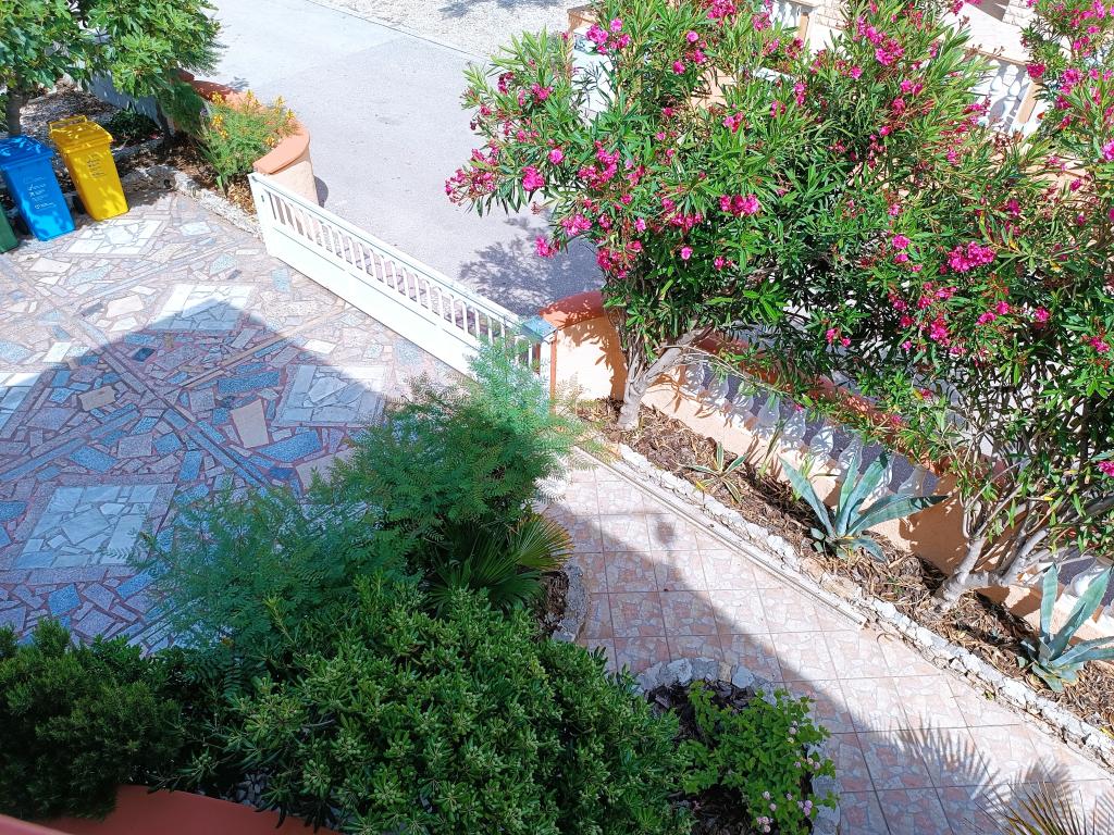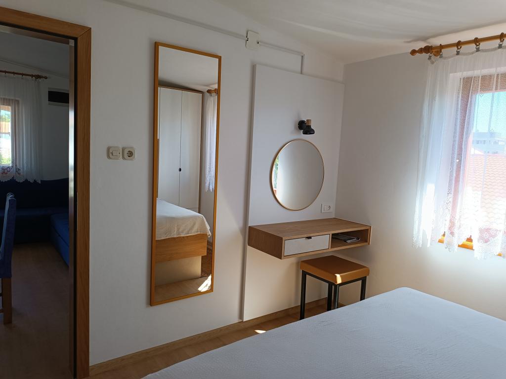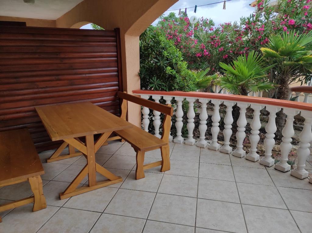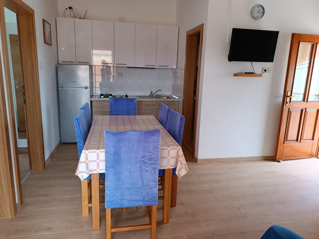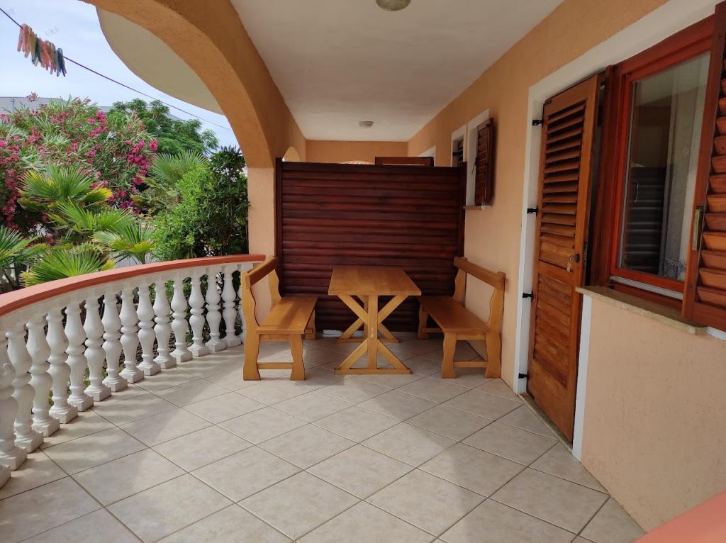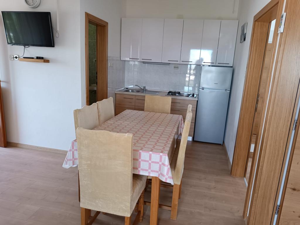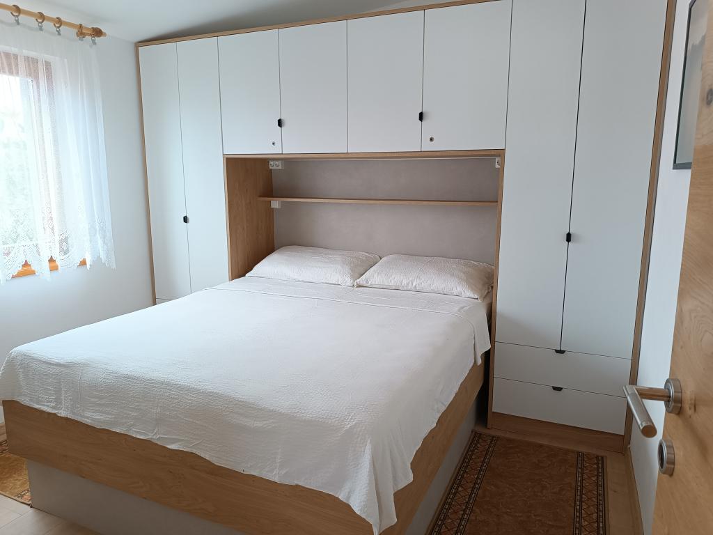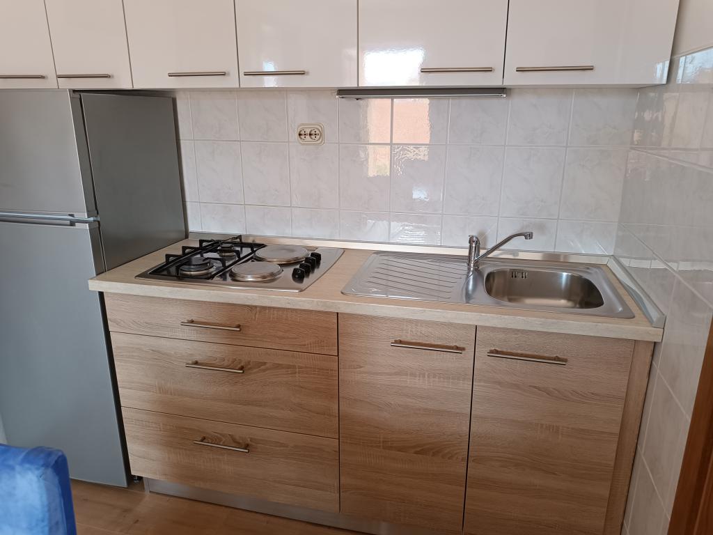 Închiriem trei apartamente identice, mai mari, cu aer condiționat pentru 4 persoane și un apartament mai mic pentru două persoane. Una mai mare este la parter în stânga și două la primul etaj. Cel mai mic este la parter în dreapta. Apartamentele mai mari au două dormitoare și o cameră de zi, în timp ce apartamentele mai mici au un dormitor și o cameră de zi. Fiecare apartament are o intrare separata si o terasa de 12 mp. În apartamente primești toată lenjeria de pat și vesela pentru gătit și servirea alimentelor și băuturii. Oaspeții sunt rugați să-și aducă propriile mijloace pentru spălarea și ștergerea vaselor, precum și prosoape pentru baie și totul pentru igiena personală. Cea mai apropiată plajă (Žitna uvala) este la 100 m. Afară pe plajă este pietriș, iar în apă este nisip. Este potrivit pentru copii. Există o promenadă lungă și o pistă de biciclete de-a lungul plajei. Pe plajă există mai multe restaurante și o înghețată. Pe o rază de 150-250 de metri se află o fructărie, o brutărie, mai multe magazine alimentare și magazine cu echipamente de plajă. Strada noastră nu este aglomerată. Este folosit doar de chiriașii și oaspeții săi. Este pavata si dispune de iluminat public.