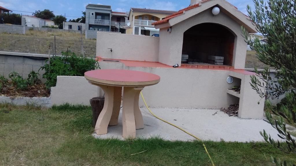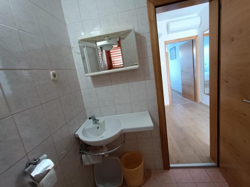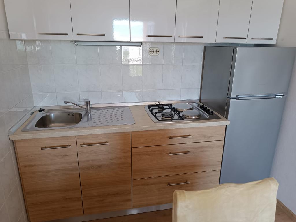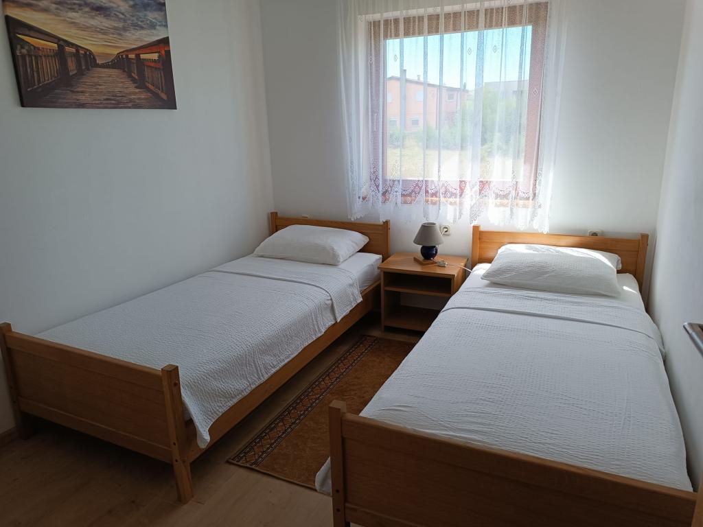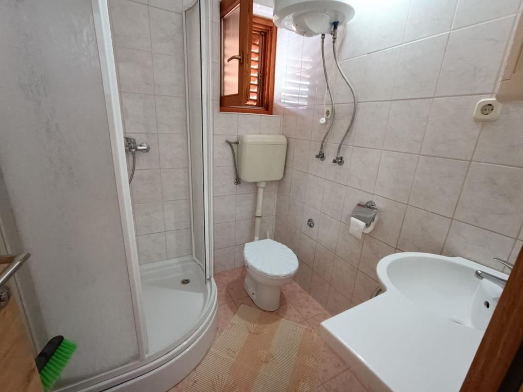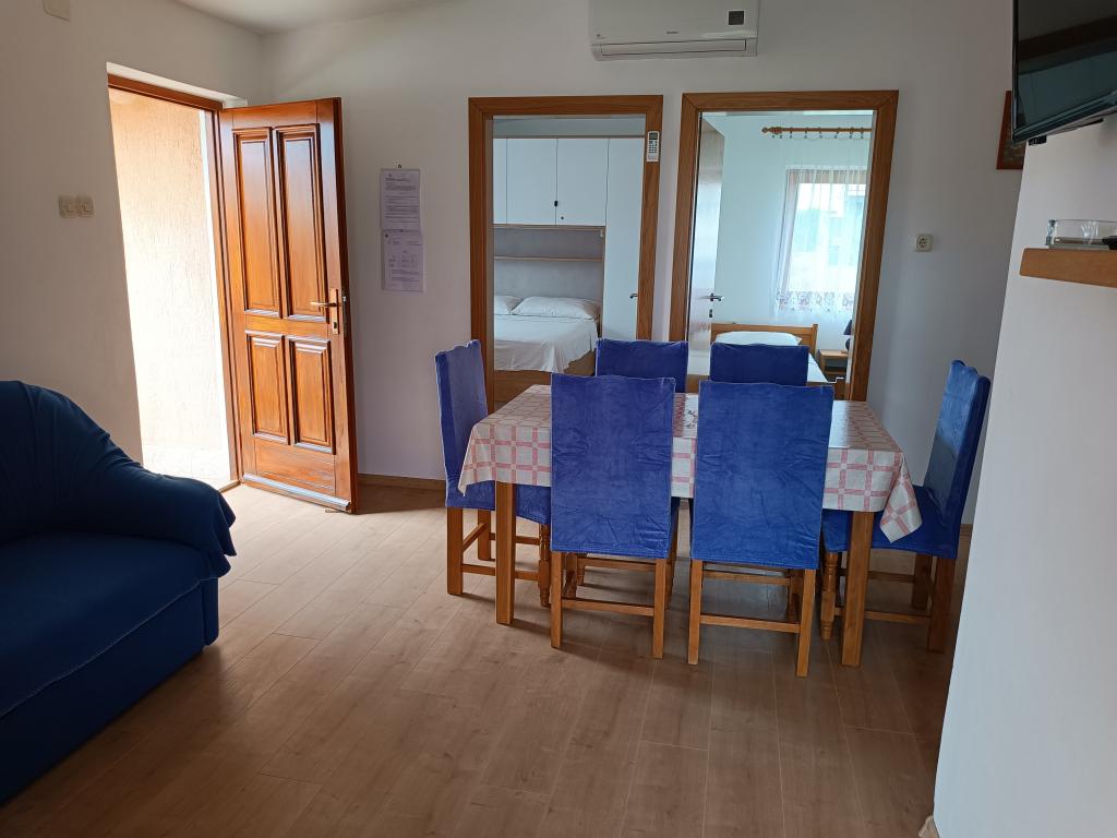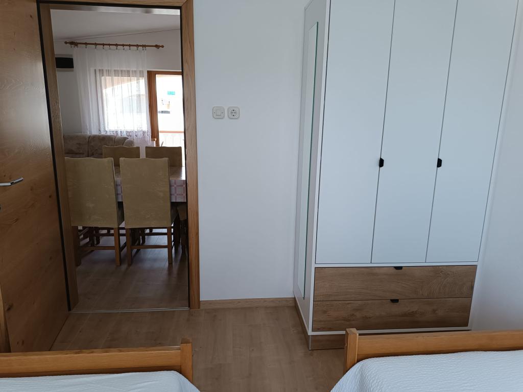 Închiriem trei apartamente identice, mai mari, cu aer condiționat pentru 4 persoane și un apartament mai mic pentru două persoane. Una mai mare este la parter în stânga și două la primul etaj. Cel mai mic este la parter în dreapta. Apartamentele mai mari au două dormitoare și o cameră de zi, în timp ce apartamentele mai mici au un dormitor și o cameră de zi. Fiecare apartament are o intrare separata si o terasa de 12 mp. În apartamente primești toată lenjeria de pat și vesela pentru gătit și servirea alimentelor și băuturii. Oaspeții sunt rugați să-și aducă propriile mijloace pentru spălarea și ștergerea vaselor, precum și prosoape pentru baie și totul pentru igiena personală. Cea mai apropiată plajă (Žitna uvala) este la 100 m. Afară pe plajă este pietriș, iar în apă este nisip. Este potrivit pentru copii. Există o promenadă lungă și o pistă de biciclete de-a lungul plajei. Pe plajă există mai multe restaurante și o înghețată. Pe o rază de 150-250 de metri se află o fructărie, o brutărie, mai multe magazine alimentare și magazine cu echipamente de plajă. Strada noastră nu este aglomerată. Este folosit doar de chiriașii și oaspeții săi. Este pavata si dispune de iluminat public.