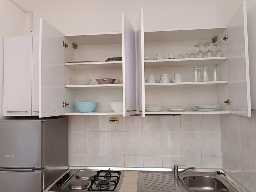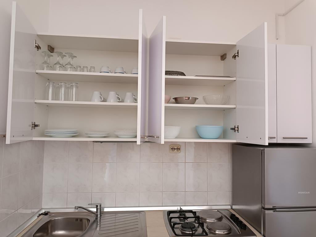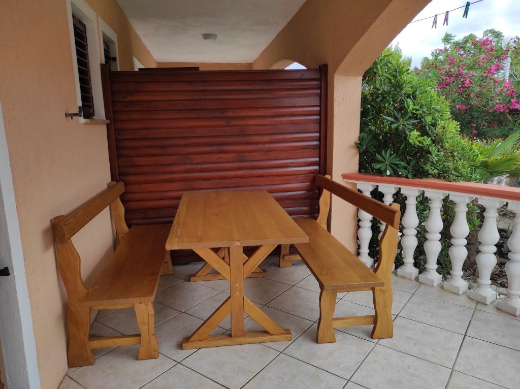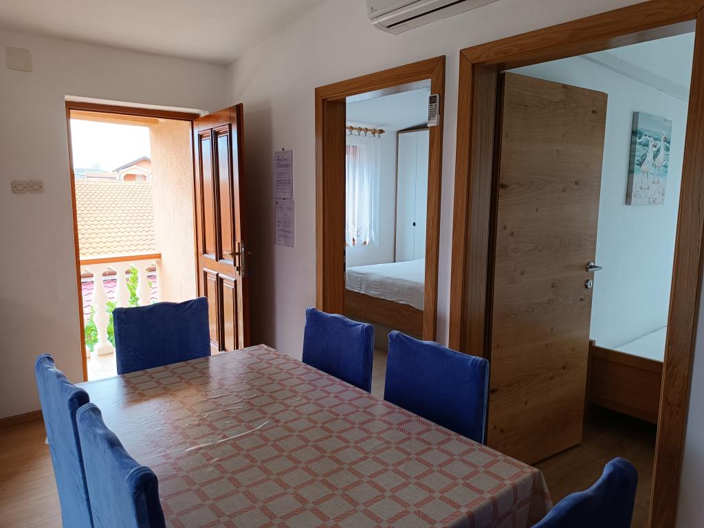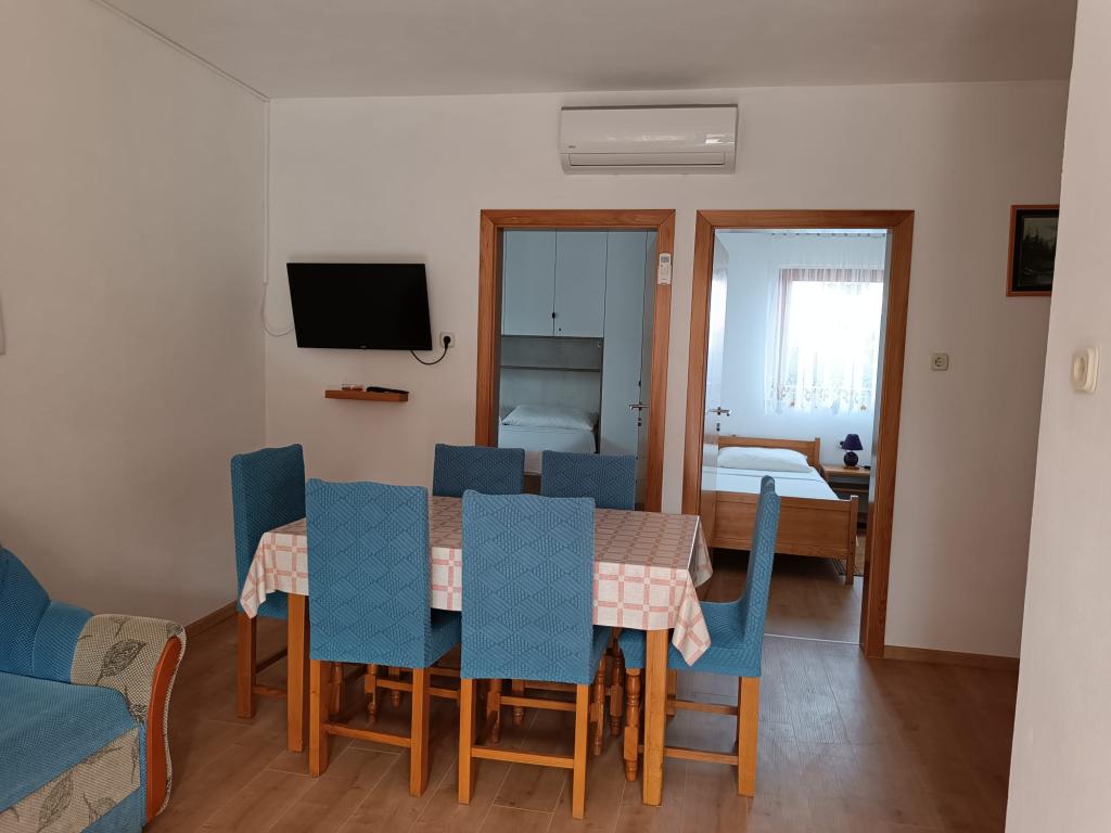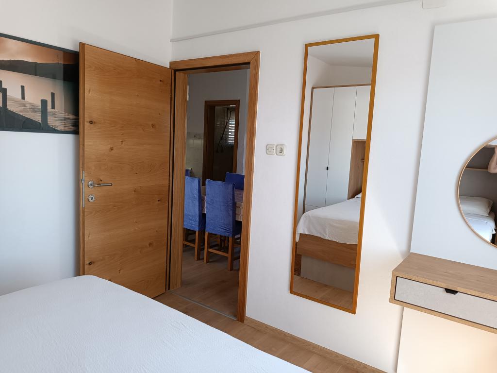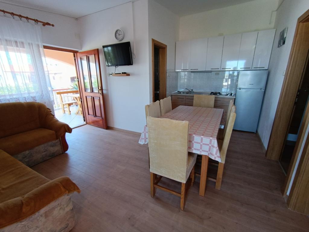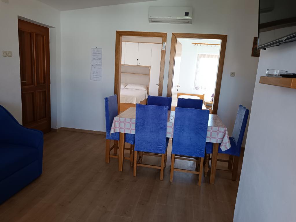 Închiriem trei apartamente identice, mai mari, cu aer condiționat pentru 4 persoane și un apartament mai mic pentru două persoane. Una mai mare este la parter în stânga și două la primul etaj. Cel mai mic este la parter în dreapta. Apartamentele mai mari au două dormitoare și o cameră de zi, în timp ce apartamentele mai mici au un dormitor și o cameră de zi. Fiecare apartament are o intrare separata si o terasa de 12 mp. În apartamente primești toată lenjeria de pat și vesela pentru gătit și servirea alimentelor și băuturii. Oaspeții sunt rugați să-și aducă propriile mijloace pentru spălarea și ștergerea vaselor, precum și prosoape pentru baie și totul pentru igiena personală. Cea mai apropiată plajă (Žitna uvala) este la 100 m. Afară pe plajă este pietriș, iar în apă este nisip. Este potrivit pentru copii. Există o promenadă lungă și o pistă de biciclete de-a lungul plajei. Pe plajă există mai multe restaurante și o înghețată. Pe o rază de 150-250 de metri se află o fructărie, o brutărie, mai multe magazine alimentare și magazine cu echipamente de plajă. Strada noastră nu este aglomerată. Este folosit doar de chiriașii și oaspeții săi. Este pavata si dispune de iluminat public.