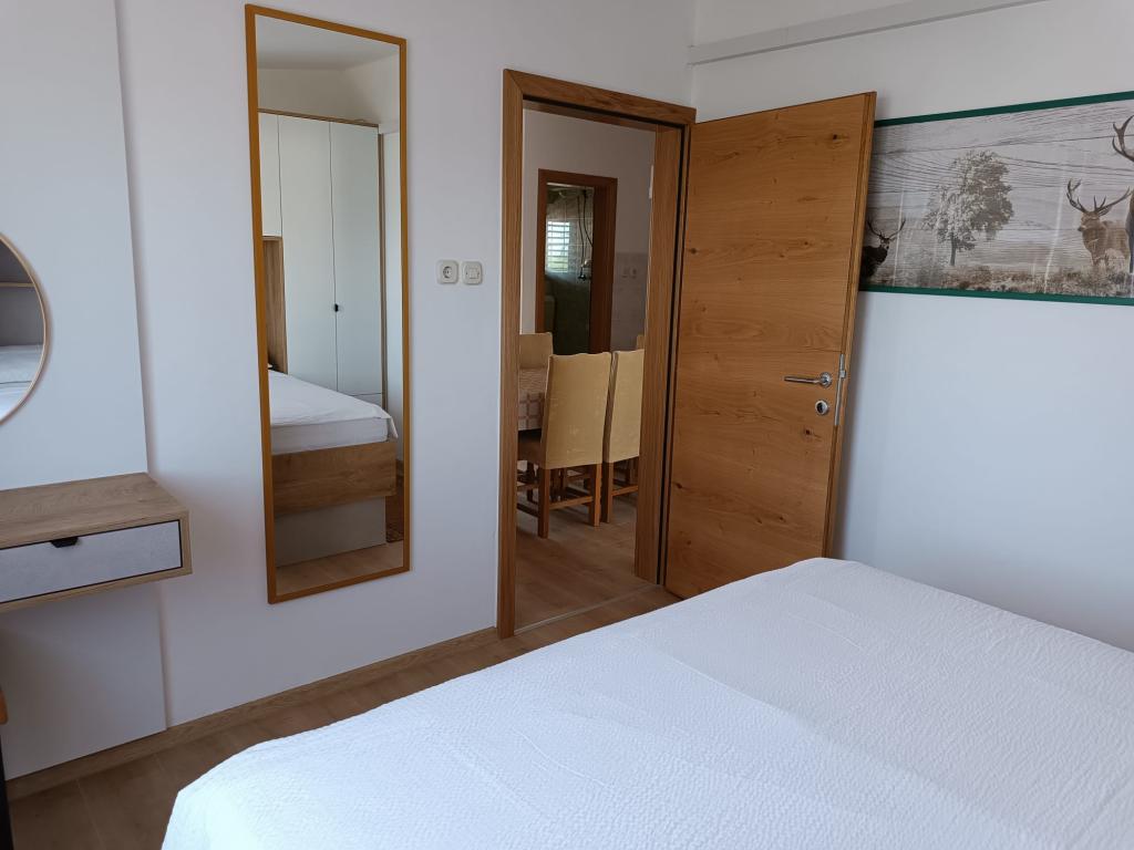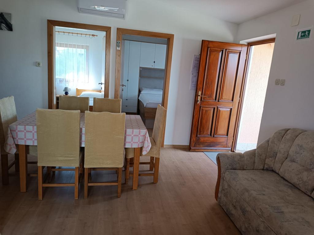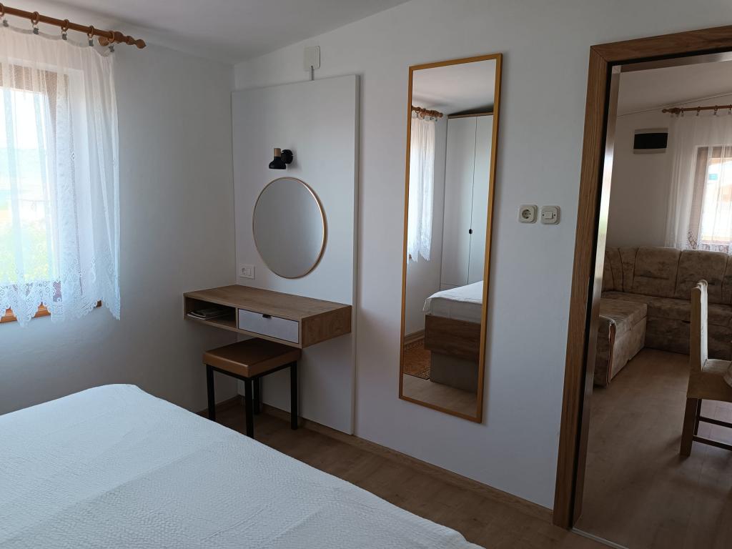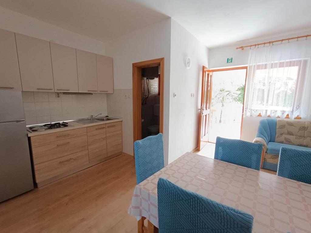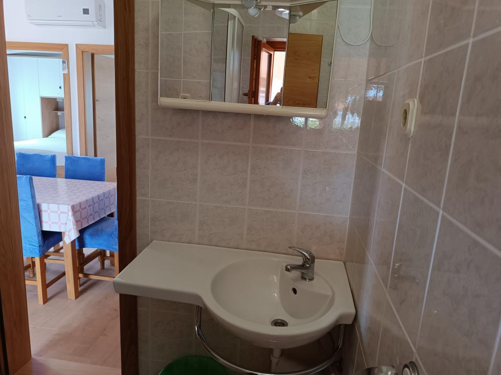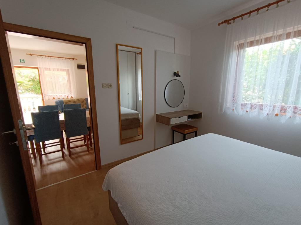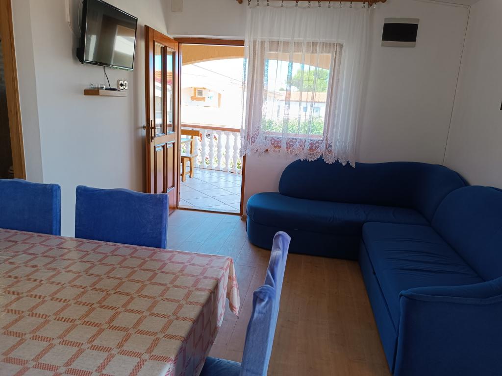 Închiriem trei apartamente identice, mai mari, cu aer condiționat pentru 4 persoane și un apartament mai mic pentru două persoane. Una mai mare este la parter în stânga și două la primul etaj. Cel mai mic este la parter în dreapta. Apartamentele mai mari au două dormitoare și o cameră de zi, în timp ce apartamentele mai mici au un dormitor și o cameră de zi. Fiecare apartament are o intrare separata si o terasa de 12 mp. În apartamente primești toată lenjeria de pat și vesela pentru gătit și servirea alimentelor și băuturii. Oaspeții sunt rugați să-și aducă propriile mijloace pentru spălarea și ștergerea vaselor, precum și prosoape pentru baie și totul pentru igiena personală. Cea mai apropiată plajă (Žitna uvala) este la 100 m. Afară pe plajă este pietriș, iar în apă este nisip. Este potrivit pentru copii. Există o promenadă lungă și o pistă de biciclete de-a lungul plajei. Pe plajă există mai multe restaurante și o înghețată. Pe o rază de 150-250 de metri se află o fructărie, o brutărie, mai multe magazine alimentare și magazine cu echipamente de plajă. Strada noastră nu este aglomerată. Este folosit doar de chiriașii și oaspeții săi. Este pavata si dispune de iluminat public.