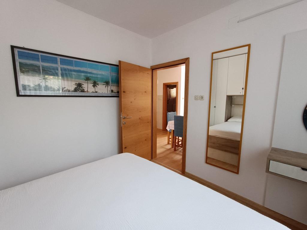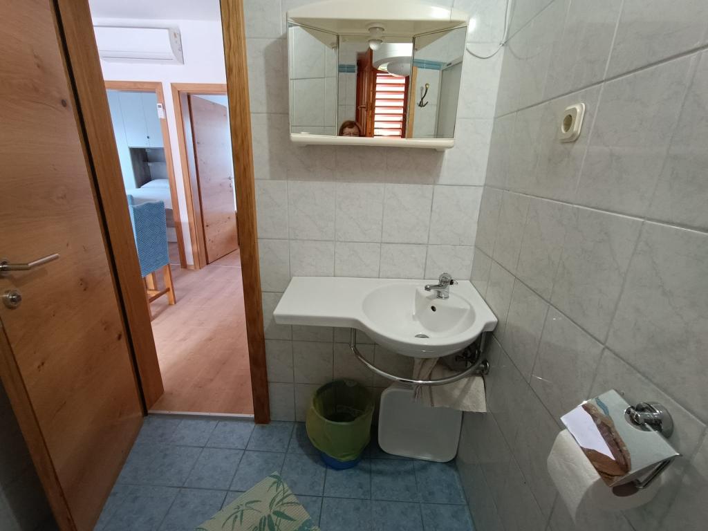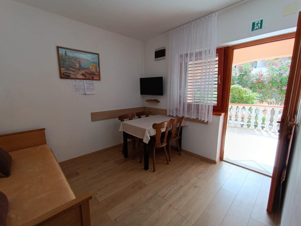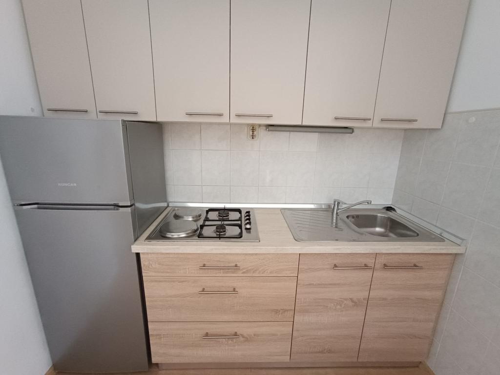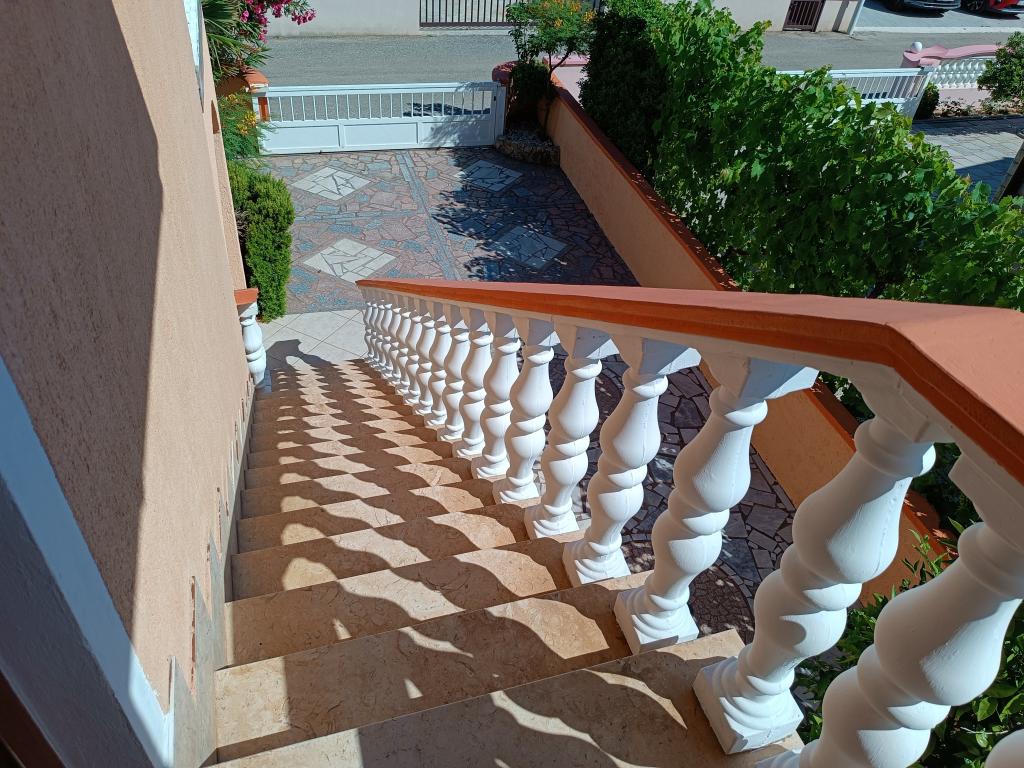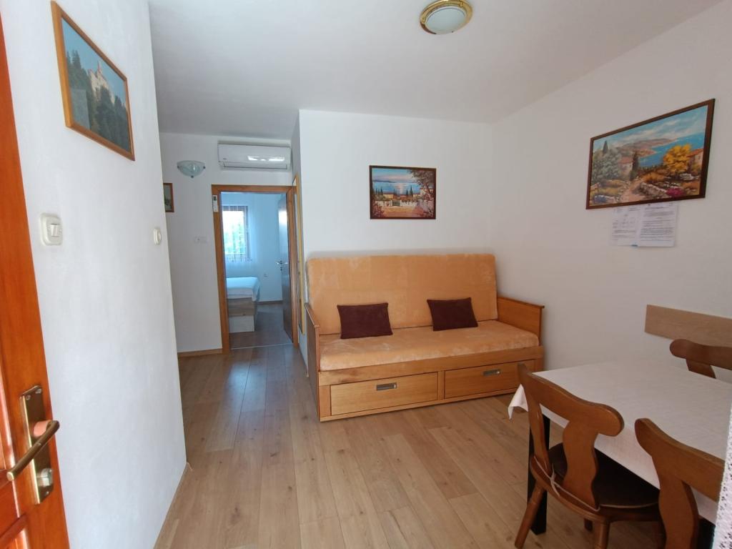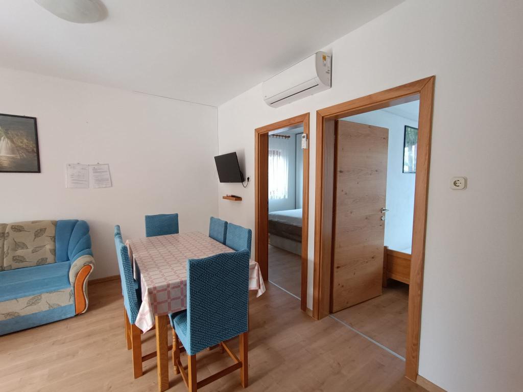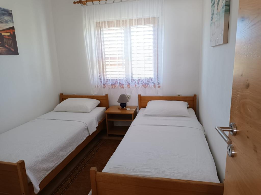 Închiriem trei apartamente identice, mai mari, cu aer condiționat pentru 4 persoane și un apartament mai mic pentru două persoane. Una mai mare este la parter în stânga și două la primul etaj. Cel mai mic este la parter în dreapta. Apartamentele mai mari au două dormitoare și o cameră de zi, în timp ce apartamentele mai mici au un dormitor și o cameră de zi. Fiecare apartament are o intrare separata si o terasa de 12 mp. În apartamente primești toată lenjeria de pat și vesela pentru gătit și servirea alimentelor și băuturii. Oaspeții sunt rugați să-și aducă propriile mijloace pentru spălarea și ștergerea vaselor, precum și prosoape pentru baie și totul pentru igiena personală. Cea mai apropiată plajă (Žitna uvala) este la 100 m. Afară pe plajă este pietriș, iar în apă este nisip. Este potrivit pentru copii. Există o promenadă lungă și o pistă de biciclete de-a lungul plajei. Pe plajă există mai multe restaurante și o înghețată. Pe o rază de 150-250 de metri se află o fructărie, o brutărie, mai multe magazine alimentare și magazine cu echipamente de plajă. Strada noastră nu este aglomerată. Este folosit doar de chiriașii și oaspeții săi. Este pavata si dispune de iluminat public.