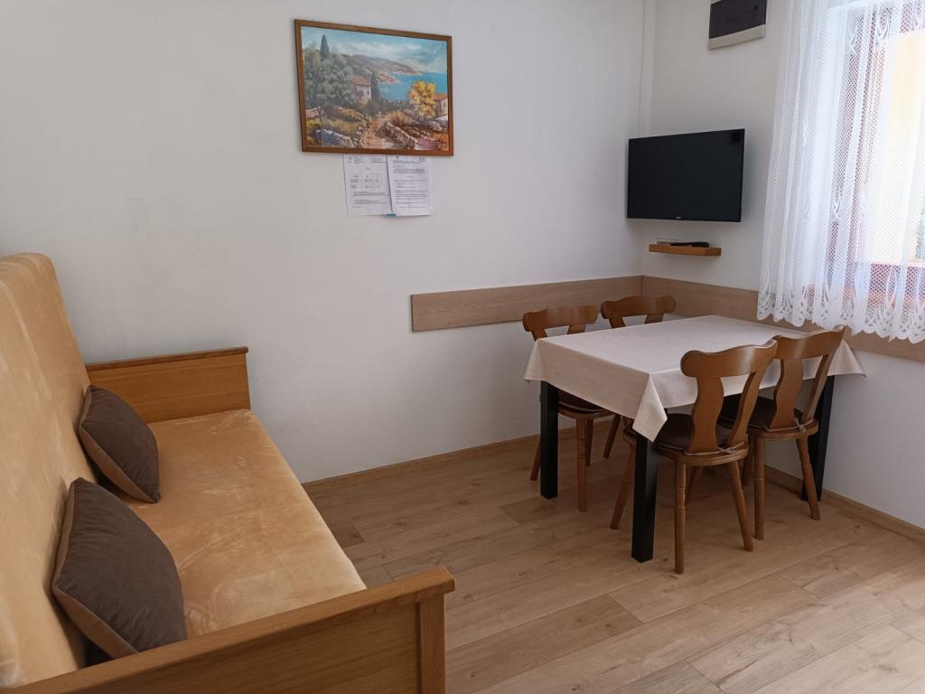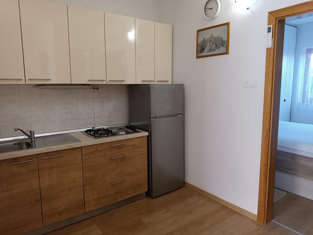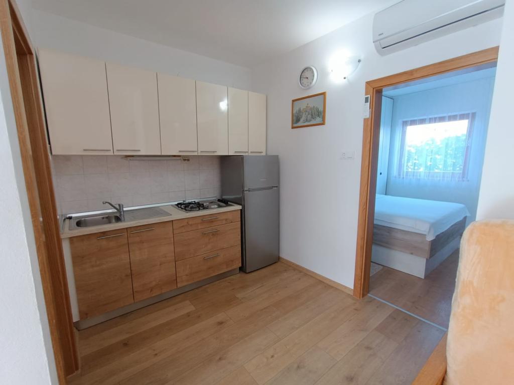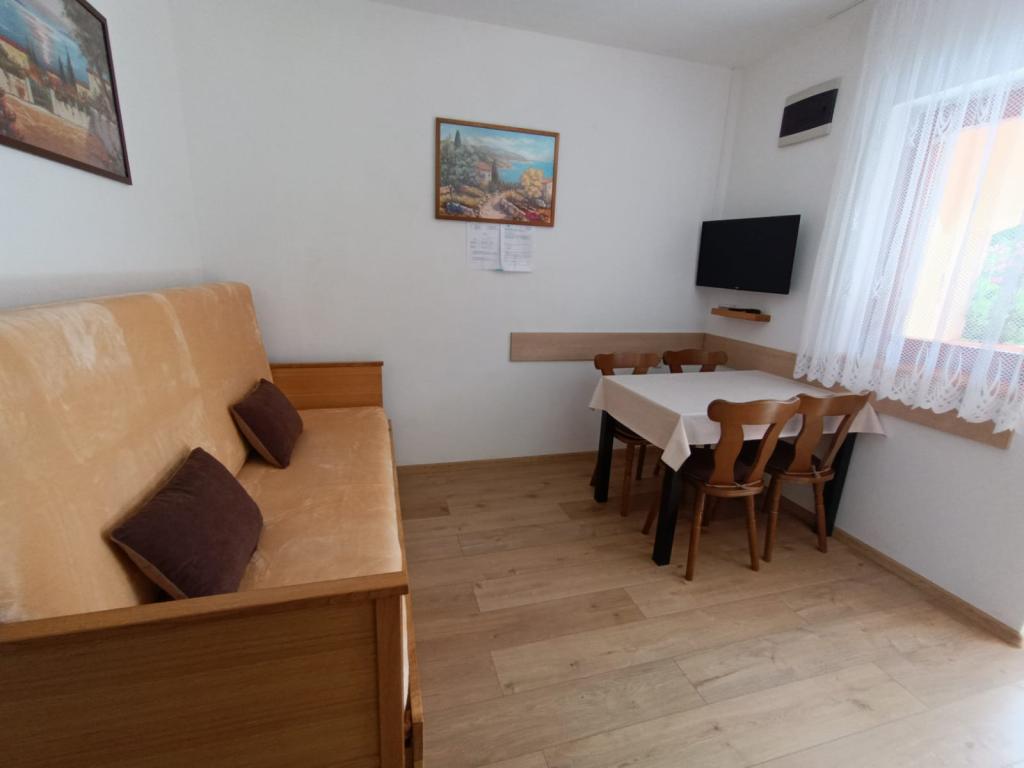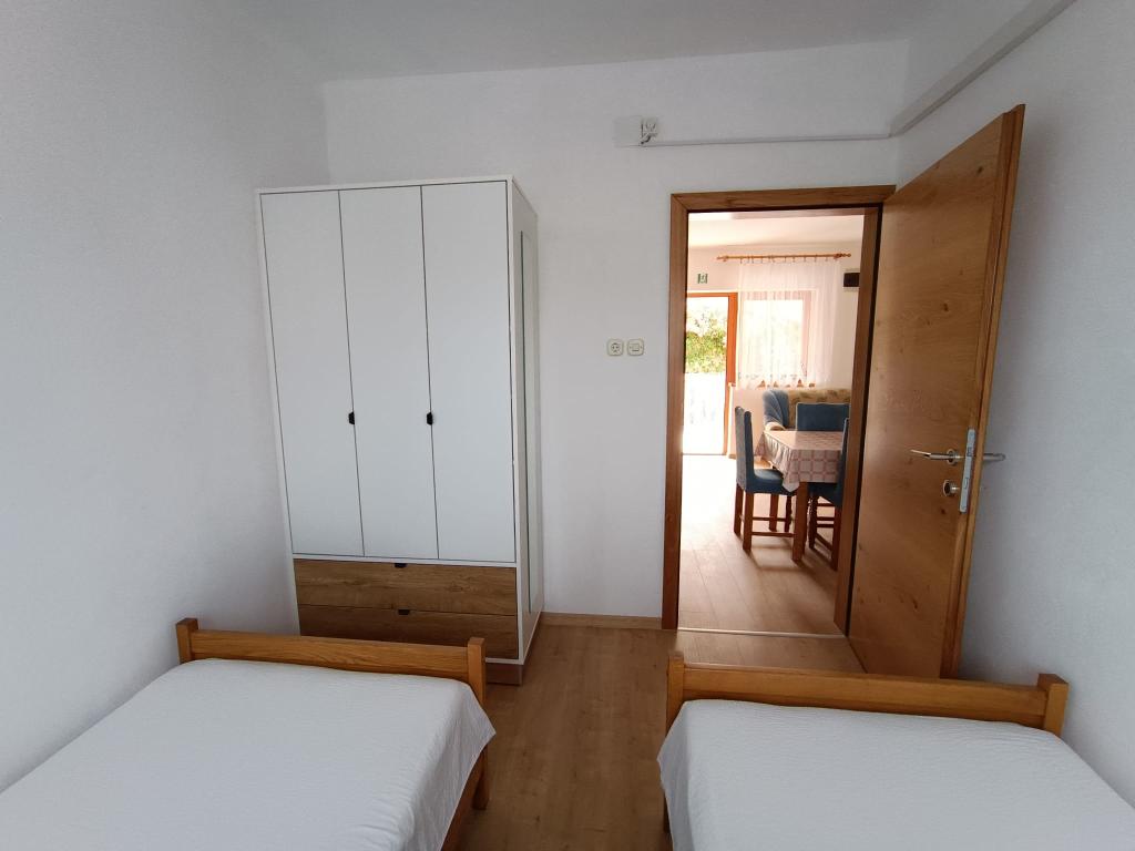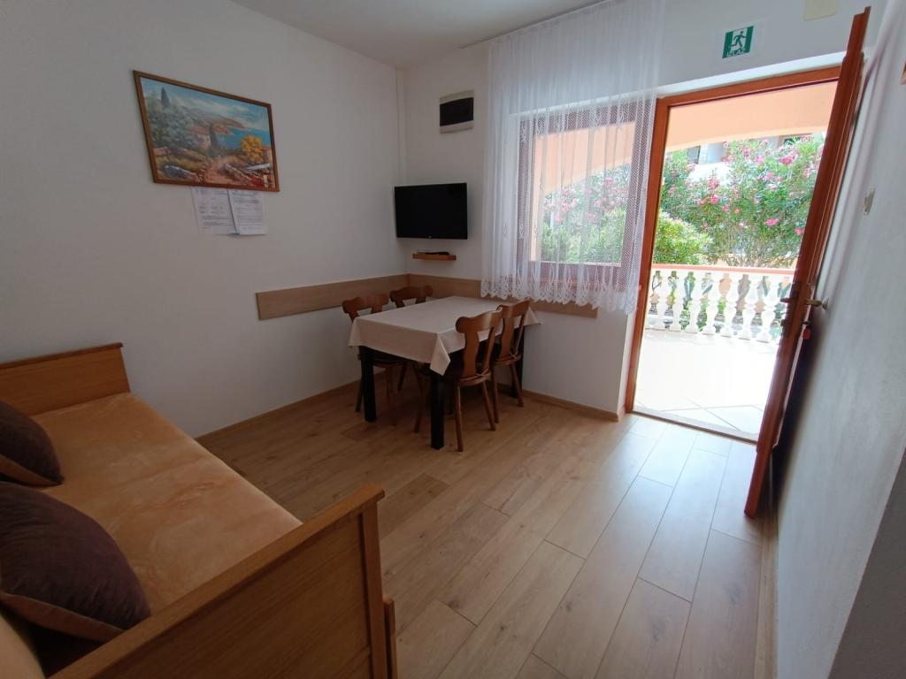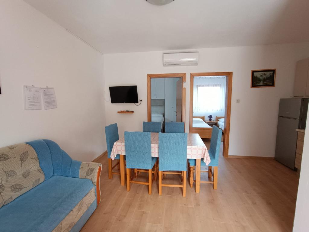 Închiriem trei apartamente identice, mai mari, cu aer condiționat pentru 4 persoane și un apartament mai mic pentru două persoane. Una mai mare este la parter în stânga și două la primul etaj. Cel mai mic este la parter în dreapta. Apartamentele mai mari au două dormitoare și o cameră de zi, în timp ce apartamentele mai mici au un dormitor și o cameră de zi. Fiecare apartament are o intrare separata si o terasa de 12 mp. În apartamente primești toată lenjeria de pat și vesela pentru gătit și servirea alimentelor și băuturii. Oaspeții sunt rugați să-și aducă propriile mijloace pentru spălarea și ștergerea vaselor, precum și prosoape pentru baie și totul pentru igiena personală. Cea mai apropiată plajă (Žitna uvala) este la 100 m. Afară pe plajă este pietriș, iar în apă este nisip. Este potrivit pentru copii. Există o promenadă lungă și o pistă de biciclete de-a lungul plajei. Pe plajă există mai multe restaurante și o înghețată. Pe o rază de 150-250 de metri se află o fructărie, o brutărie, mai multe magazine alimentare și magazine cu echipamente de plajă. Strada noastră nu este aglomerată. Este folosit doar de chiriașii și oaspeții săi. Este pavata si dispune de iluminat public.