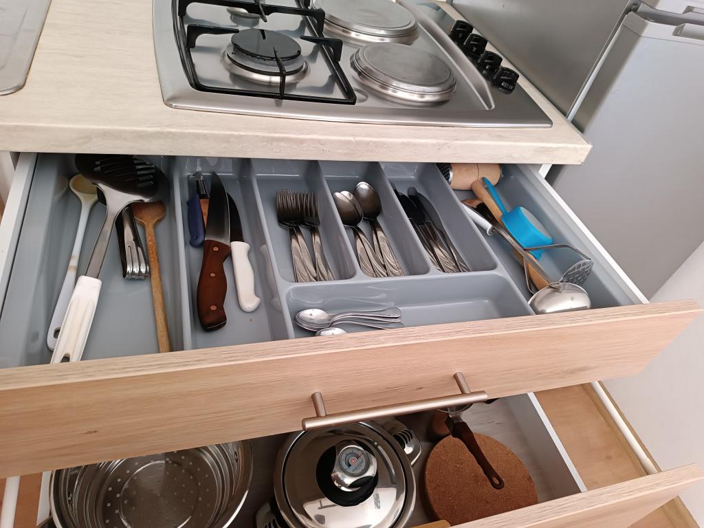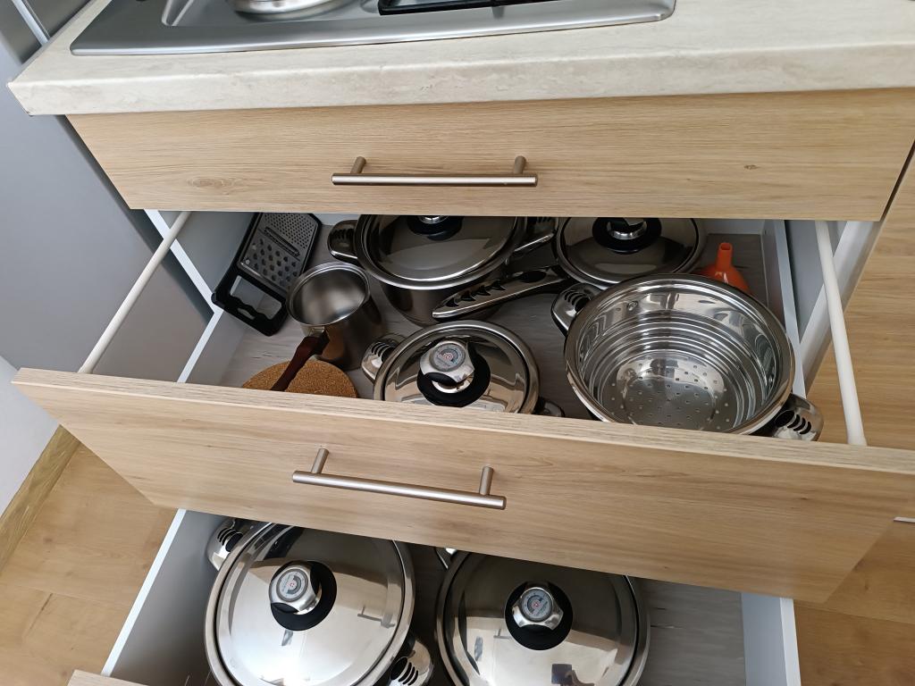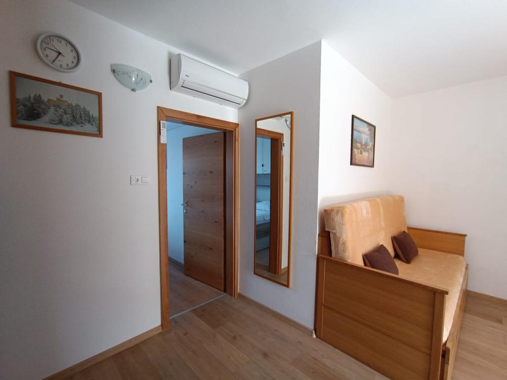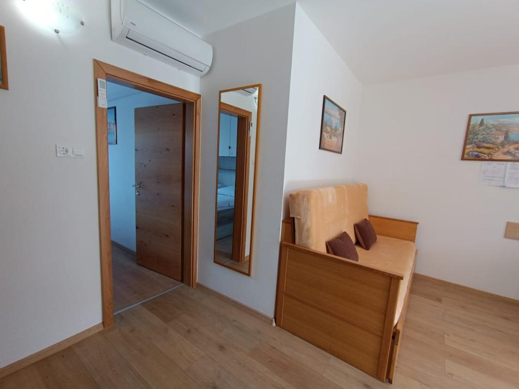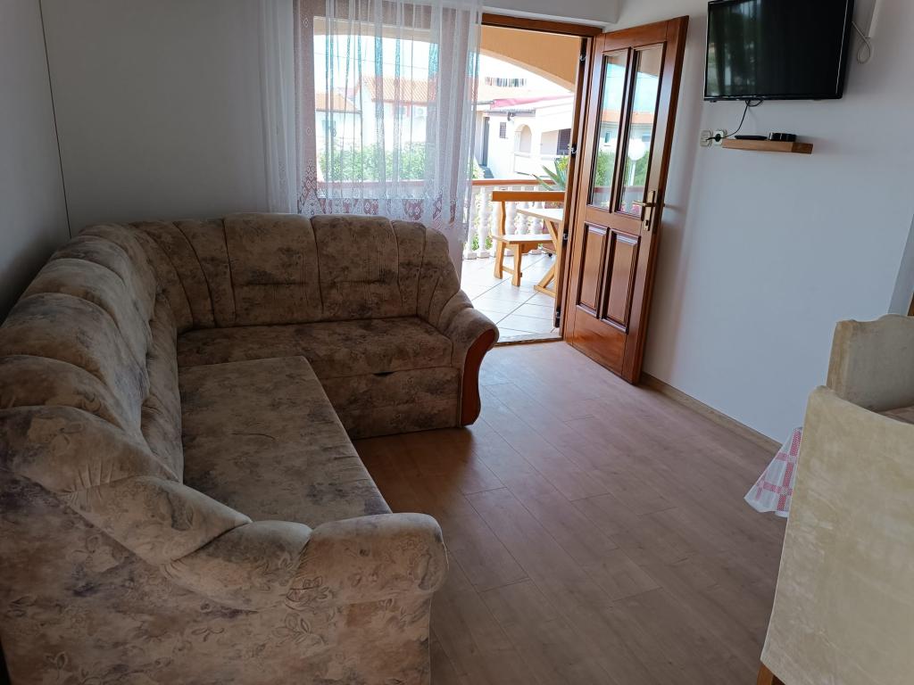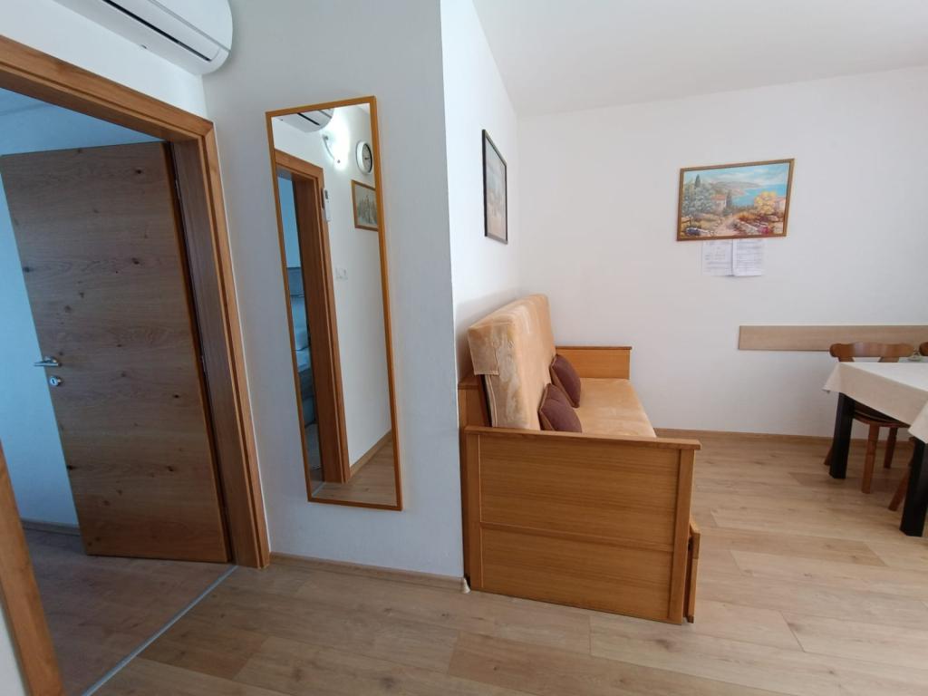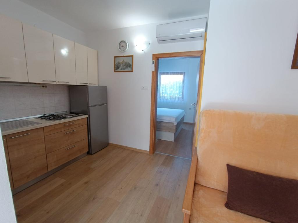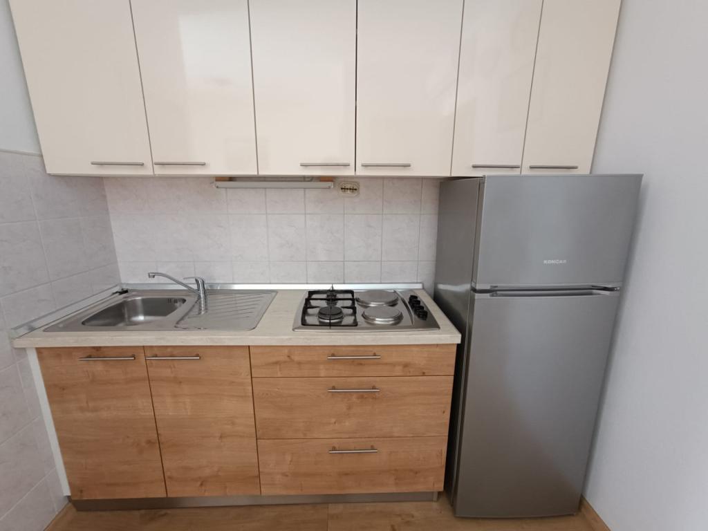Închiriem trei apartamente identice, mai mari, cu aer condiționat pentru 4 persoane și un apartament mai mic pentru două persoane. Una mai mare este la parter în stânga și două la primul etaj. Cel mai mic este la parter în dreapta. Apartamentele mai mari au două dormitoare și o cameră de zi, în timp ce apartamentele mai mici au un dormitor și o cameră de zi. Fiecare apartament are o intrare separata si o terasa de 12 mp. În apartamente primești toată lenjeria de pat și vesela pentru gătit și servirea alimentelor și băuturii. Oaspeții sunt rugați să-și aducă propriile mijloace pentru spălarea și ștergerea vaselor, precum și prosoape pentru baie și totul pentru igiena personală. Cea mai apropiată plajă (Žitna uvala) este la 100 m. Afară pe plajă este pietriș, iar în apă este nisip. Este potrivit pentru copii. Există o promenadă lungă și o pistă de biciclete de-a lungul plajei. Pe plajă există mai multe restaurante și o înghețată. Pe o rază de 150-250 de metri se află o fructărie, o brutărie, mai multe magazine alimentare și magazine cu echipamente de plajă. Strada noastră nu este aglomerată. Este folosit doar de chiriașii și oaspeții săi. Este pavata si dispune de iluminat public.