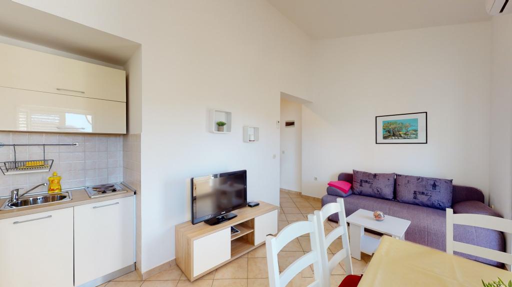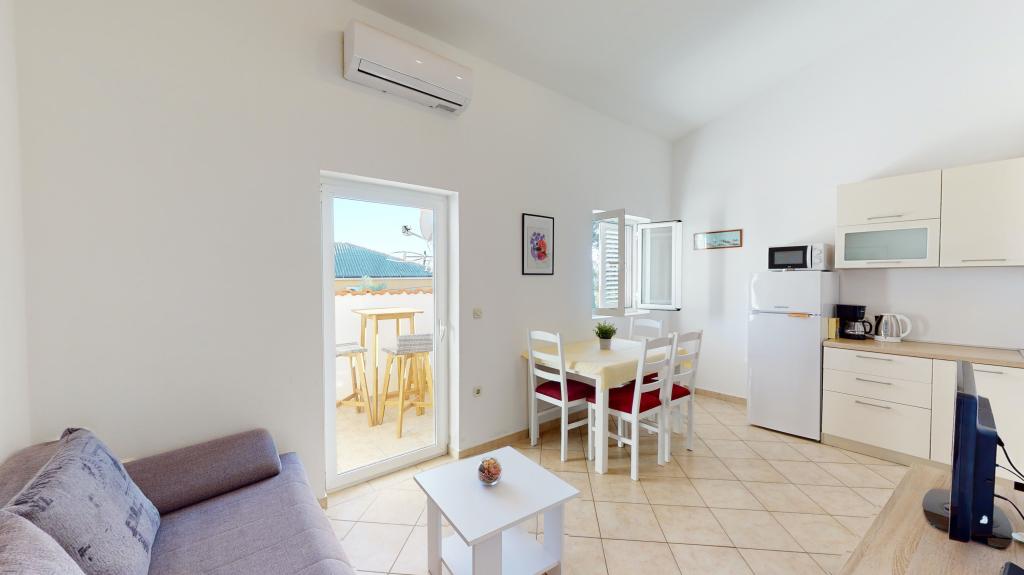 Apartament 3 ***, la etajul 1, cu o vedere frumoasă la mare. Totul pentru un sejur plăcut se află pe o rază de 250 m: plajă, centrul orașului, supermarket, restaurante. În curte există un grătar și o terasă suplimentară înconjurată de verdeață. Facilitatea este situată într-un mediu liniștit.