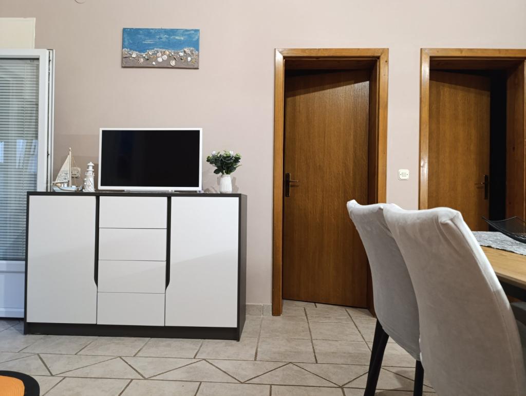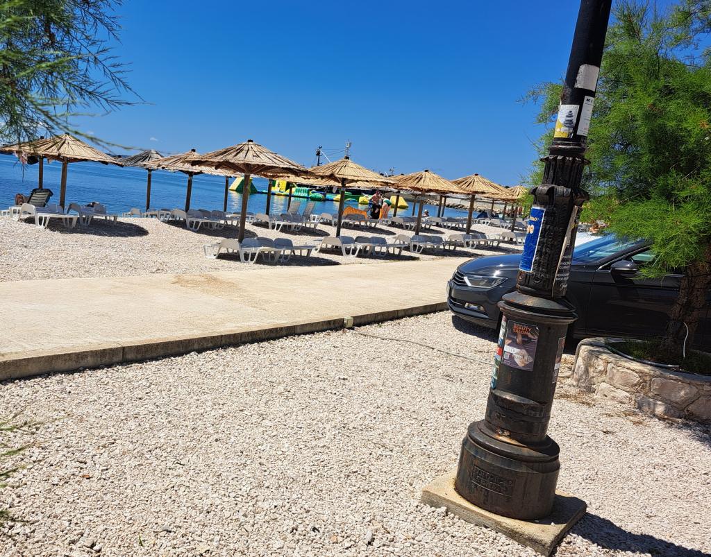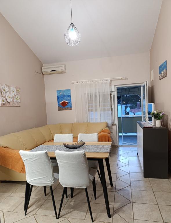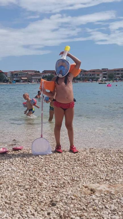 Închiriez un apartament cu două camere, recent renovat, cu aer condiționat și complet utilat, pentru o familie de până la 4 persoane. Cu două dormitoare, living cu un pat, TV/satelit, smart/Wifi. Bucătărie complet utilată cu veselă. Baie cu duș. Duș interior exterior. Apartamentul are o terasă/balcon mare unde vă puteți bucura de umbra plăcută până târziu după-amiaza, loc de parcare gratuit pentru mașina dumneavoastră. (la cerere, dacă este necesar, serviciu de spălătorie). Grătar - pentru uzul oaspeților. Apartamentul se află la 150 m de plajă/mare, la 4 minute de mers pe jos pe stradă. Plaja este cu pietriș, în apropiere este cu nisip pentru copii, unde există cafenele, restaurante, gelaterii... Magazinul este la 100 m distanță, restaurantul este la 80 m distanță, centrele comerciale mai mari sunt la 1000 m distanță. Centrul orașului Vir este la 1500 m distanță. Apartamentul este situat într-o zonă liniștită, pe o stradă nu aglomerată.