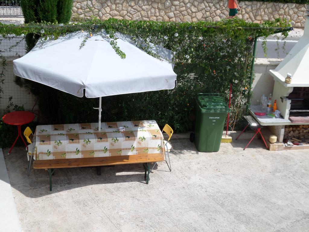 Casa este formată din 4 unități rezidențiale, câte 2 pe etaj. Există un total de 3 apartamente de închiriat, 2 la etajul superior și 1 apartament la subsol. Toate unitățile sunt identice, cu 2 dormitoare, o terasă, un hol, o bucătărie complet utilată și o baie. Fiecare unitate are un televizor LCD cu canale prin satelit și aer condiționat. Un grătar, precum și o zonă de relaxare în curte sunt disponibile pentru uz general. Cu toate acestea, fiecare unitate are și propria terasă/balcon privat. Plajele din apropiere sunt în mare parte cu pietriș, dar apa are cel mai fin nisip. Special pentru familiile cu copii. Aer condiționat suplimentar 1 €/oră.