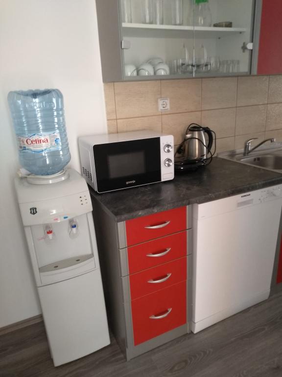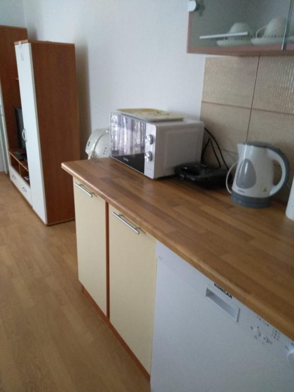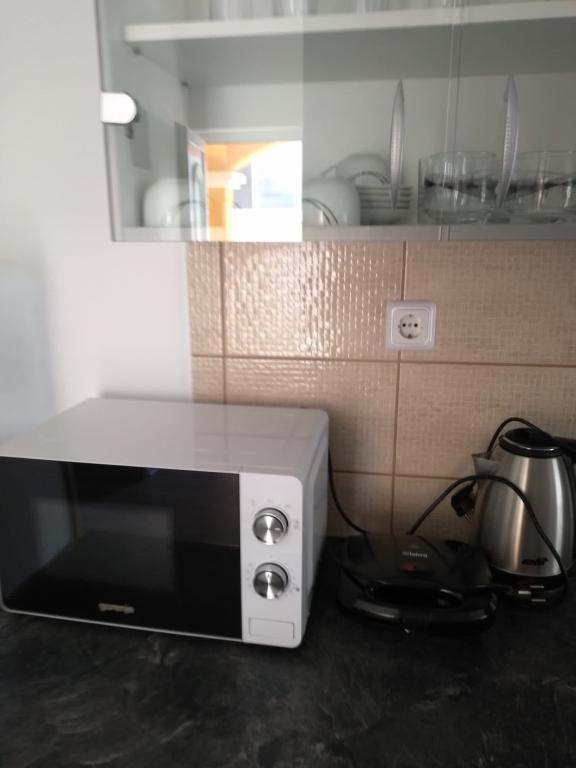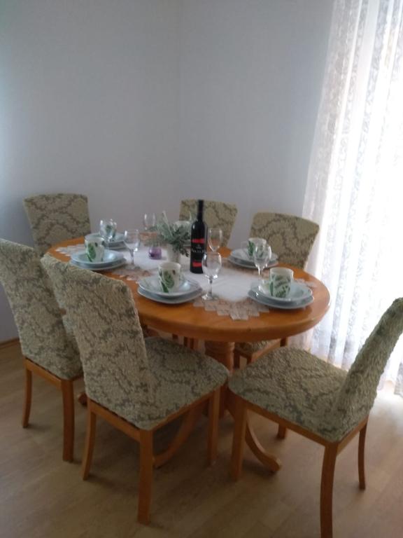 Apartament complet utilat pe o strada linistita. Terasa are vedere la pini și la mare. Apartamentul este complet mobilat cu toate cele necesare precum wi-fi, aer conditionat, cuptor cu microunde, aragaz, dozator de apa rece si calda, etc. Parcarea este situata in curtea casei. Plaja este la 2 minute de mers pe jos.