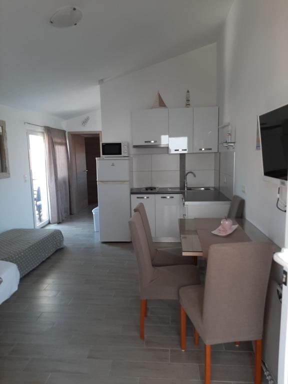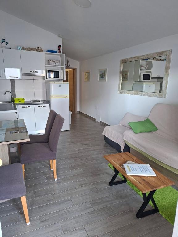 Pe insula Vir, la doar 150 de metri de mare, se află două apartamente cu o capacitate de până la 5 persoane. Apartamentele sunt modern dotate, cu aer condiționat și adaptate pentru un sejur confortabil. Fiecare apartament are propria terasă cu zonă de relaxare, iar în curtea împrejmuită oaspeții au acces la parcare privată și grătar. Apropierea mării și a plajei, împreună cu facilitățile practice, fac din aceste apartamente o alegere potrivită pentru familii și grupuri mici de prieteni care caută cazare în imediata apropiere a tuturor facilităților principale. Apartamentele sunt potrivite pentru cazarea a până la 5 persoane. Acestea sunt compuse din două dormitoare, apartamentele au o baie cu duș și mașină de spălat și o bucătărie complet utilată conectată la camera de zi. Pentru relaxare și viață în aer liber, există și o terasă cu zonă de relaxare. Apartamentele sunt cu aer condiționat și decorate modern, ideale pentru o vacanță în familie sau un sejur într-un grup mai mic de prieteni.