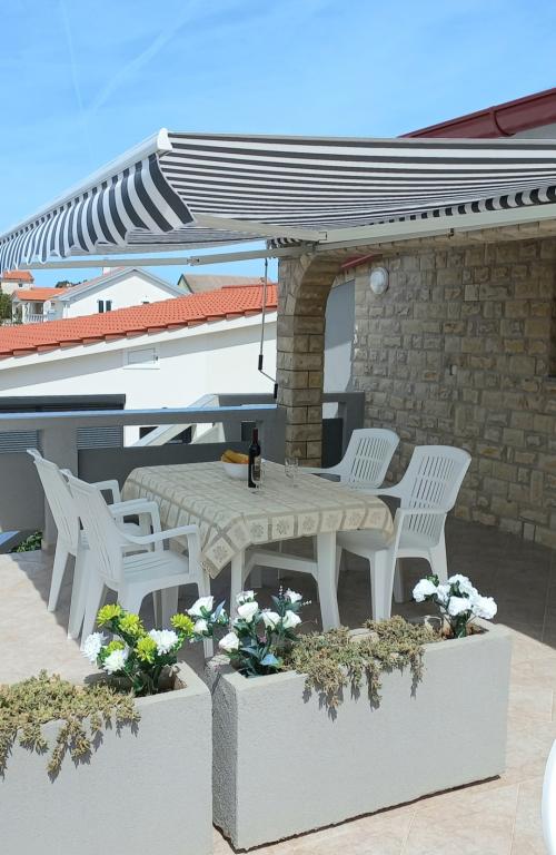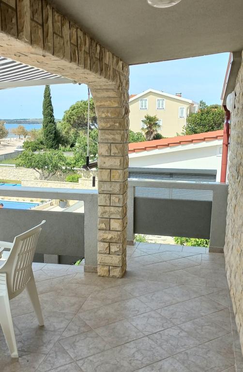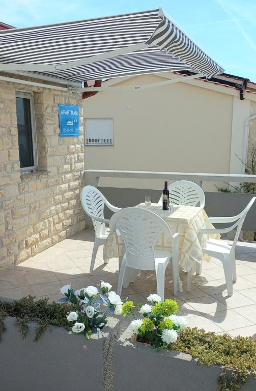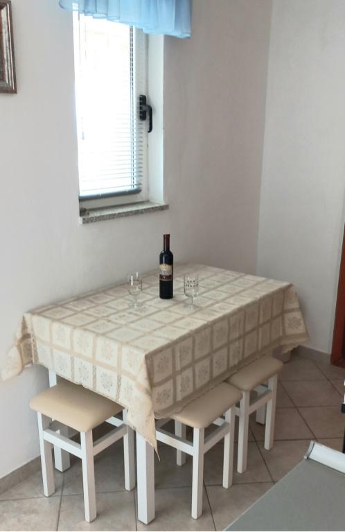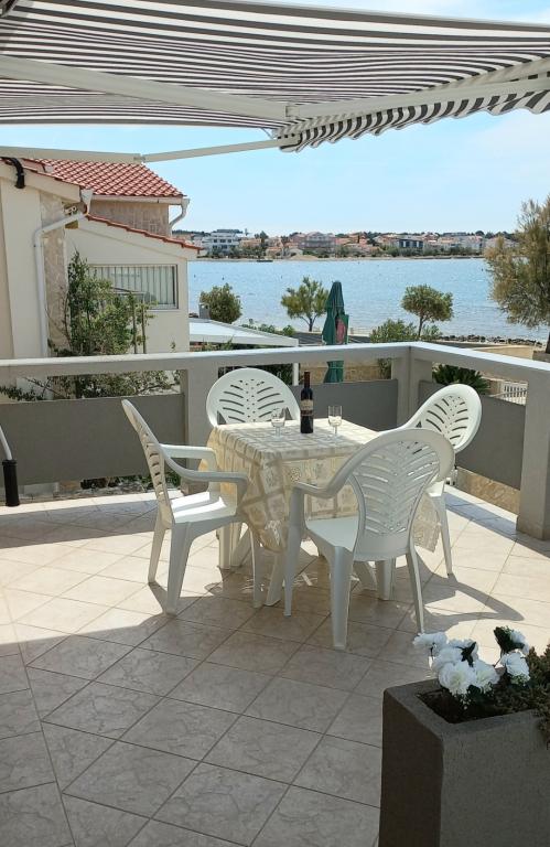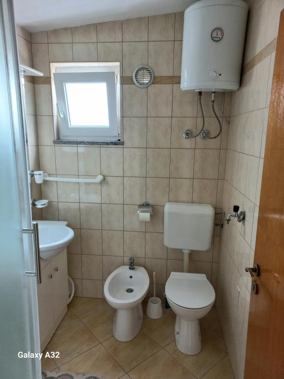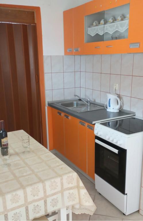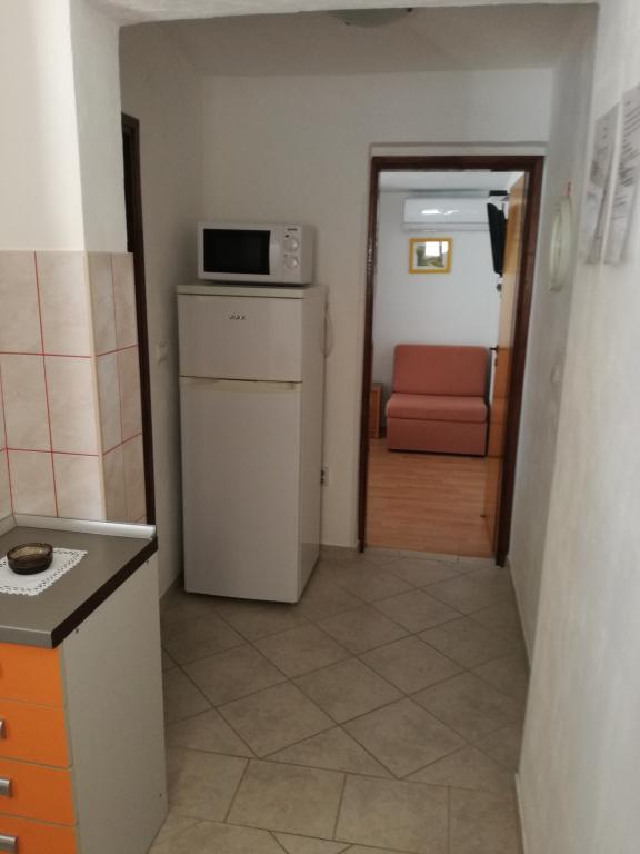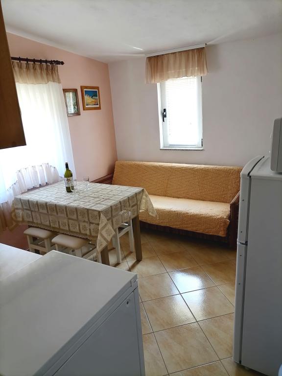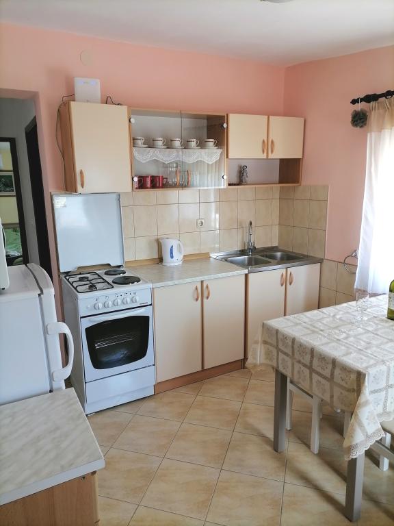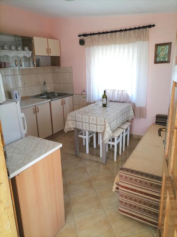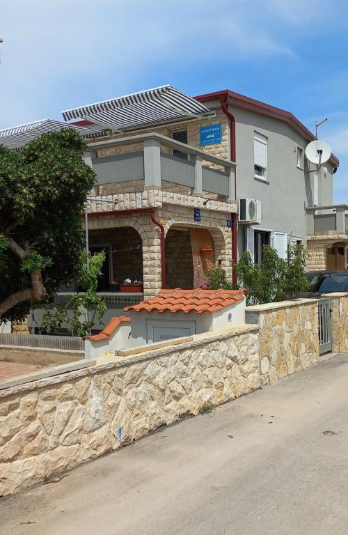 Apartamentele sunt situate la primul etaj al casei. Cu o terasă mare și vedere la mare. Sunt situate într-o zonă liniștită. Al doilea rând față de mare, distanță de plajă și mare 20m. Parcarea este situată în curtea casei și este destinată doar vehiculelor mai mici. Vehiculele mai mari sunt parcate pe mal. Oaspeții au la dispoziție grătar, aer condiționat, televizor, TV prin satelit, wi-fi.