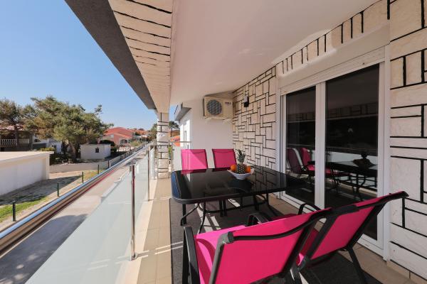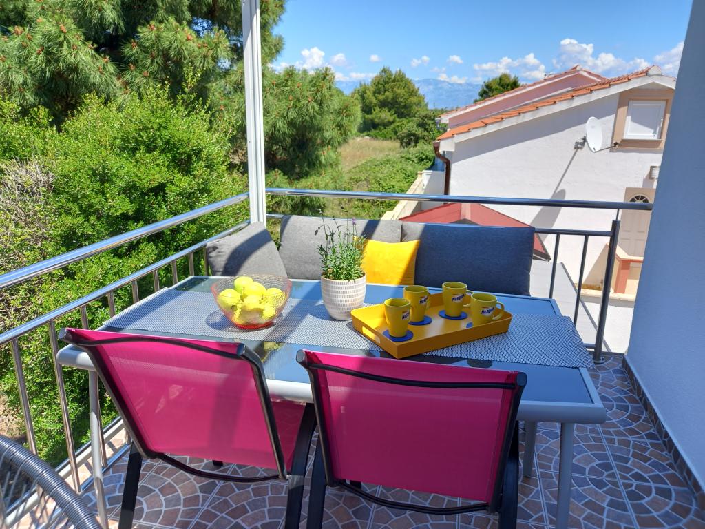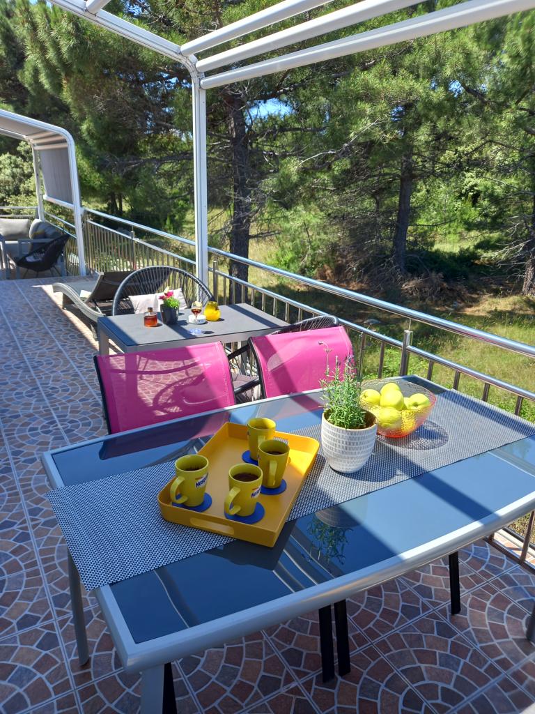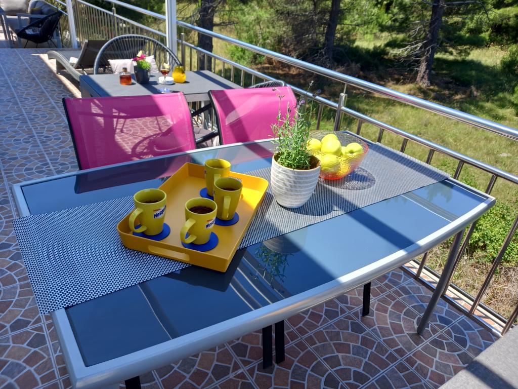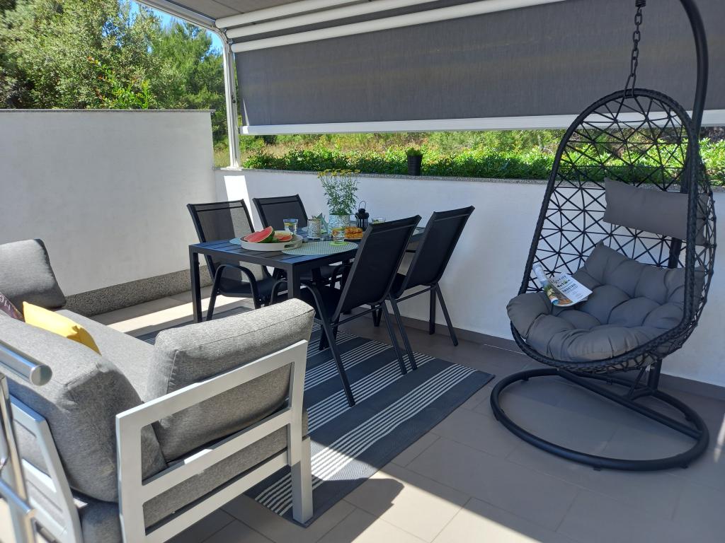 Apartamentul este foarte ordonat, modern si curat. Au chiar și două terase, așa că pe undeva este mereu umbră. Proprietarii sunt foarte amabili, mereu disponibili, la sosire am fost intampinati cu o primire delicioasa, inclusiv croissante calde de casa. Marea este la un minut de mers pe jos, dar există și un debarcader pe plajă, care este grozav pentru tineri să sară în apă. Vă recomand! Tjaša