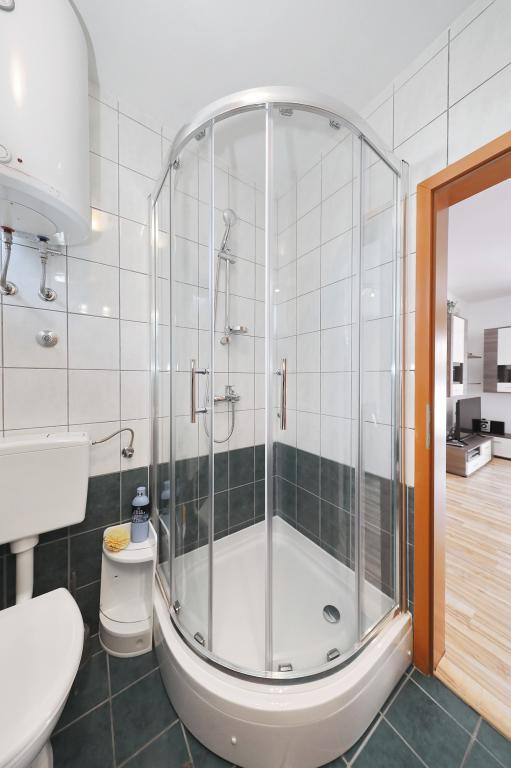 În primul rând, mulțumim minunatelor noastre gazde, oameni cu adevărat minunați și plăcuți. Vă recomandăm apartamentul familiilor cu copii mici. Am fost în vacanță cu un iepuraș și un copil timp de 2 ani și noi toți am făcut o treabă minunată. Apartamentul este excelent, îngrijit cu tot ce avem nevoie, bucătăria este bine echipată, paturile sunt confortabile. Pe balcon ne-am bucurat de cafea și de mirosul mării. Plaja este foarte aproape, la doar cateva minute pe jos, ceea ce este minunat daca copiii nu le place sa se scufunde. Plaja a fost făcută în mod obișnuit, cu pietre mici la început, apoi nisip frumos și o mulțime de șindrilă pentru copii și bunicile care au adunat cochiliile. Vă mulțumim pentru o vacanță plăcută. Salut frumos din Slavonia.