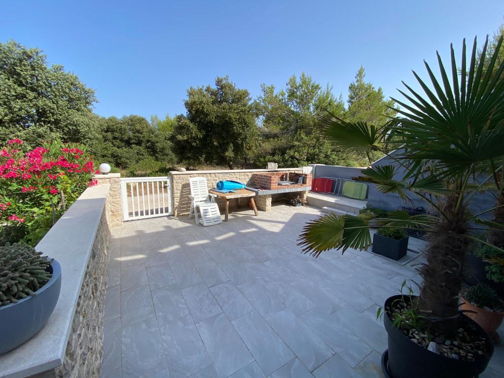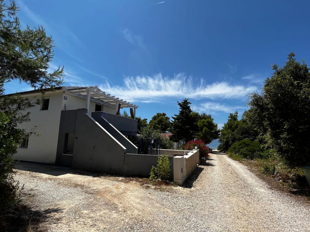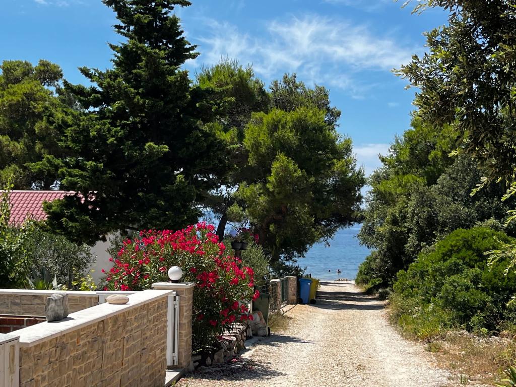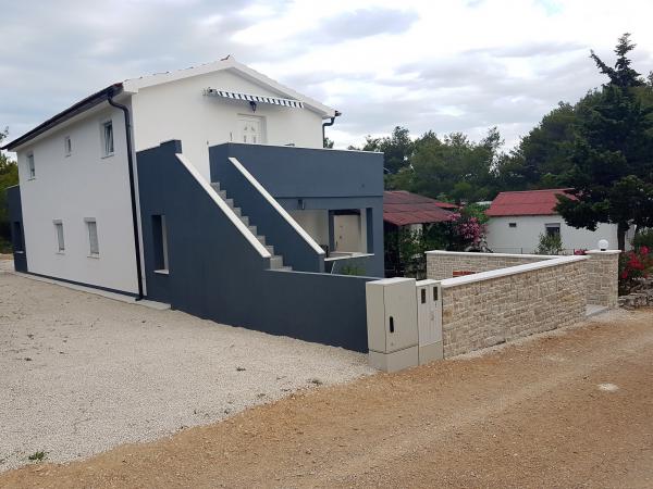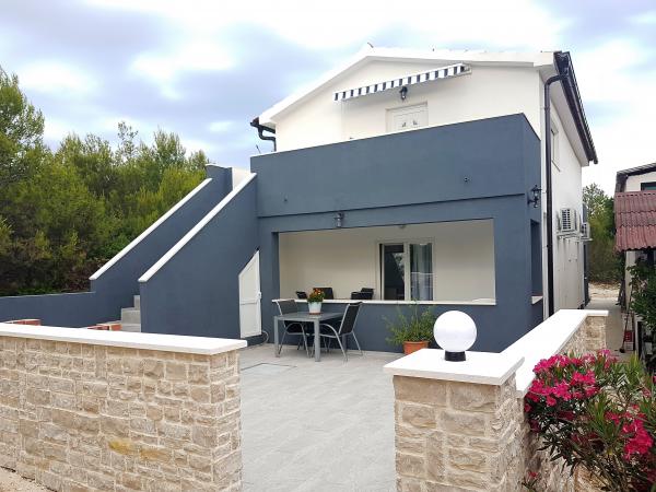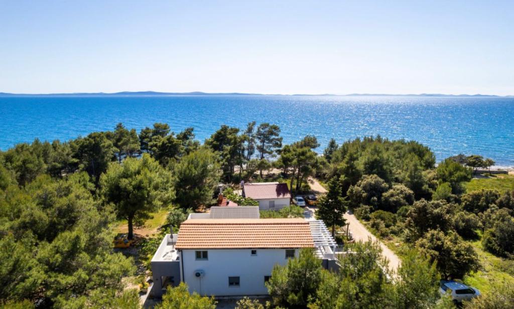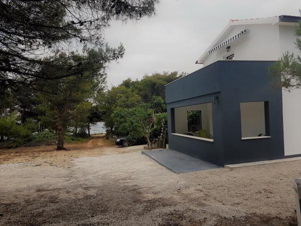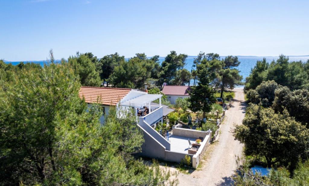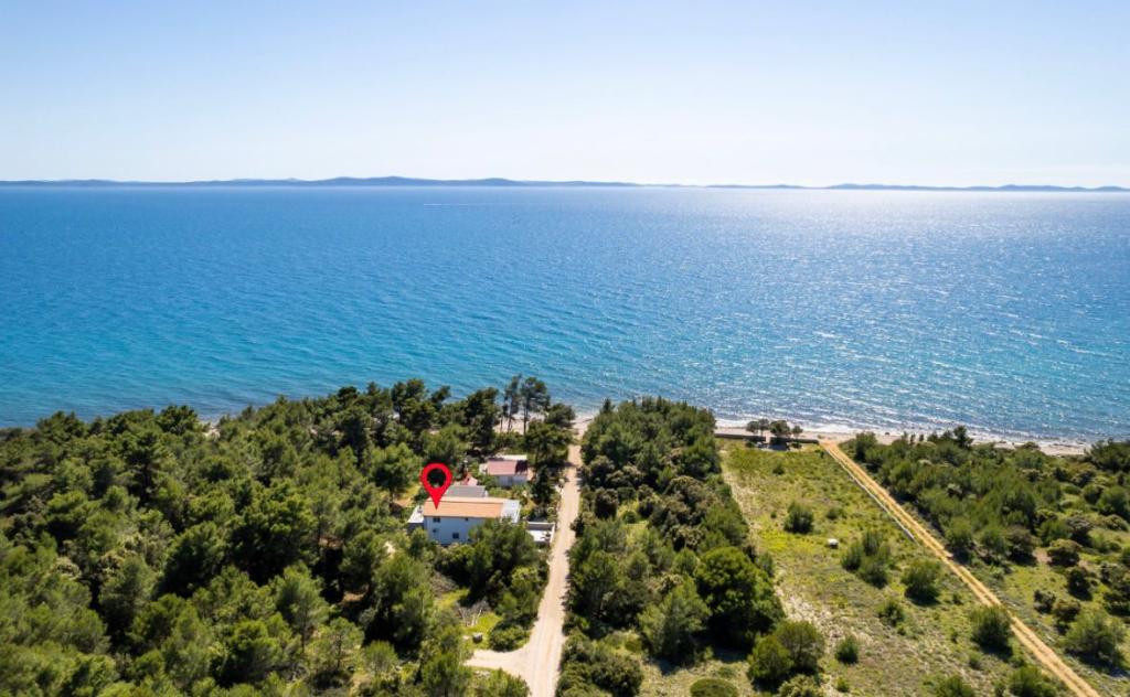 Casa este situata intr-o padure de pini la 35 m de mare, la capatul str. Vir, str. Mirna, ideala pentru vacanta deoarece suntem departe de zgomotul plajelor orasului, casa are un etaj unde sunt doua dormitoare cu un living mare, toaleta, dus, si spalatorie bucataria este dotata cu toate cele necesare, cuptor cu microunde, aparat de cafea, ceainic si vase pentru gatit, doua terase, la parterul casei doua apartamente, fiecare dotata cu bucatarie. , toaleta si dus, un dormitor si un living, apartamentul are terasa proprie, si suplimentar terasa cu gratar, casa poate gazdui de la 10 la 13 persoane, . Vom fi bucuroși să vă găzduim. Pătuț disponibil.